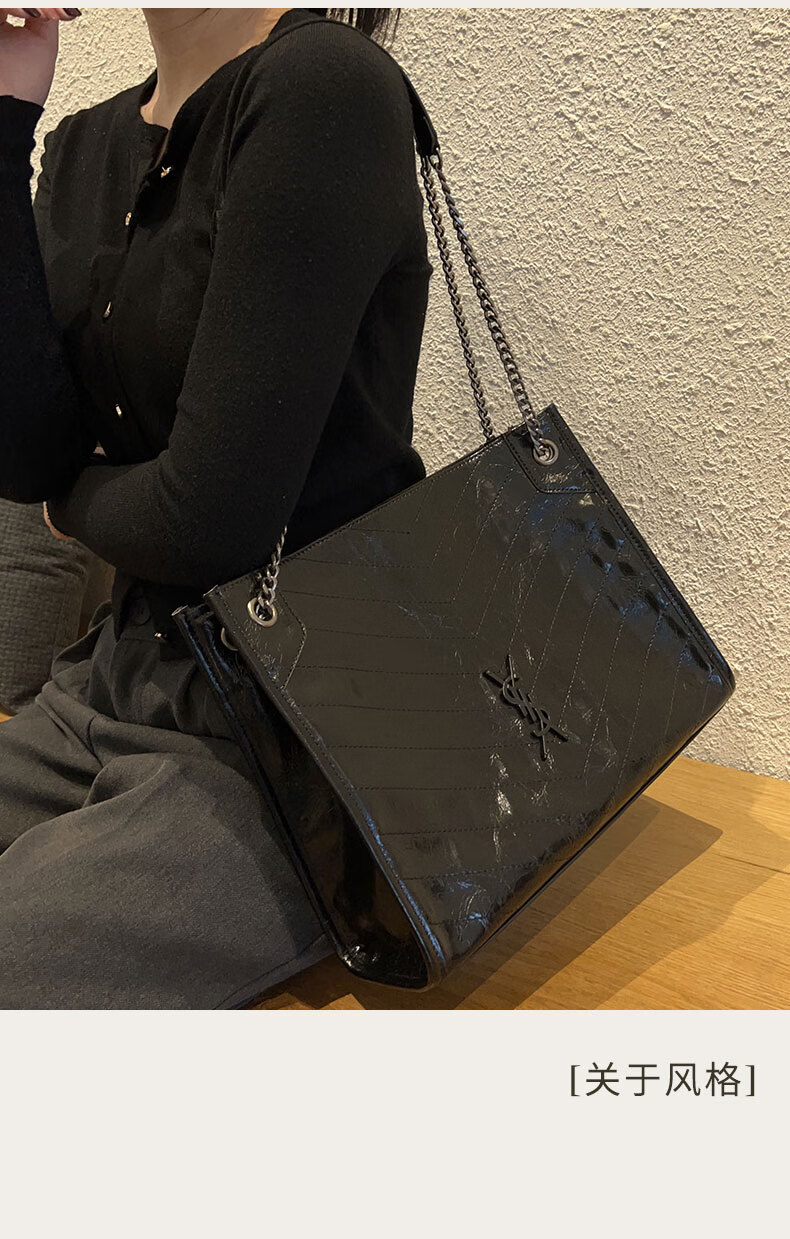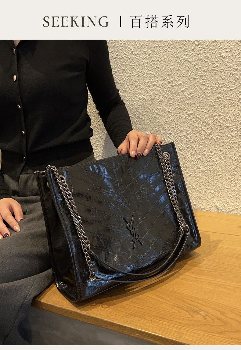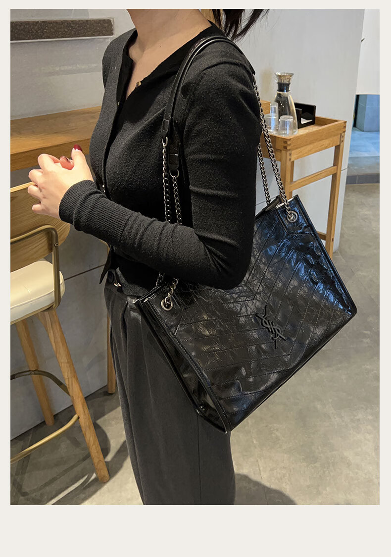 托特包仓杨树包2025现货大包潮牌黑色香港林菱格新款羊皮专柜 链 11*28