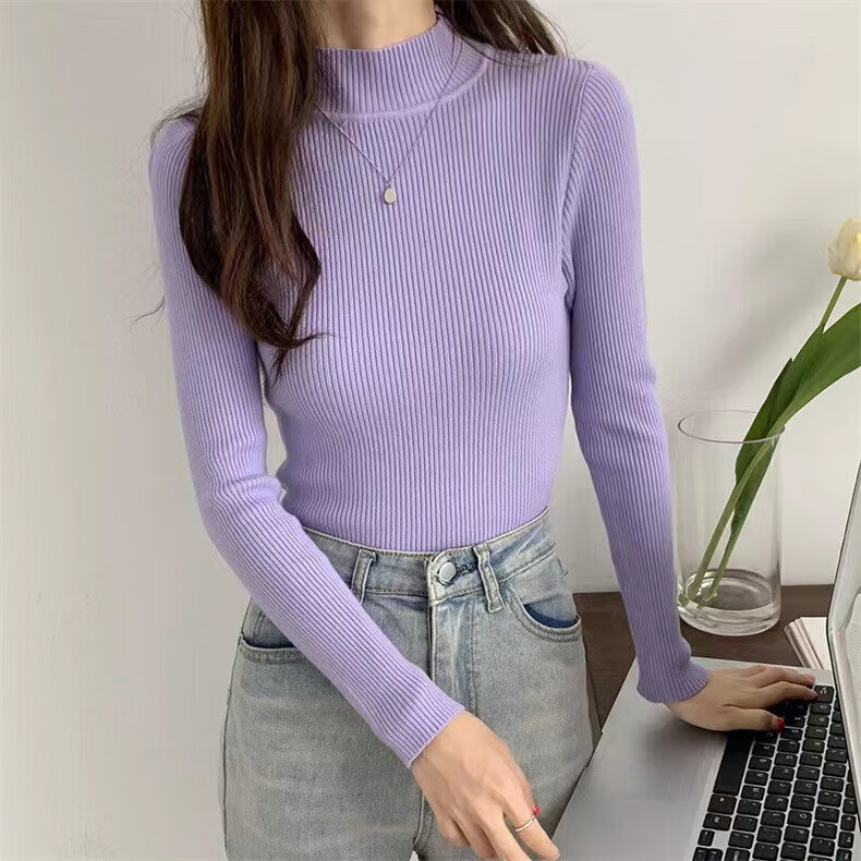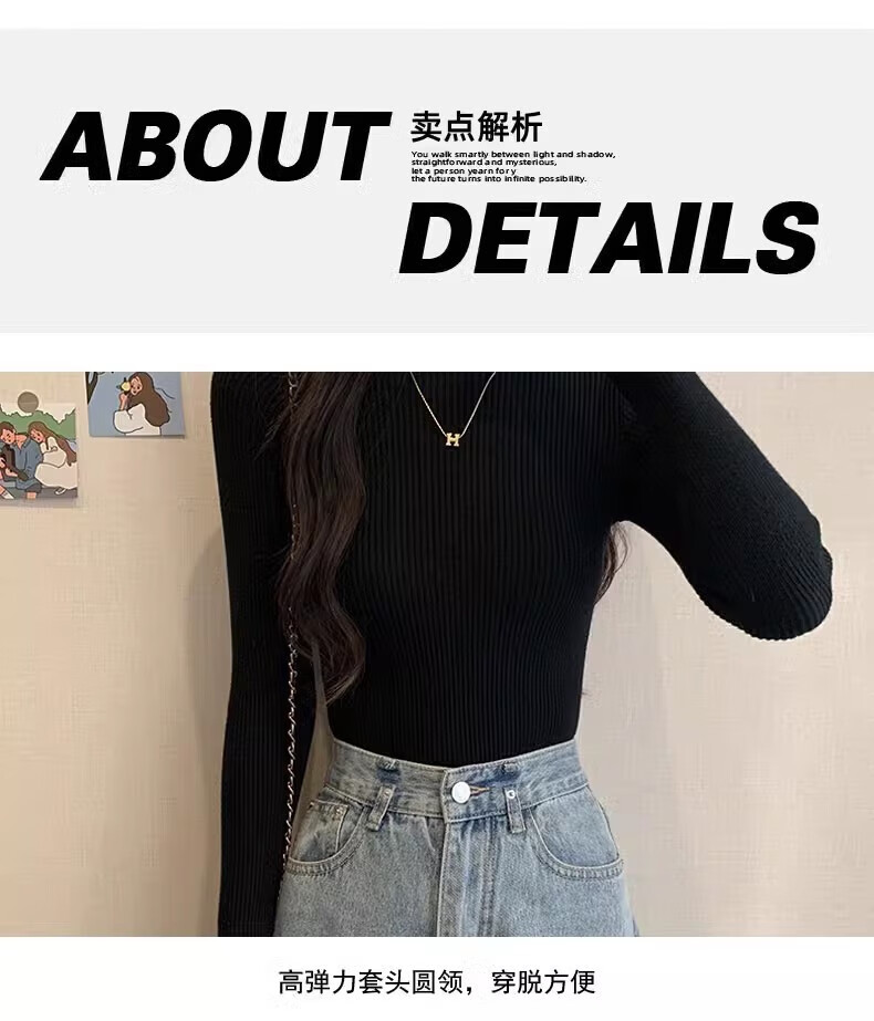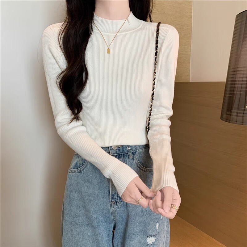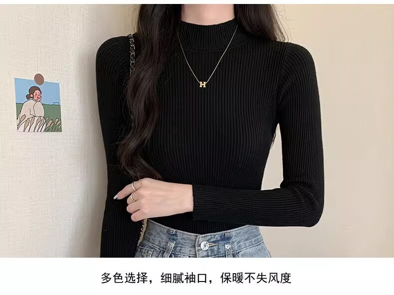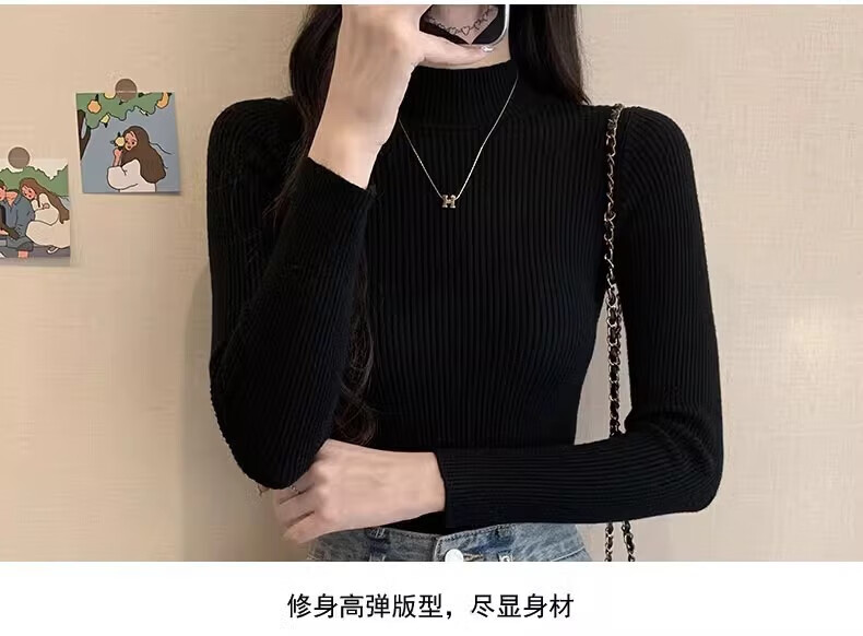 诗莉奥(SHILIAO)纯色半高领长袖毛衣女内搭打底衫春秋冬韩版百搭修身针织衫女上衣 半高领黑色 均码 (适合80-140斤)