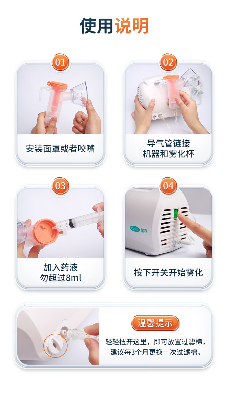 可孚雾化机医用级雾化器儿童家用婴儿老人成人压缩式 雾化配件*5套