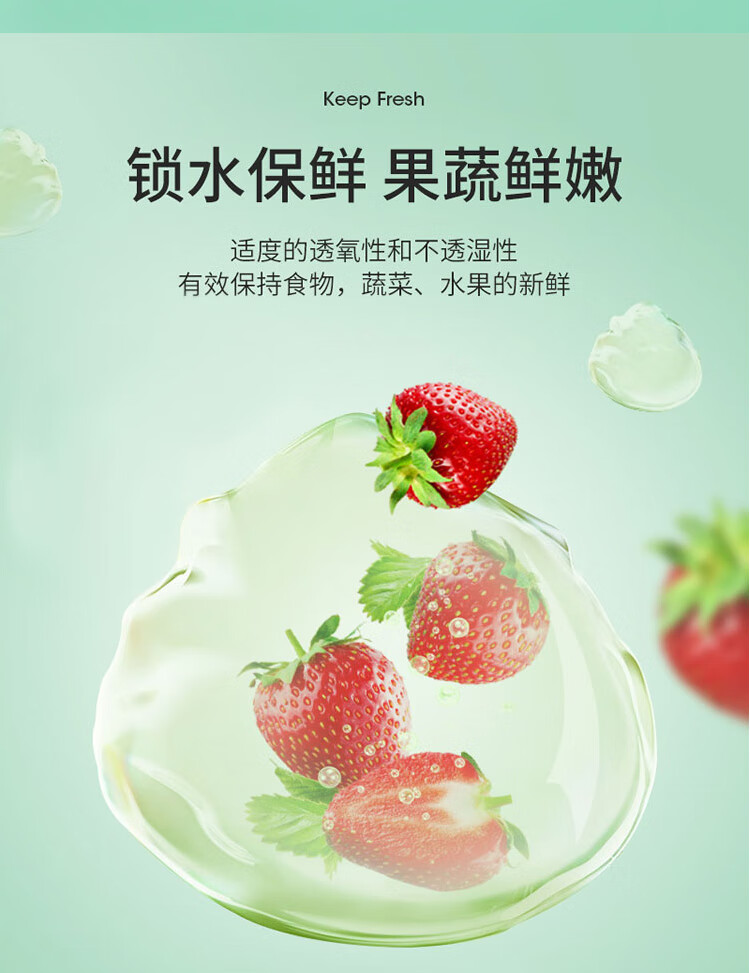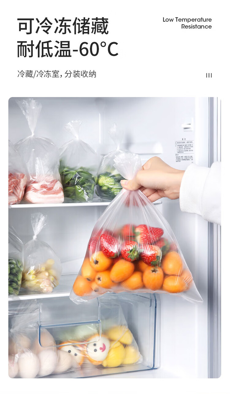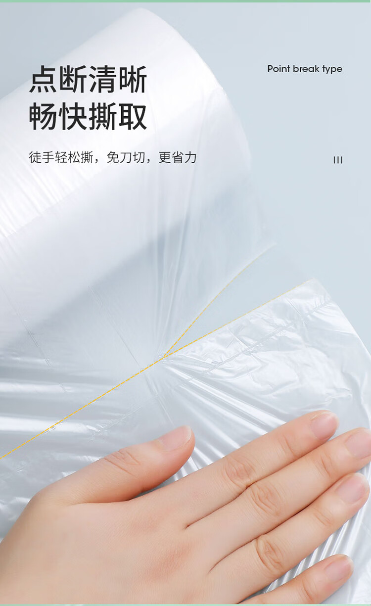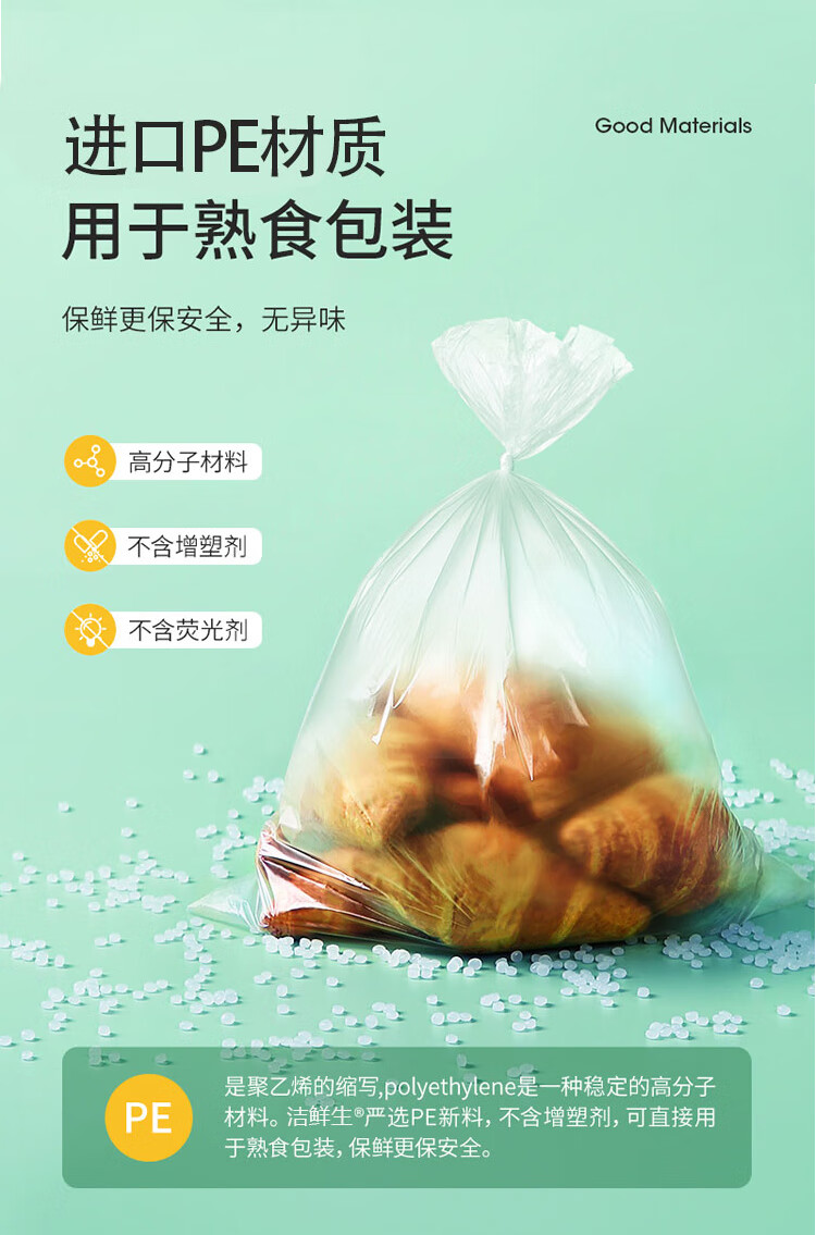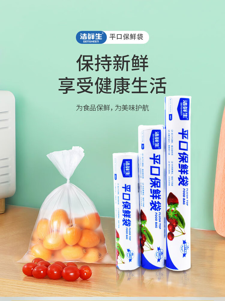 洁鲜生食品袋点断式食品级平口分装方便袋家用冰箱蔬果厨房超市塑料袋子 中号一卷500只