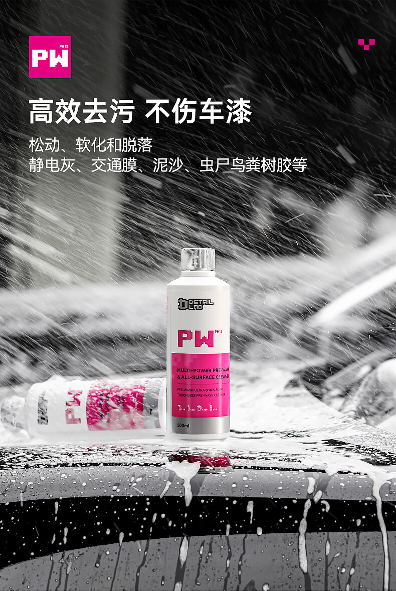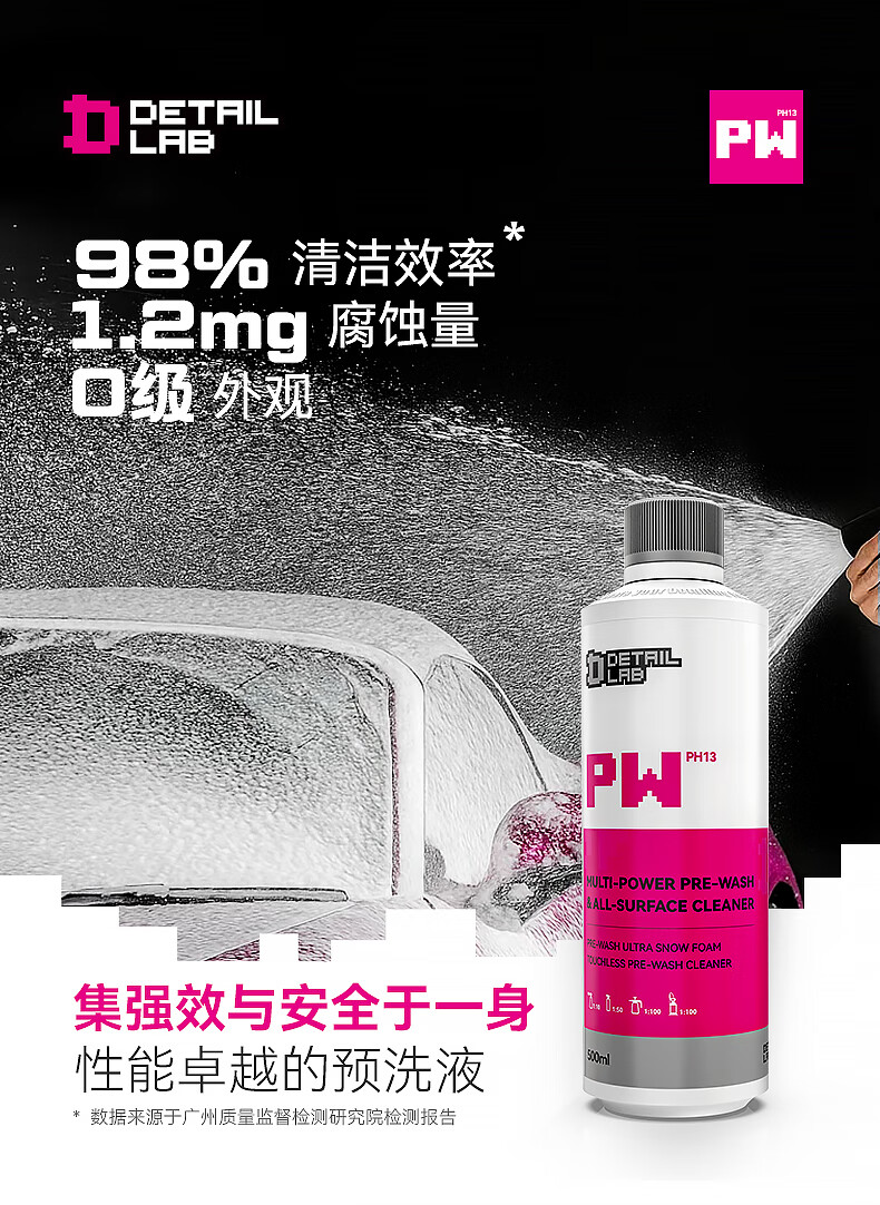 Detail Lab洗车液PW高泡沫预洗液水蜡PA强力去污清洁剂汽车专用DL PW预洗液 500ml 【超值推荐】