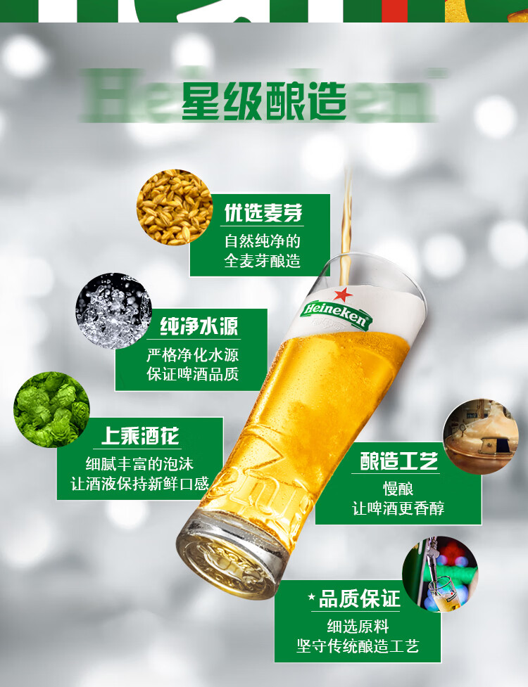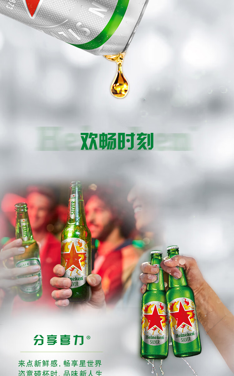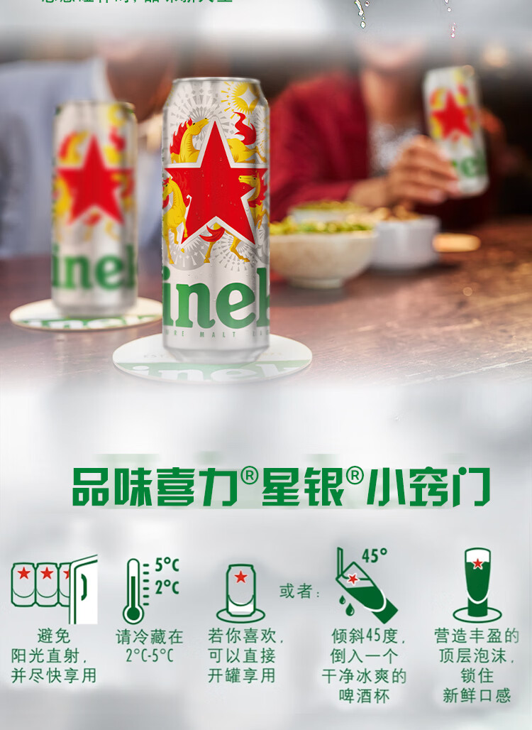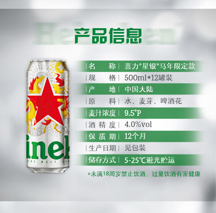 喜力啤酒 silver星银 整箱装清爽啤酒 马年礼盒 年货送礼 500mL 12罐