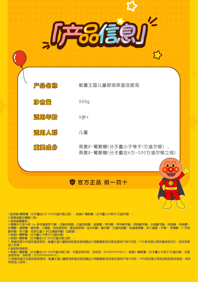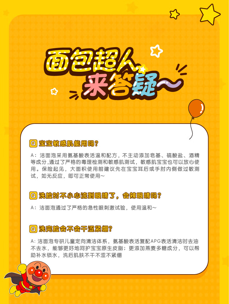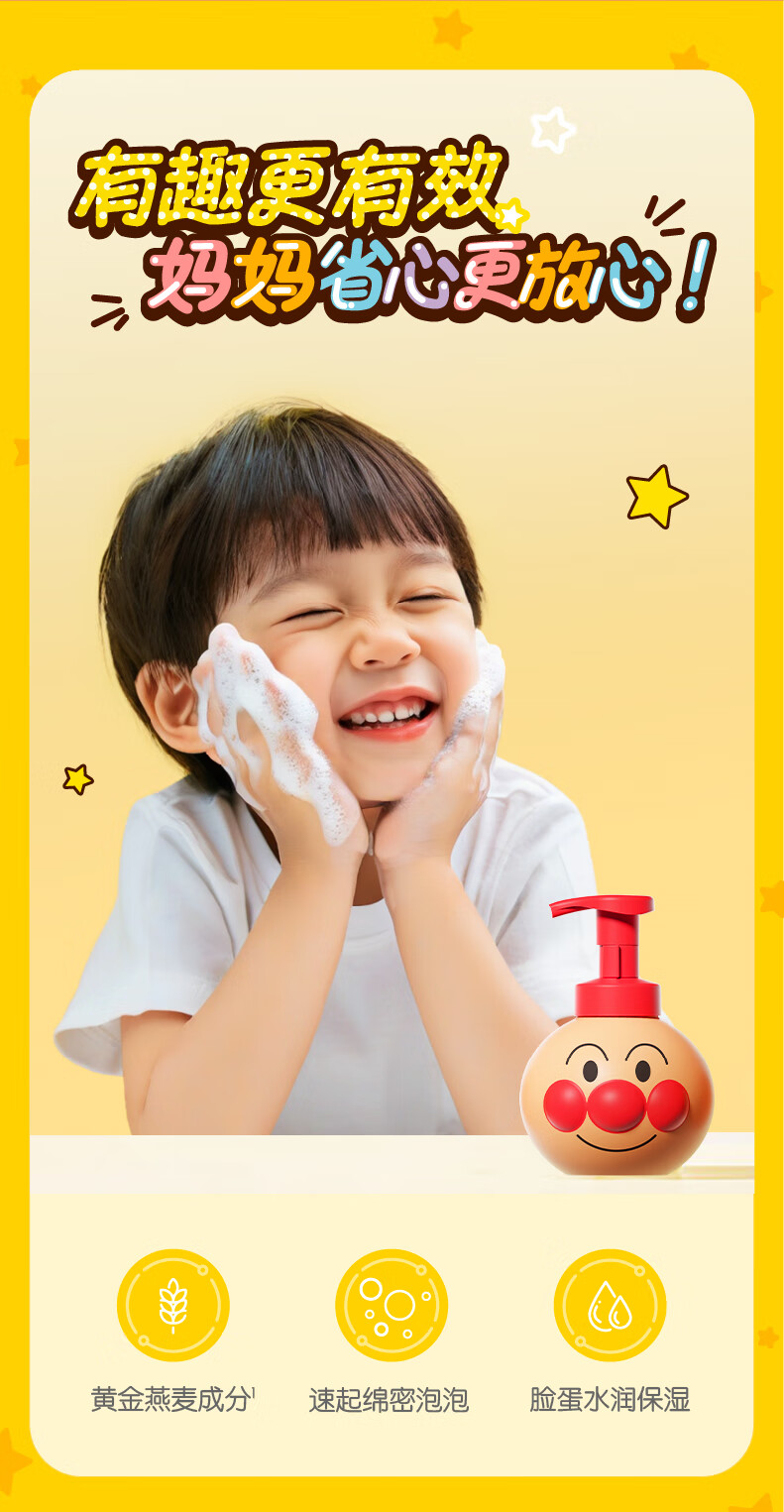 面包超人儿童洗面奶 宝宝氨基酸洁面乳300g 男女孩护肤专用洁面泡新年礼物 【100%氨基酸】燕麦舒润洁面泡300g*2