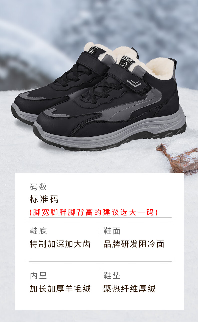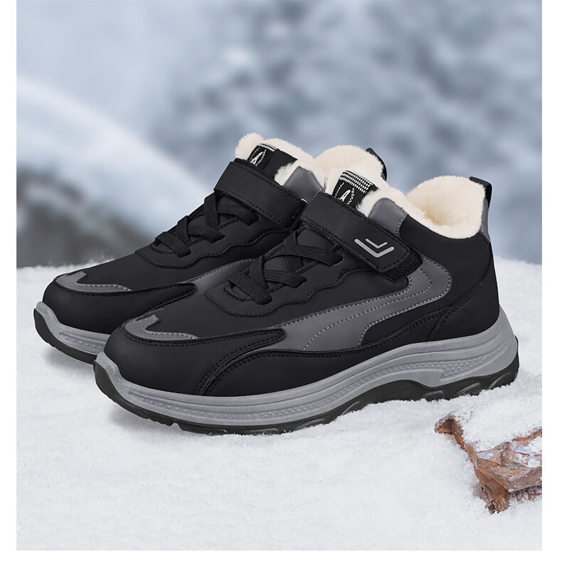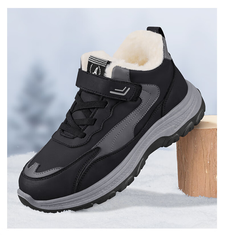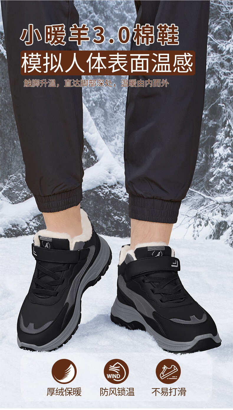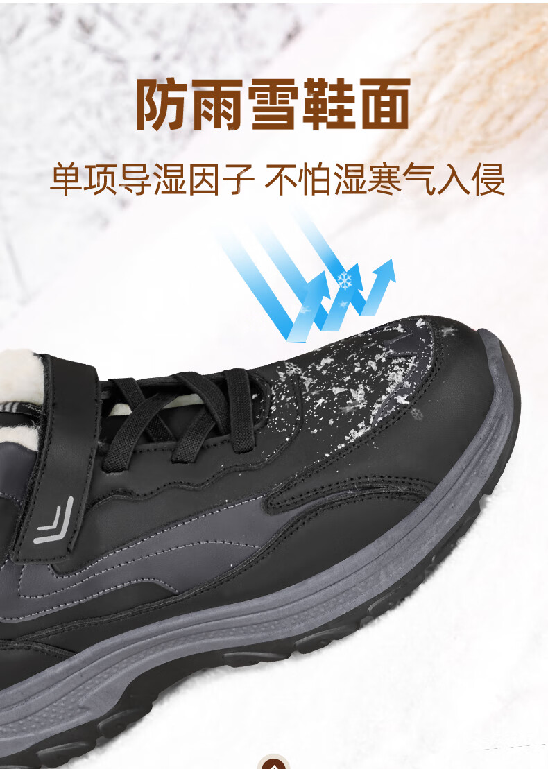 稻草人(MEXICAN)老人棉鞋男冬季加绒加厚羊毛防水防滑雪地靴中老年运动保暖爸爸鞋 黑色 39