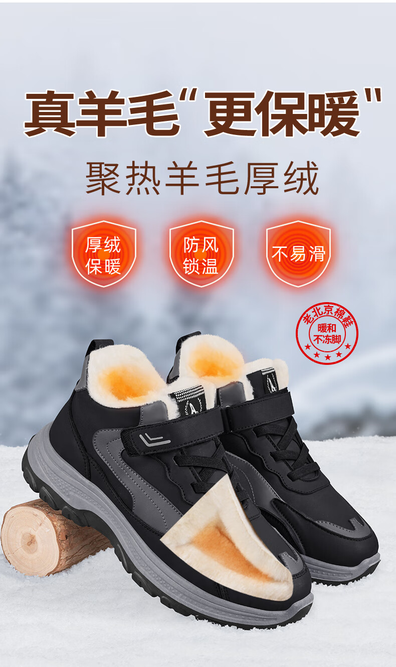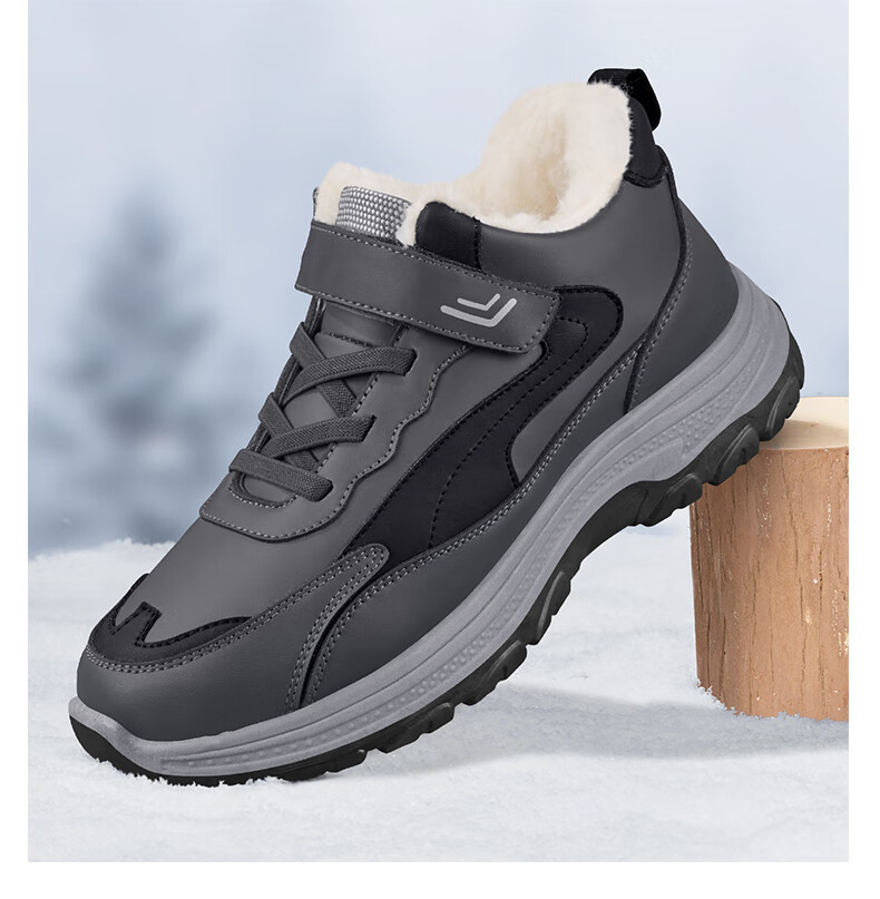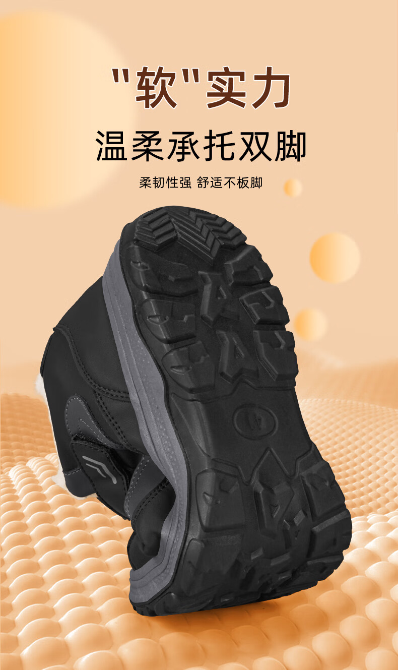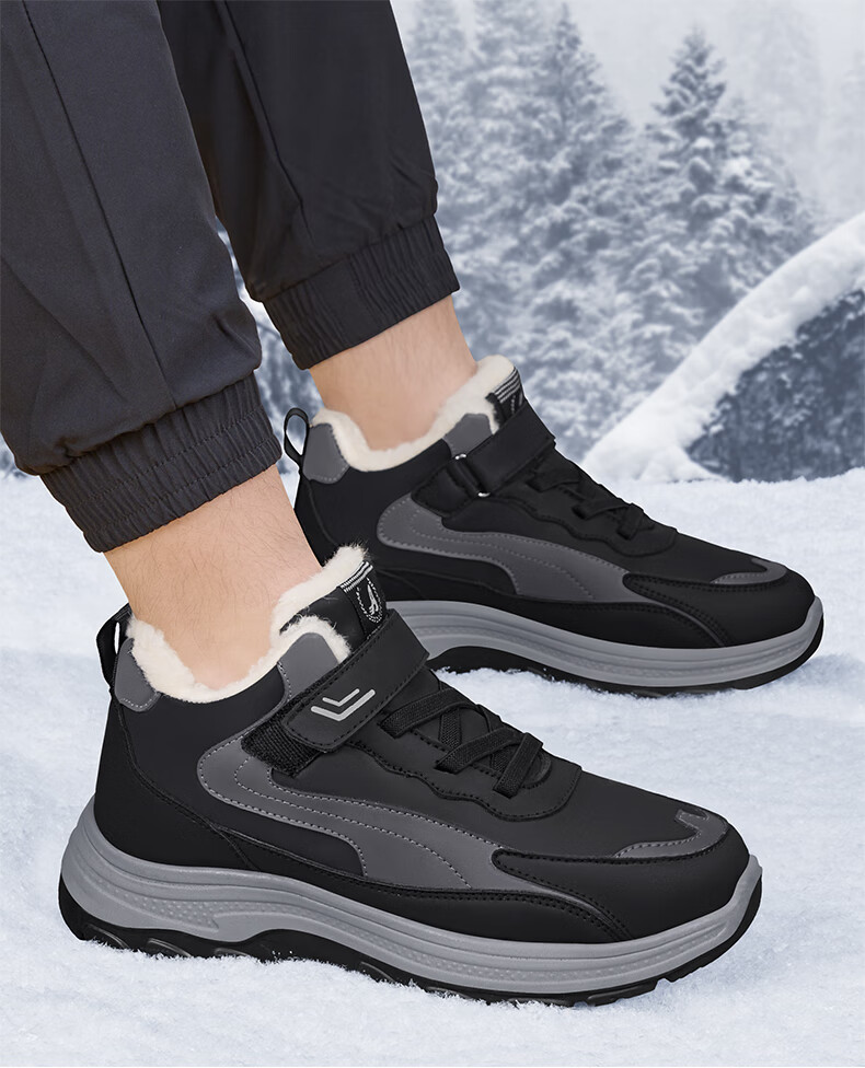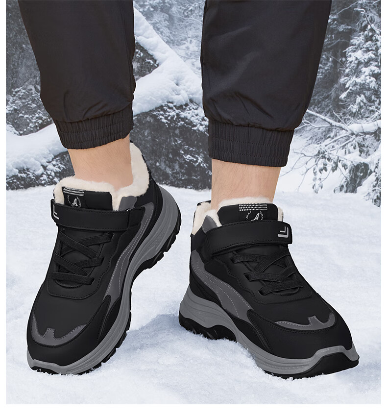 稻草人(MEXICAN)老人棉鞋男冬季加绒加厚羊毛防水防滑雪地靴中老年运动保暖爸爸鞋 黑色 39