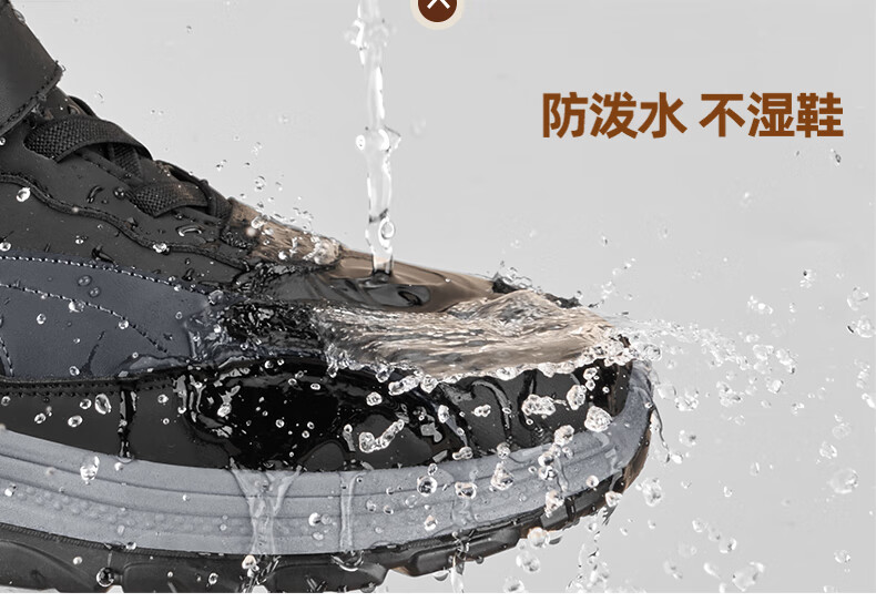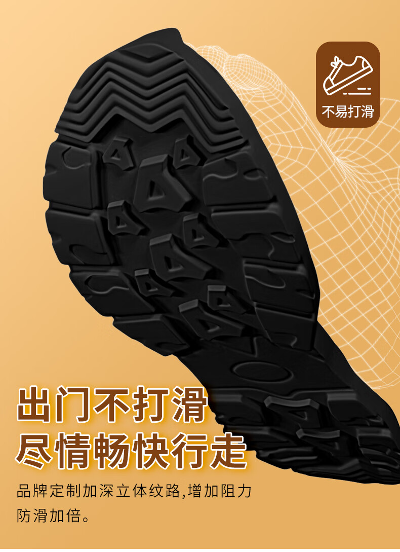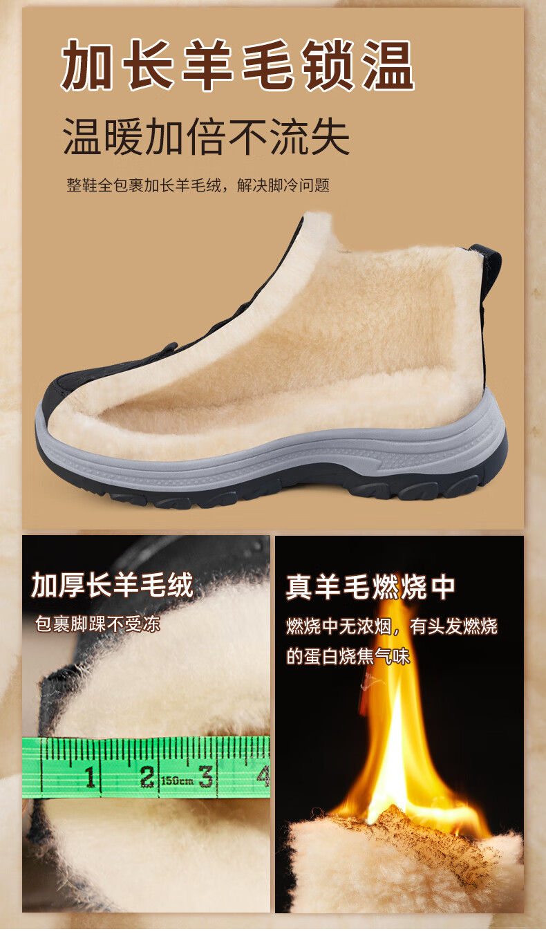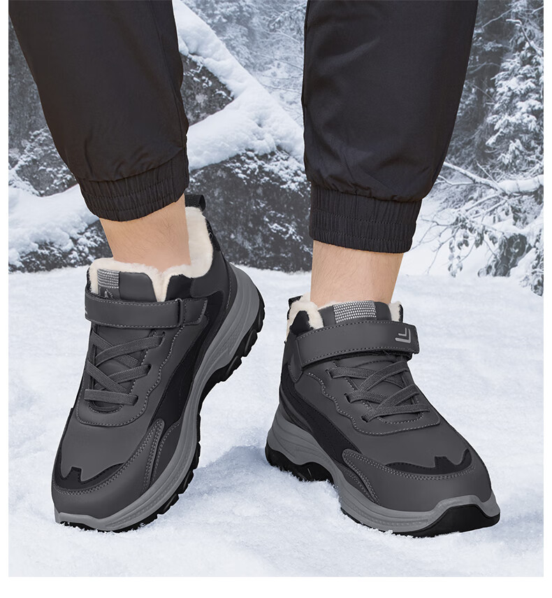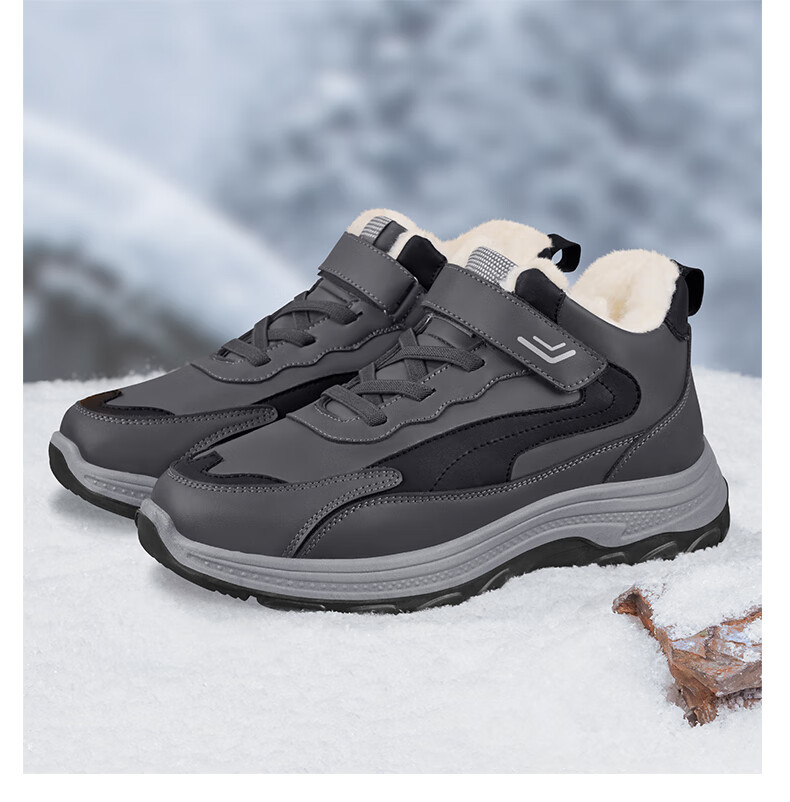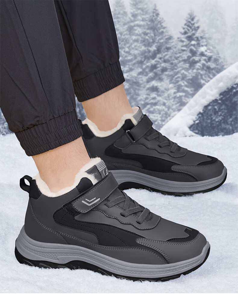 稻草人(MEXICAN)老人棉鞋男冬季加绒加厚羊毛防水防滑雪地靴中老年运动保暖爸爸鞋 黑色 39