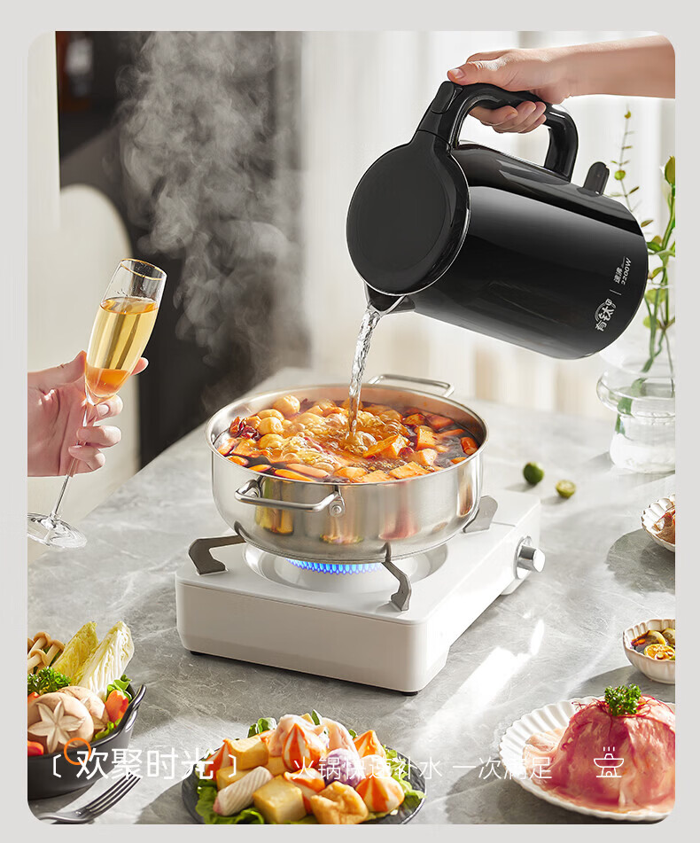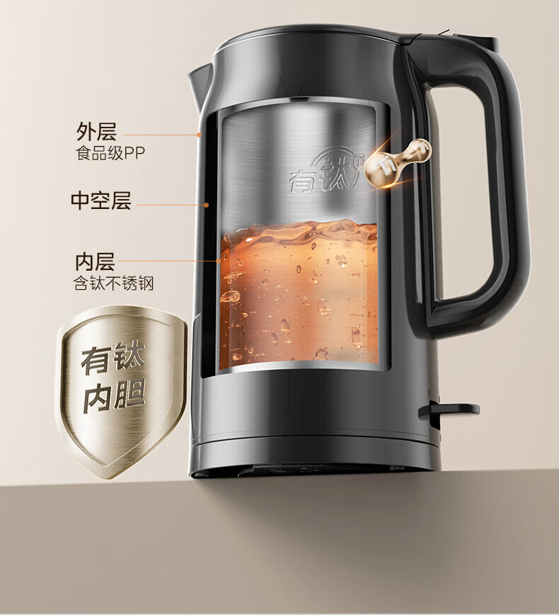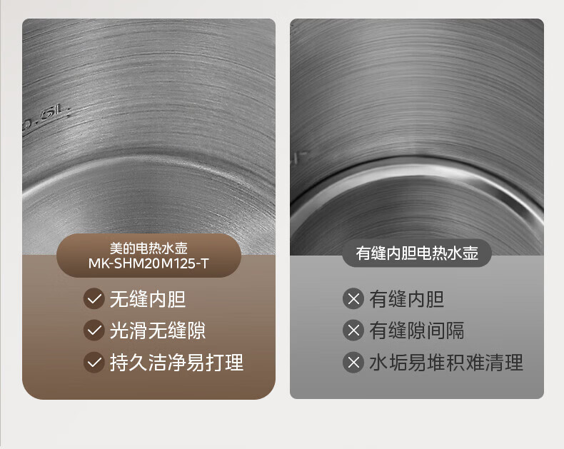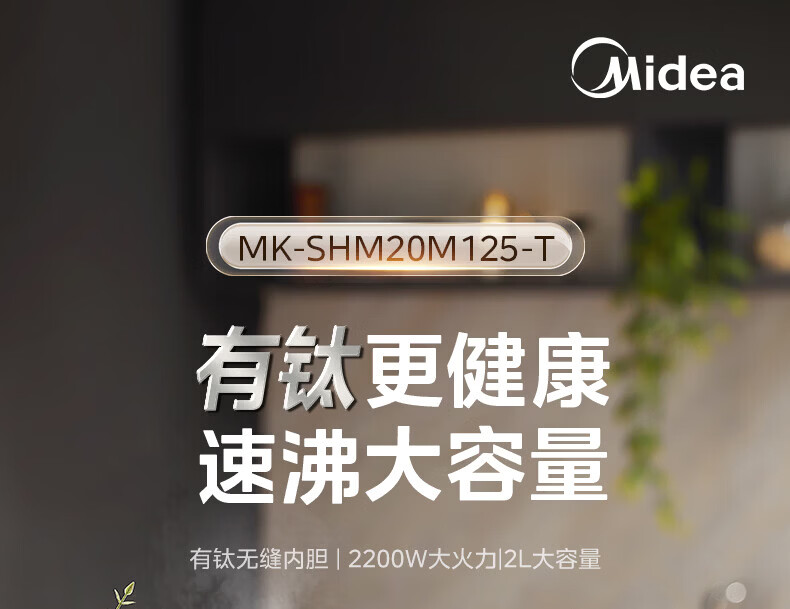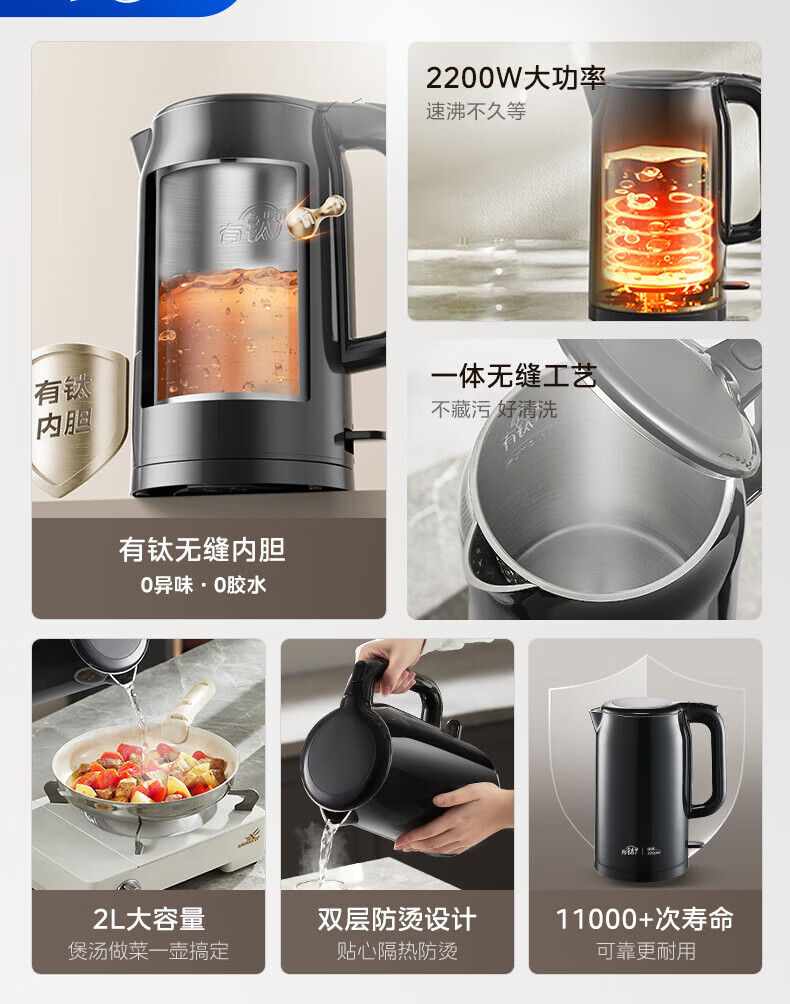 美的(Midea)2200w大功率电热水壶电烧水壶全自动一体 2升大容量电水壶烧水家用有钛不锈钢一体无缝内胆煮茶壶 2L 有钛无缝内胆【2026年旗舰新品】