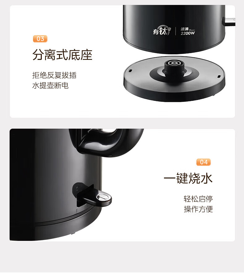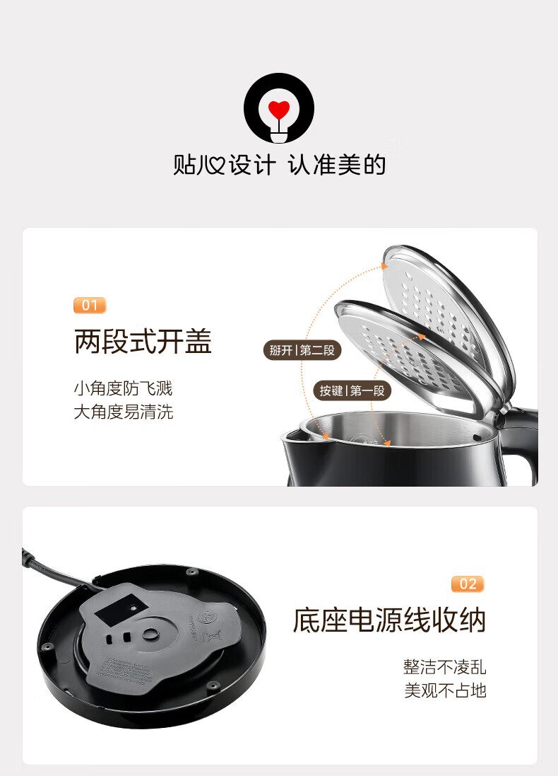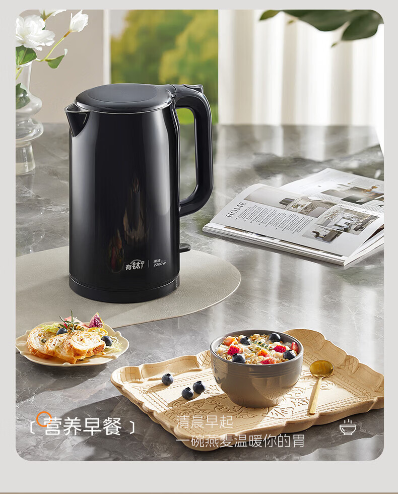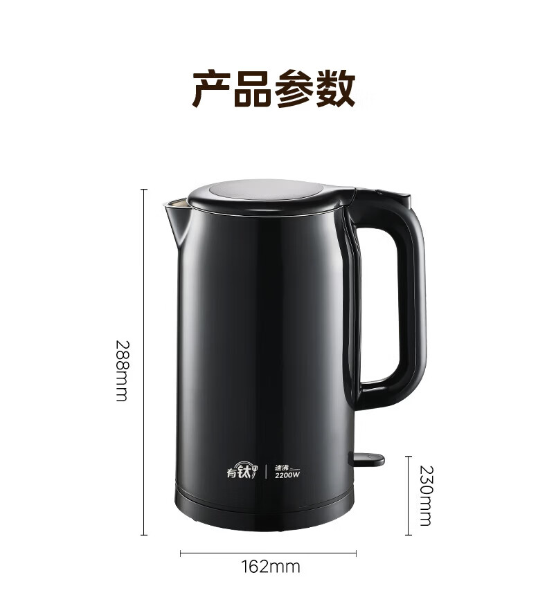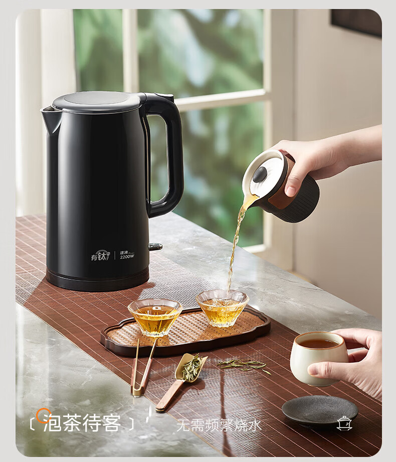 美的(Midea)2200w大功率电热水壶电烧水壶全自动一体 2升大容量电水壶烧水家用有钛不锈钢一体无缝内胆煮茶壶 2L 有钛无缝内胆【2026年旗舰新品】