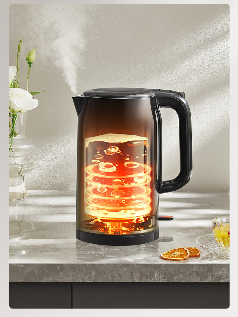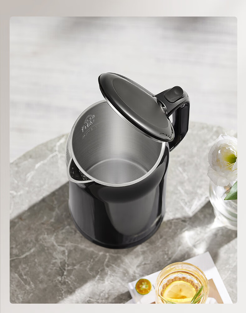 美的(Midea)电热水壶 家用大容量1.7L烧水壶1800W大功率304食品级不锈钢电热水壶快烧速沸自动断电泡茶烧水壶 1.7L MK-SH17X103【1800W快烧】