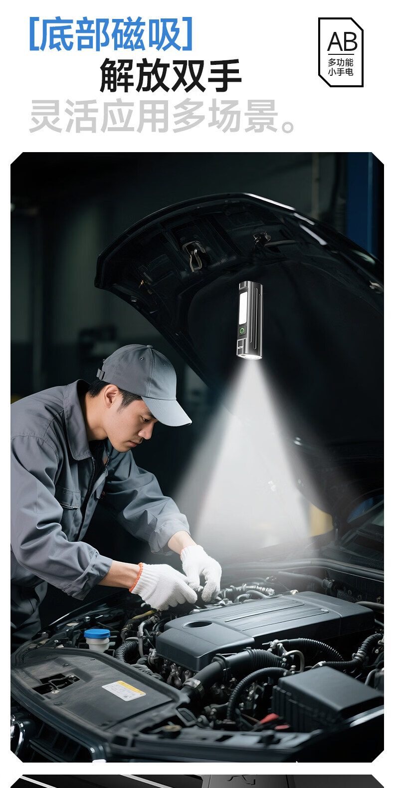 奥克斯修车工作灯手电筒强光可充电汽修维修磁吸照明灯超长续航带红激光 【维修用】红激光+磁吸+高亮灯芯+1800MAH