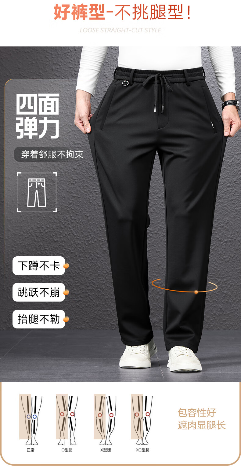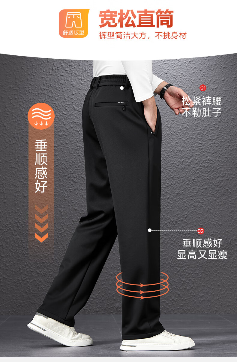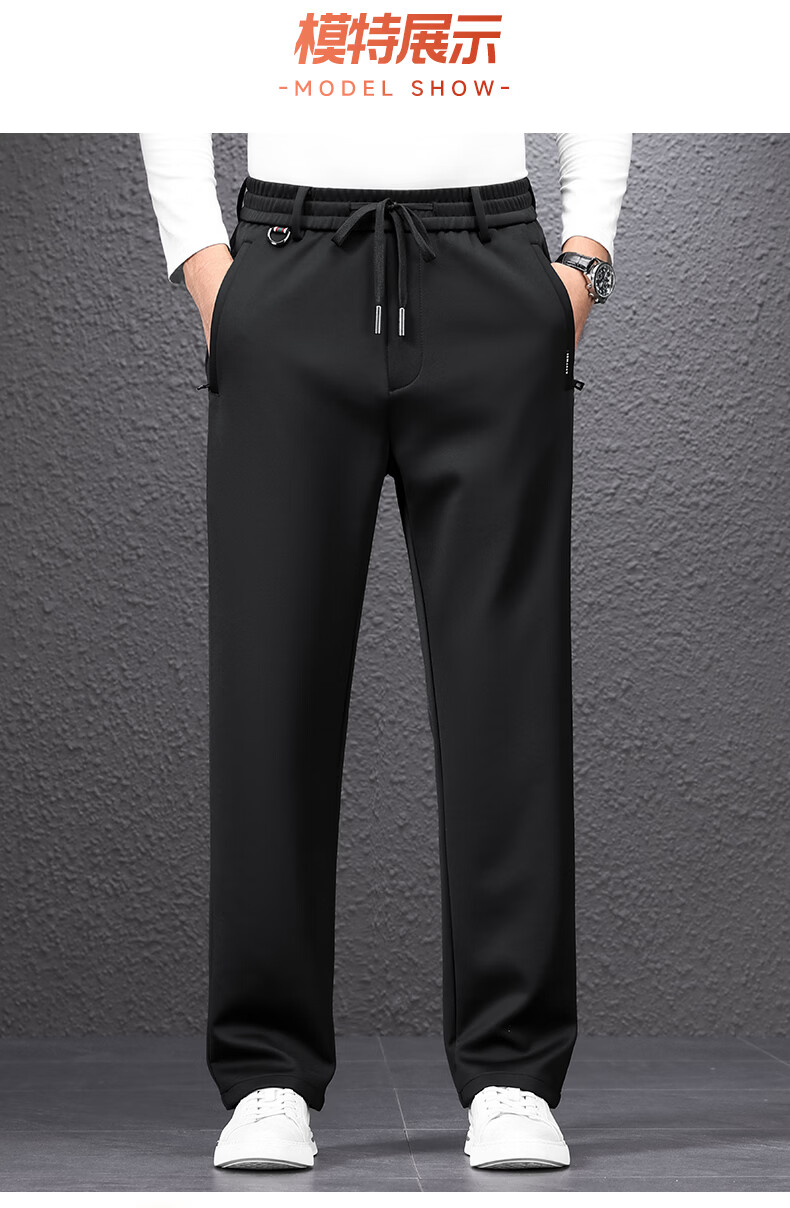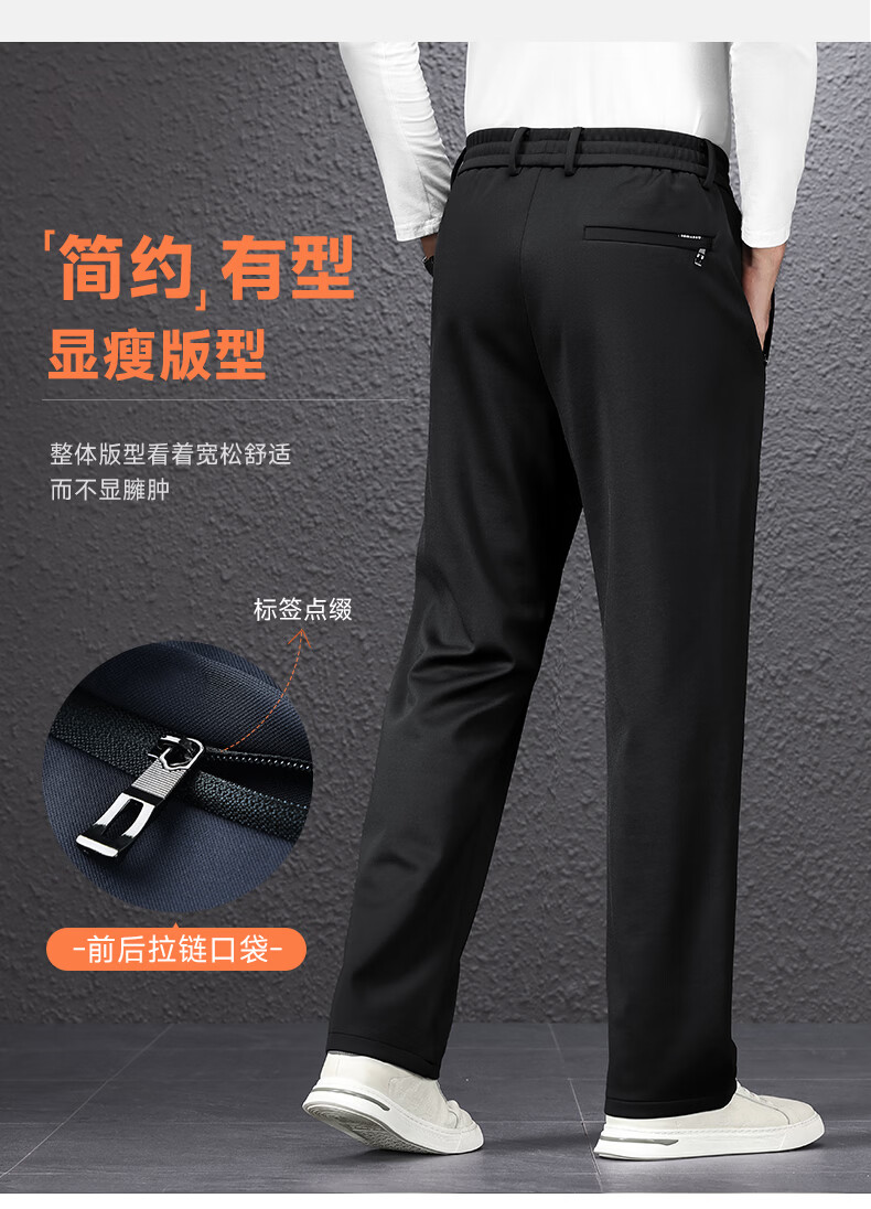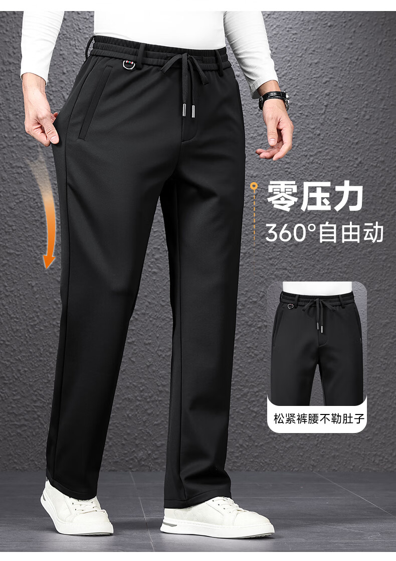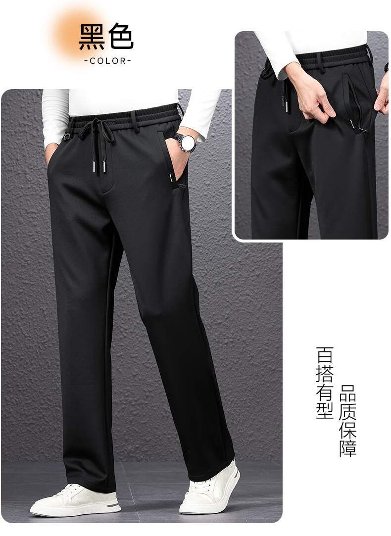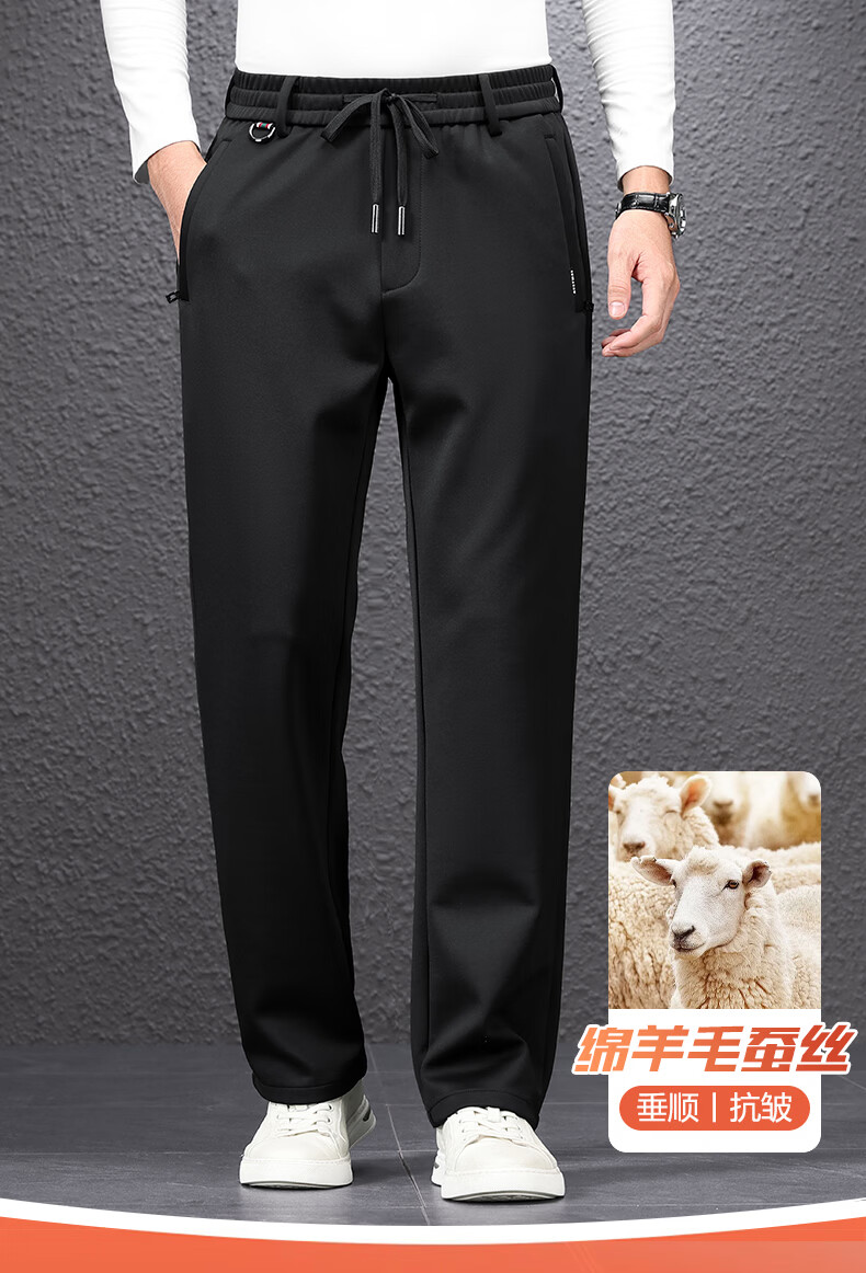 SHANSHAN杉杉男士直筒裤【含桑蚕丝+羊毛】2026春季新款商务休闲百搭长裤 黑色 2XL