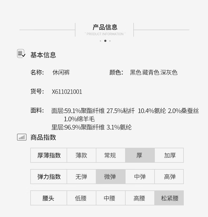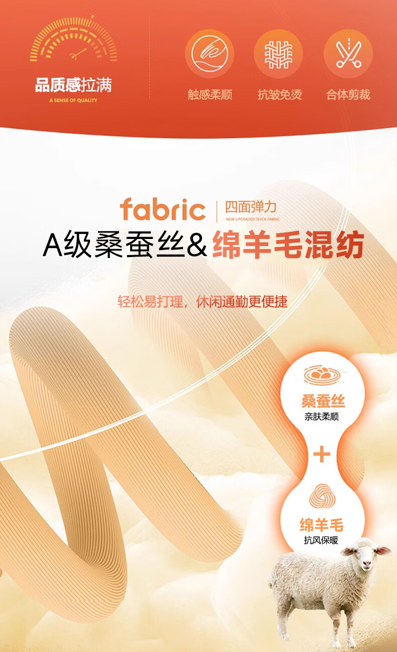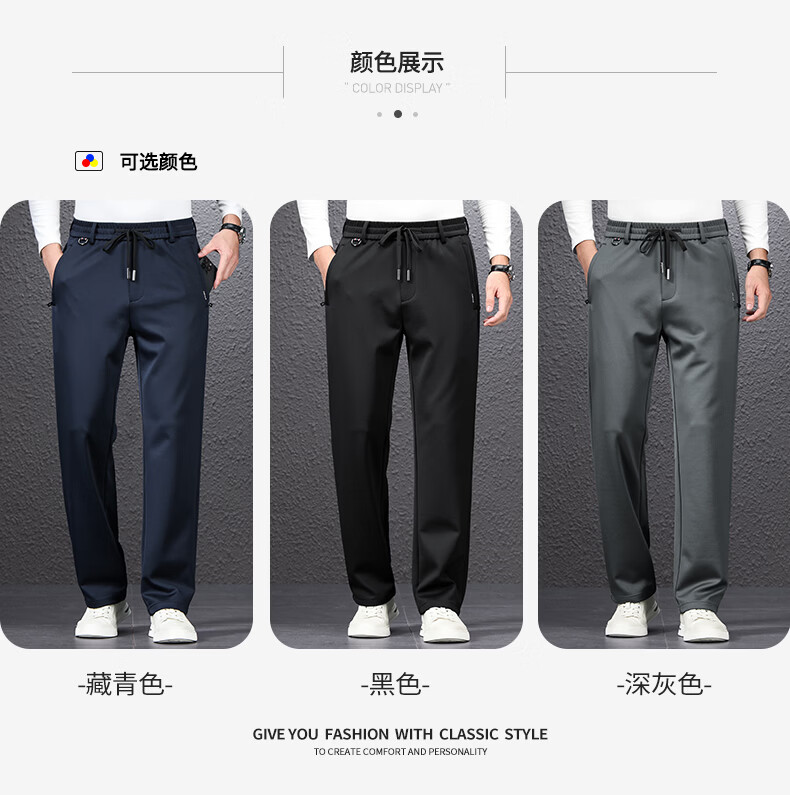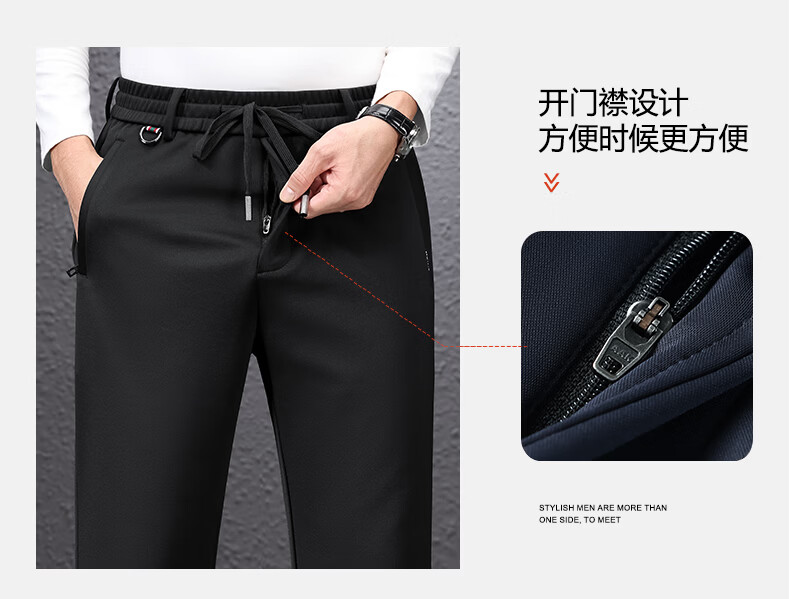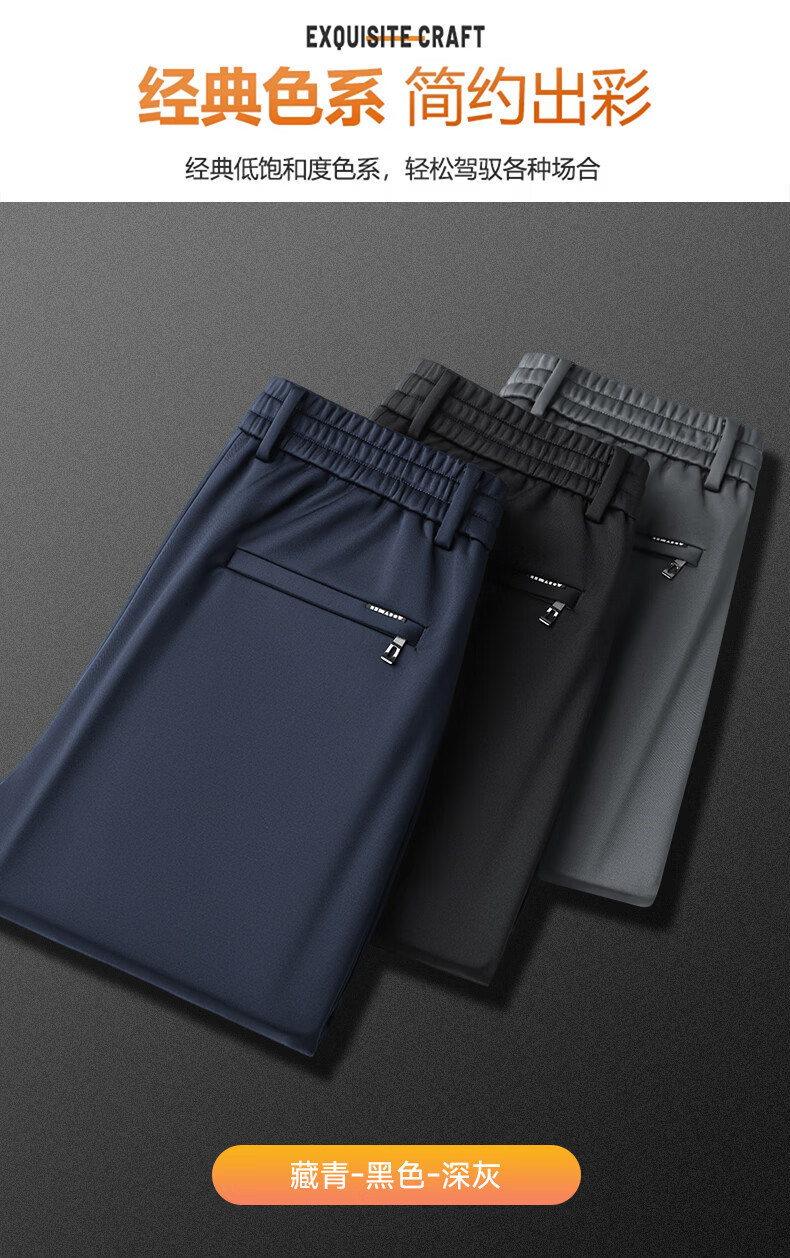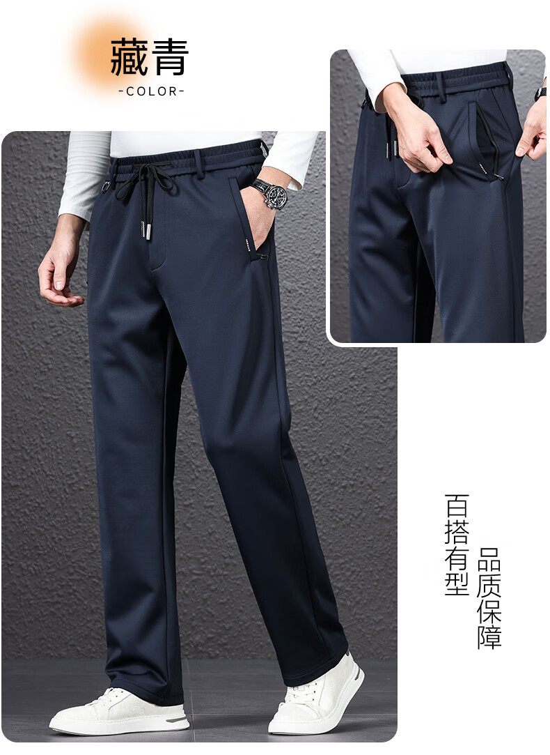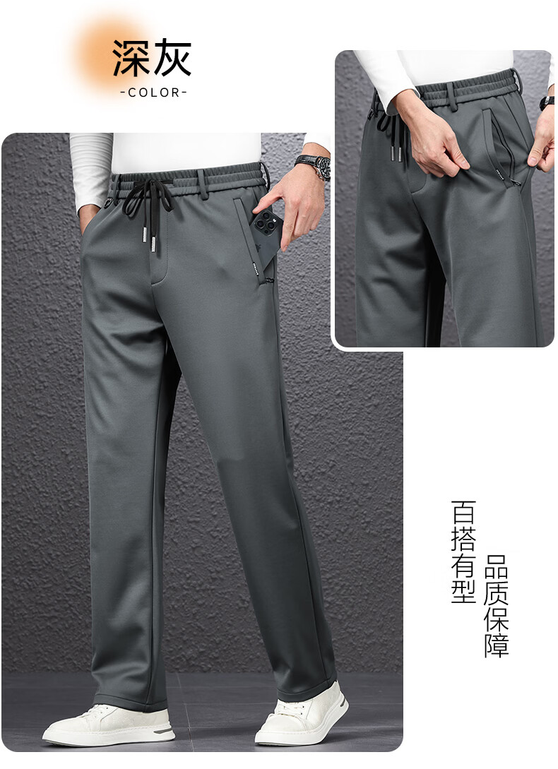 SHANSHAN杉杉男士直筒裤【含桑蚕丝+羊毛】2026春季新款商务休闲百搭长裤 黑色 2XL