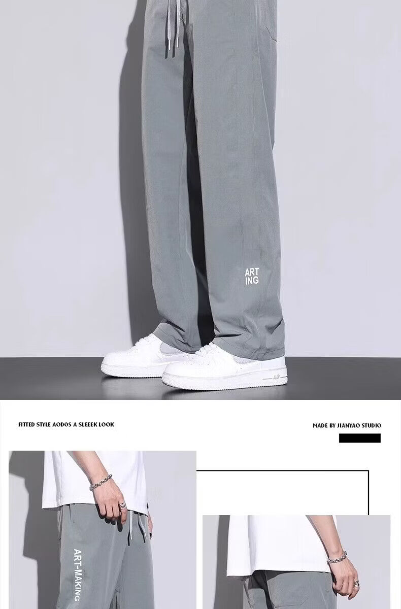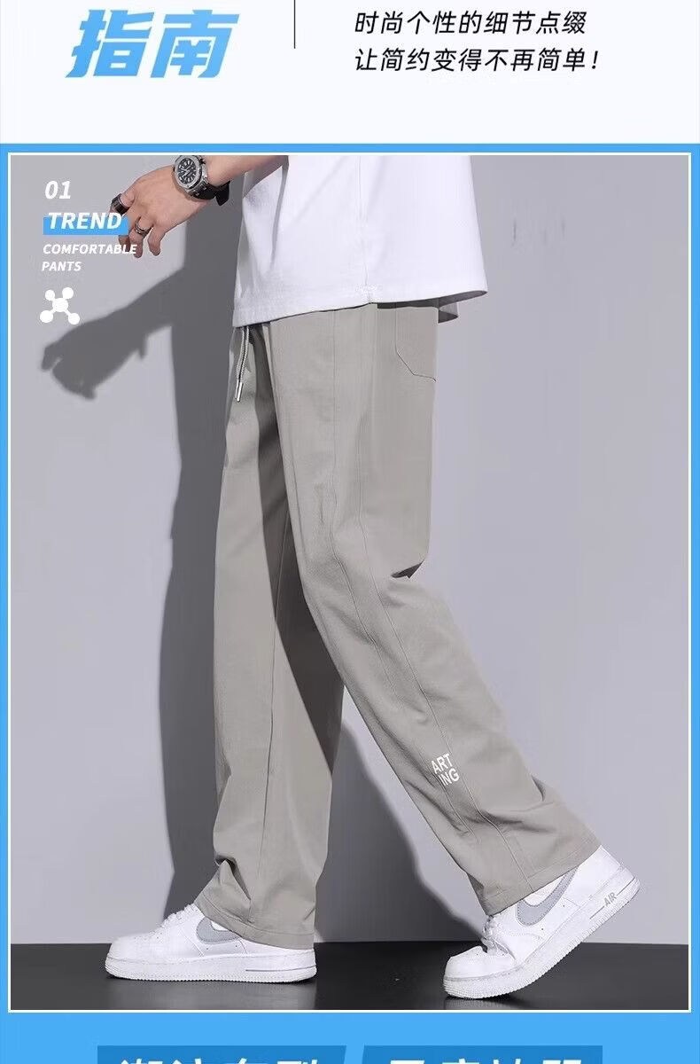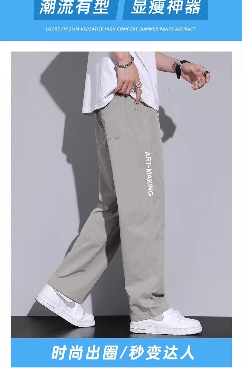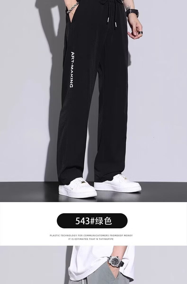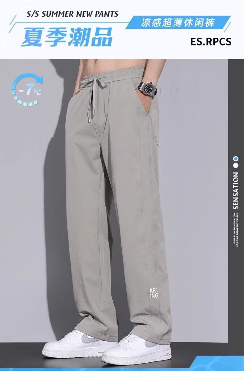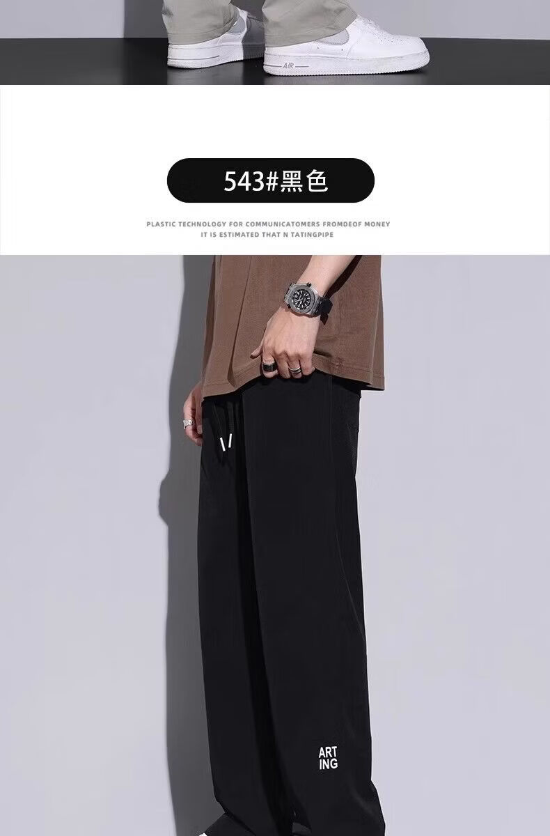 真维斯(Jeanswest)2026春夏季薄款冰丝男士裤子凉感速干简约直筒宽松阔腿运动裤 黑色【冰丝薄款】 M