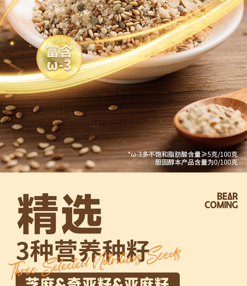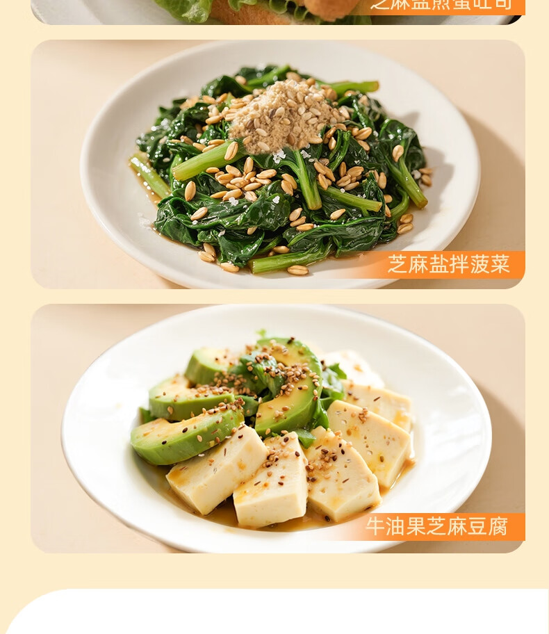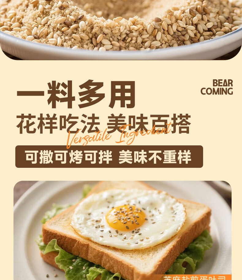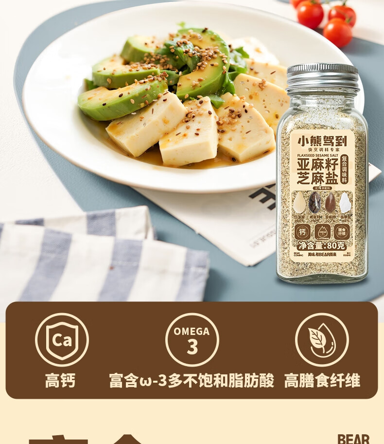 小熊驾到亚麻籽芝麻盐80g 高钙高膳食纤维凉拌菜奇亚籽低钠盐烧烤调味料
