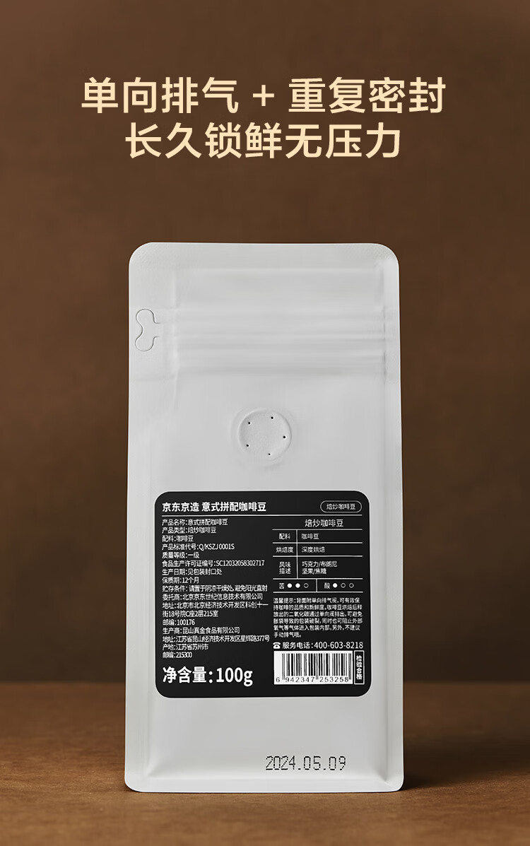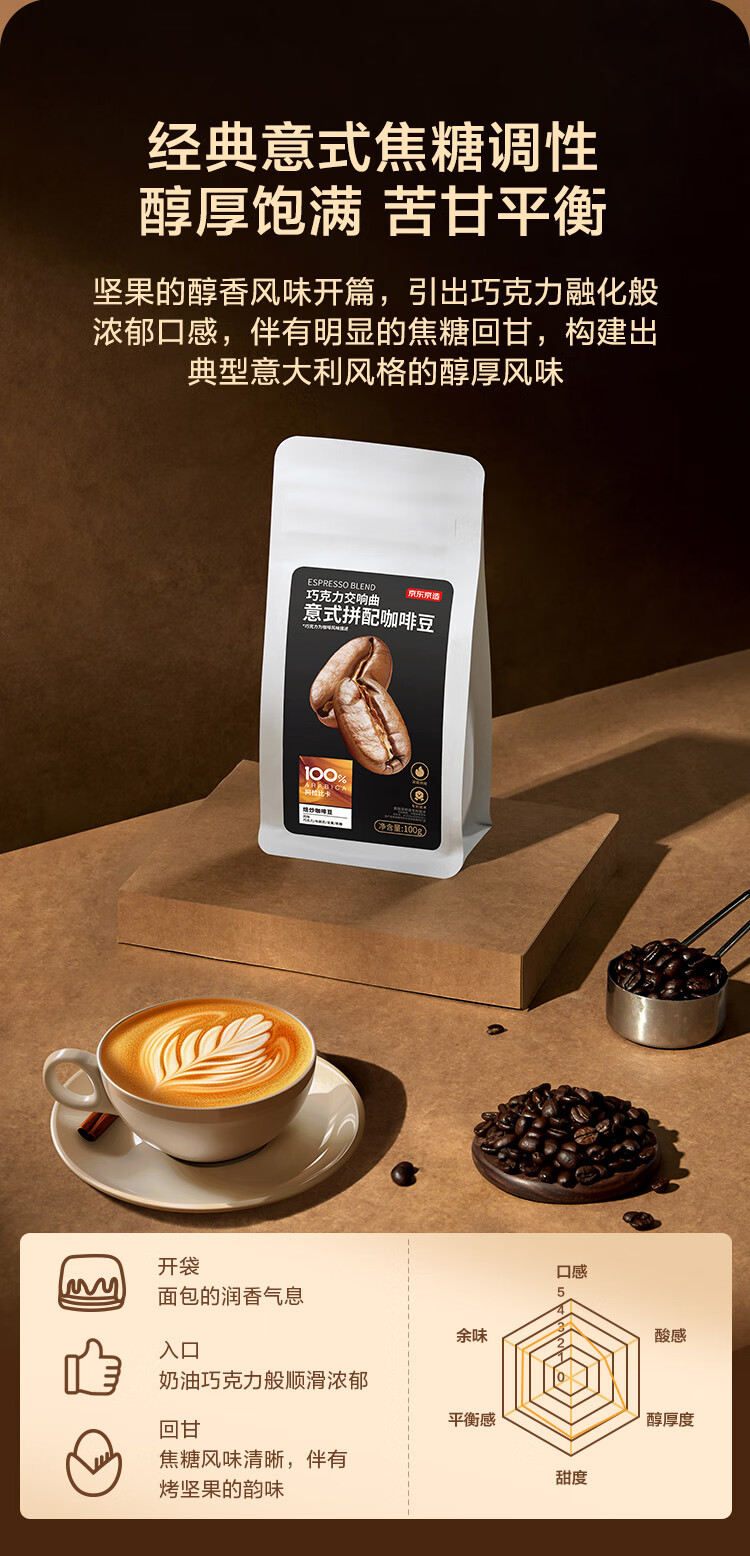 京东京造 鲜来多 意式咖啡豆试饮100g 100%阿拉比卡香醇油脂浓郁低酸深烘