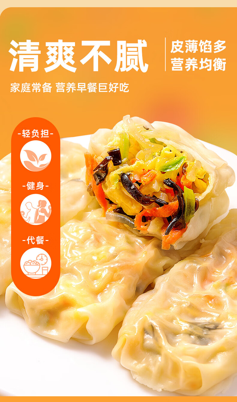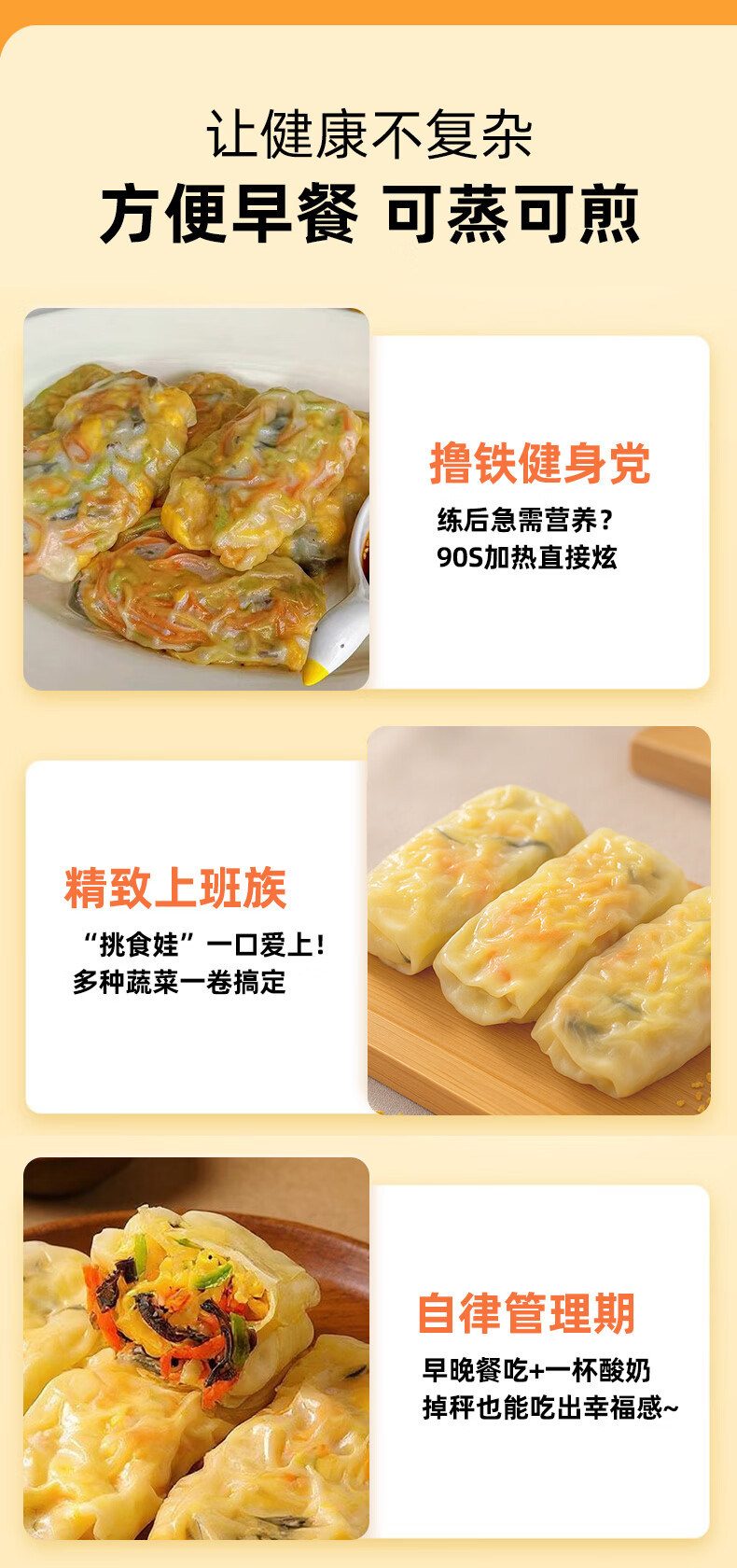 锦溪麦田薄皮三鲜蔬菜卷蒸煎包子学生早餐加热即食健身代餐速食半成品卷饼 【2袋装 共20个】三鲜蔬菜卷360g/袋