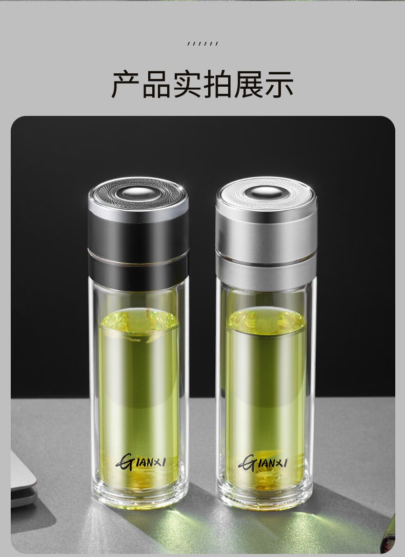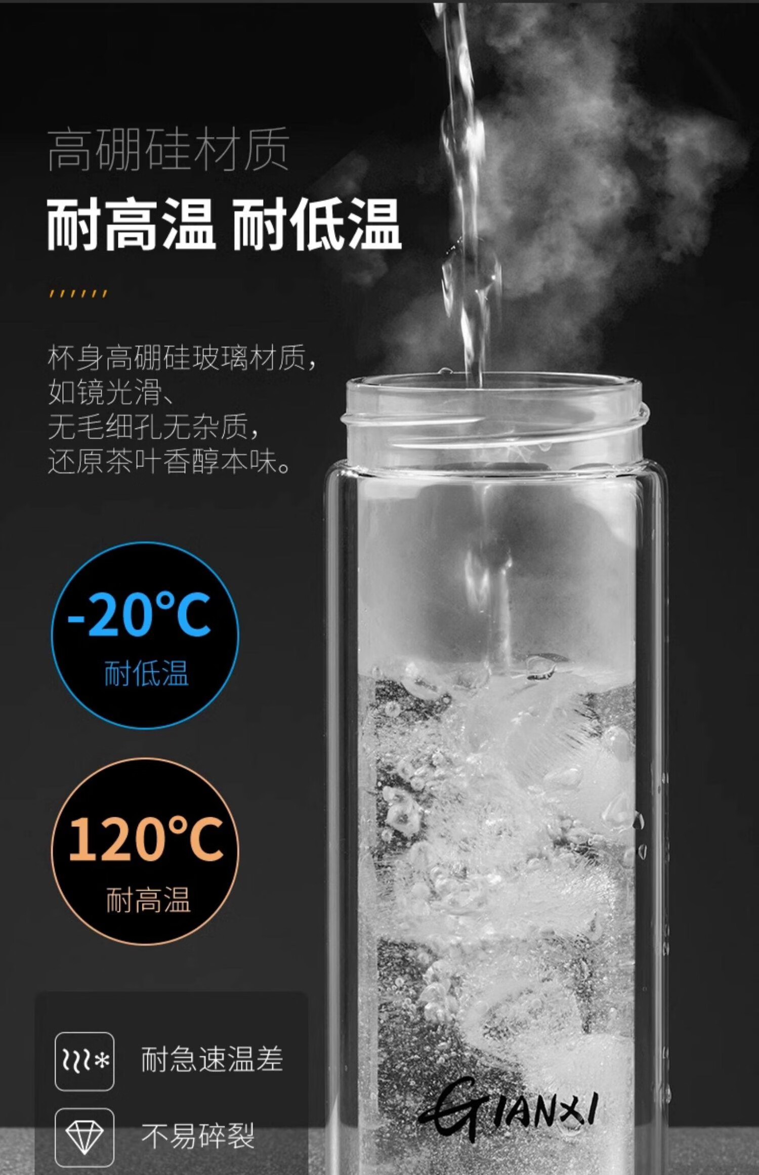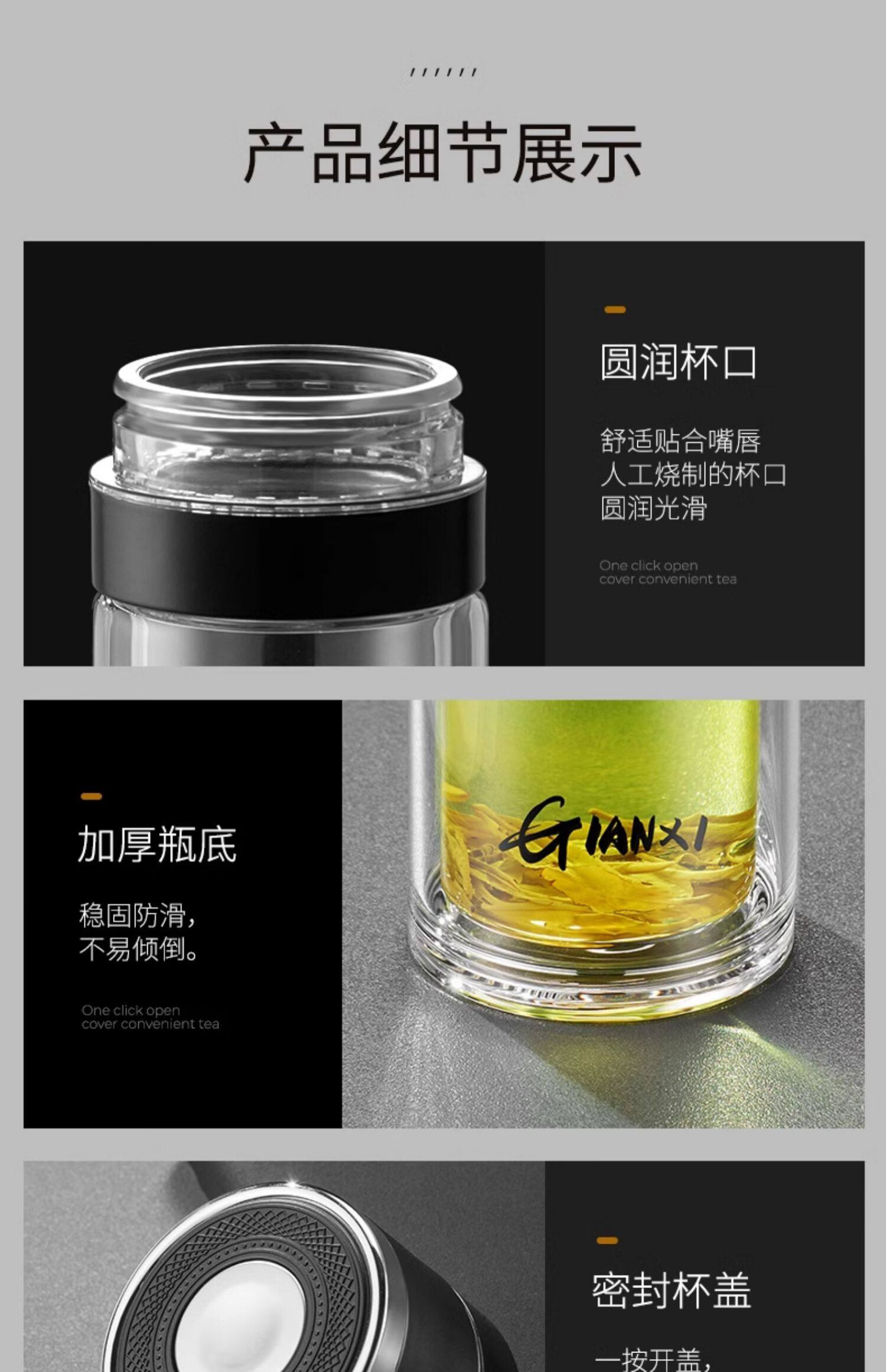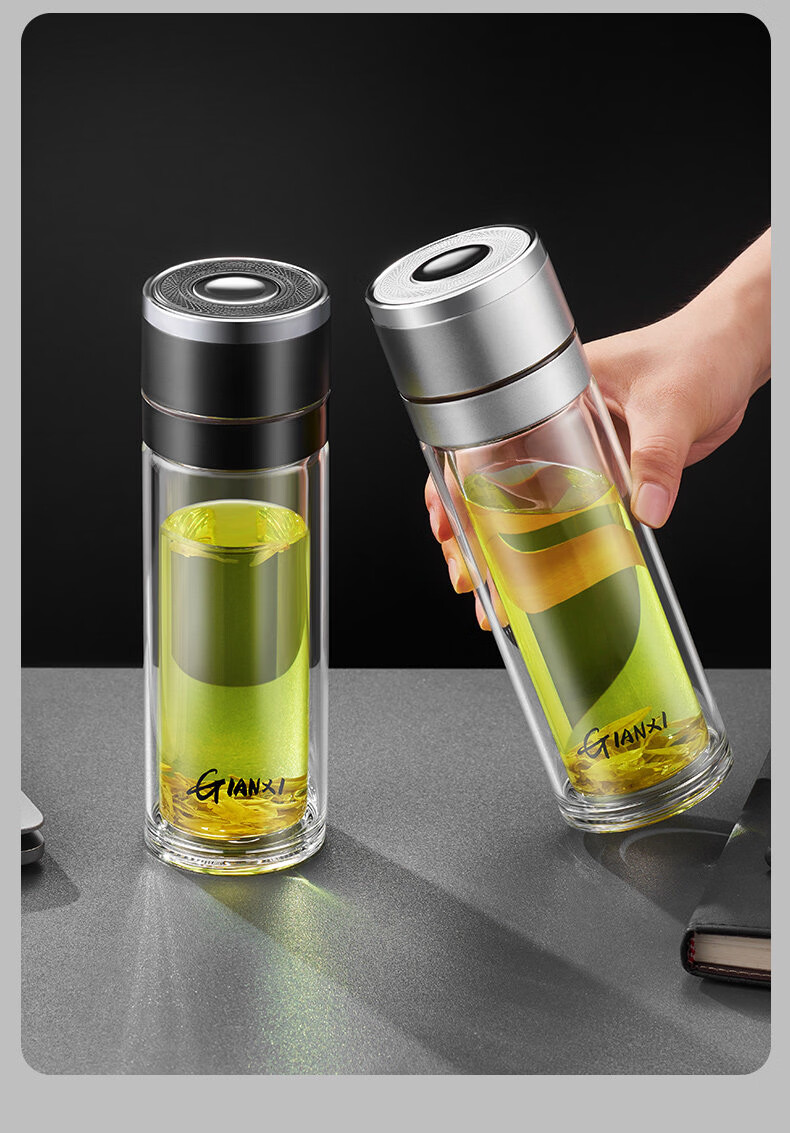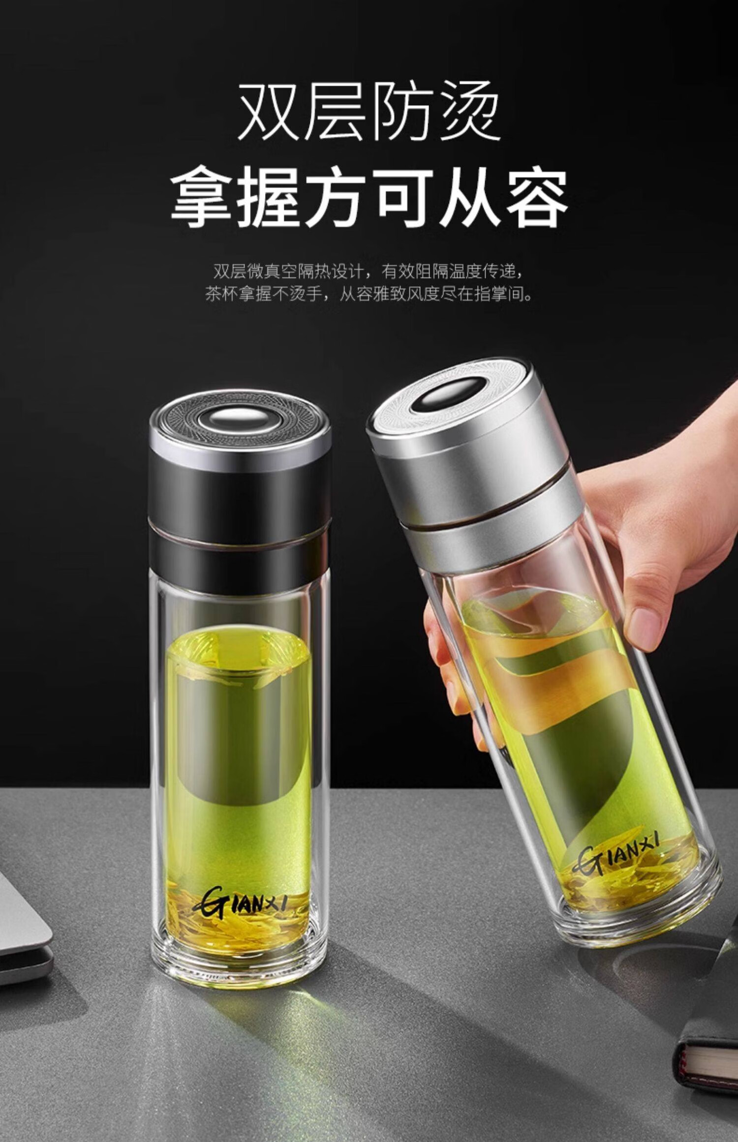 GERTHRON德国一键开盖双层玻璃杯男女士水杯2026新款车载茶水分离泡茶杯 双层加厚绅士黑【赠杯套+杯刷】 500ml