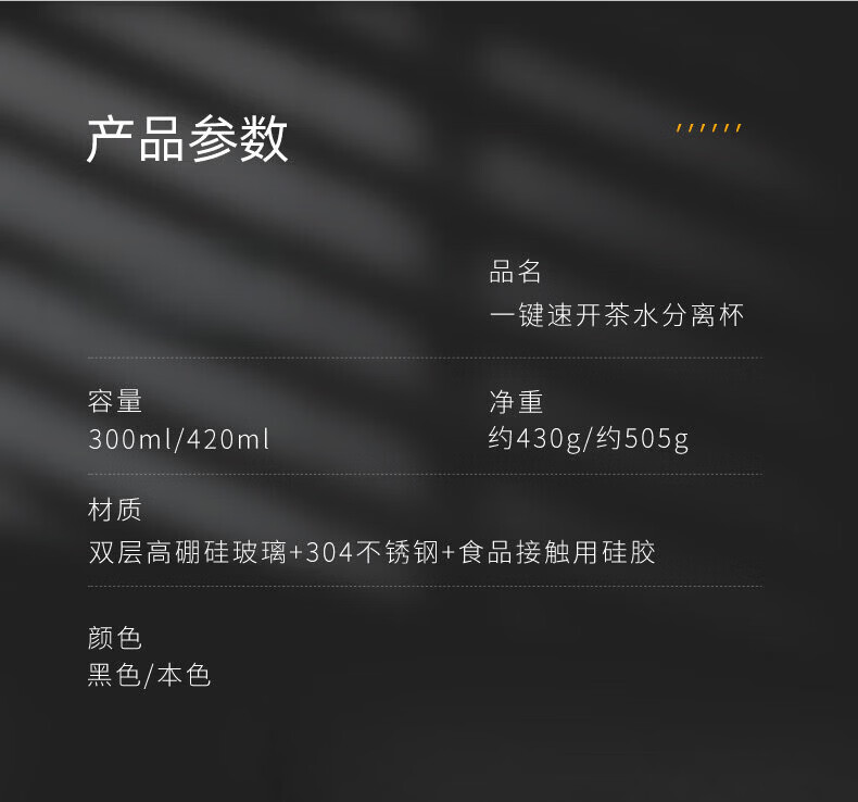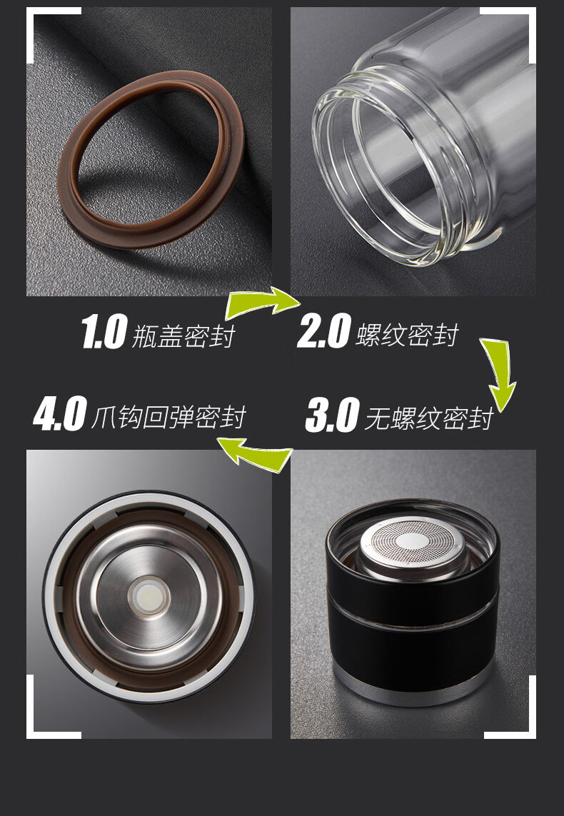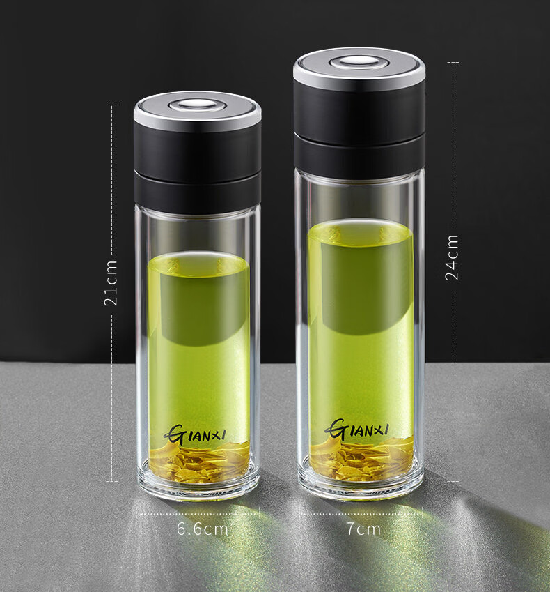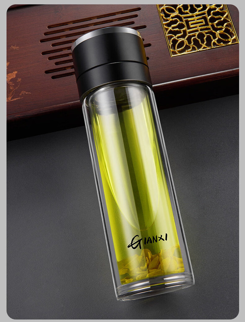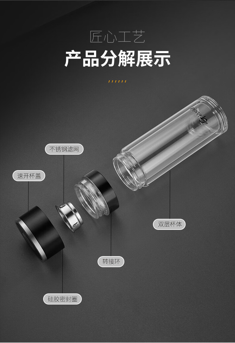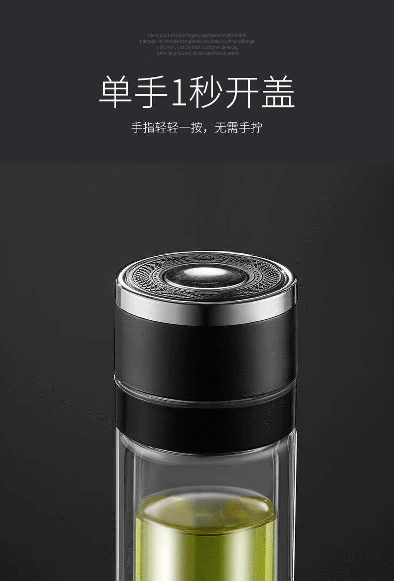 GERTHRON德国一键开盖双层玻璃杯男女士水杯2026新款车载茶水分离泡茶杯 双层加厚绅士黑【赠杯套+杯刷】 500ml