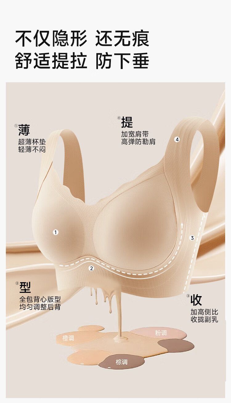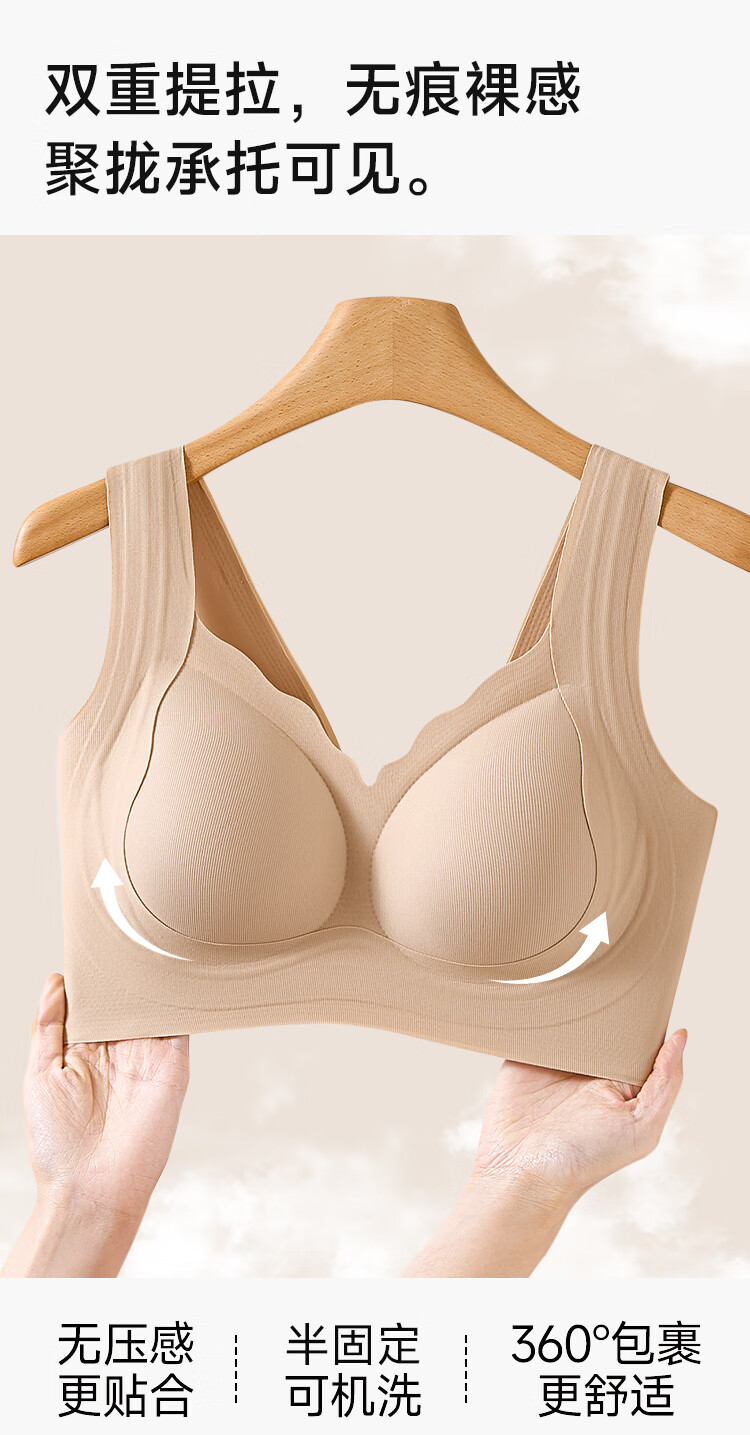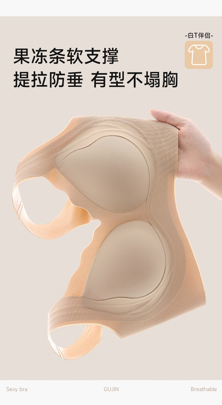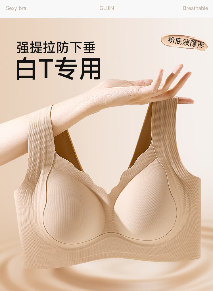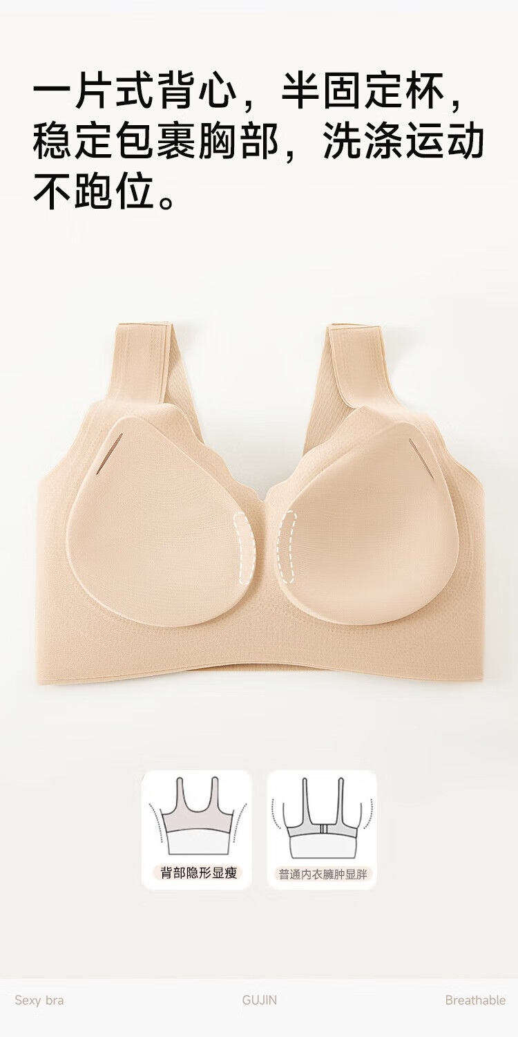 古今(GUJIN)内衣女10A级抑菌收副乳提拉防下垂聚拢女士文胸罩无痕无钢圈薄款 黑色 (10A级抑菌) M 【推荐体重80-100斤】