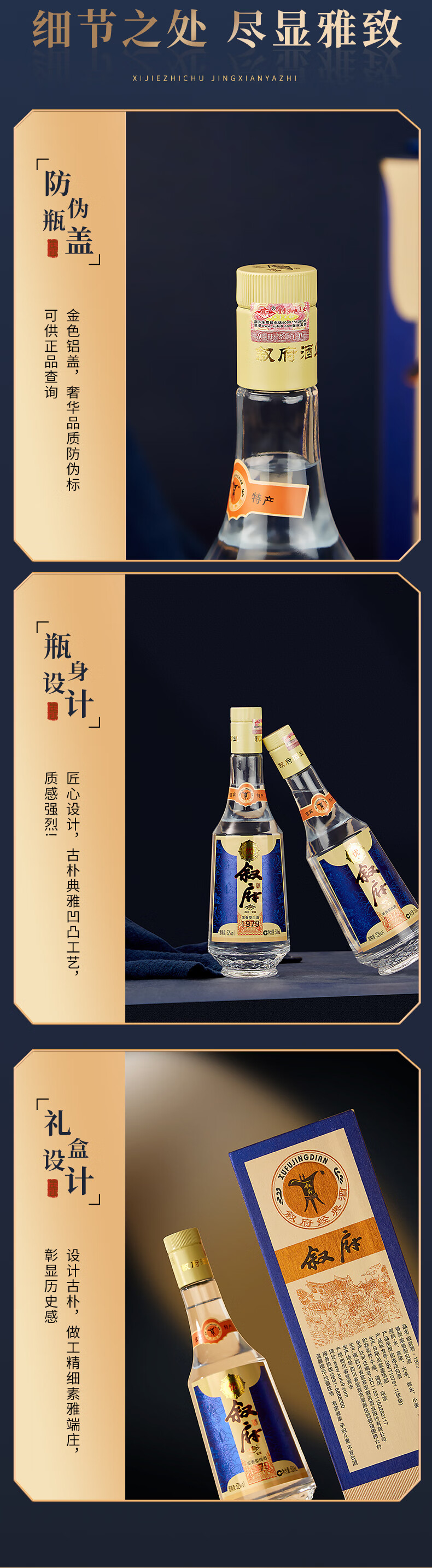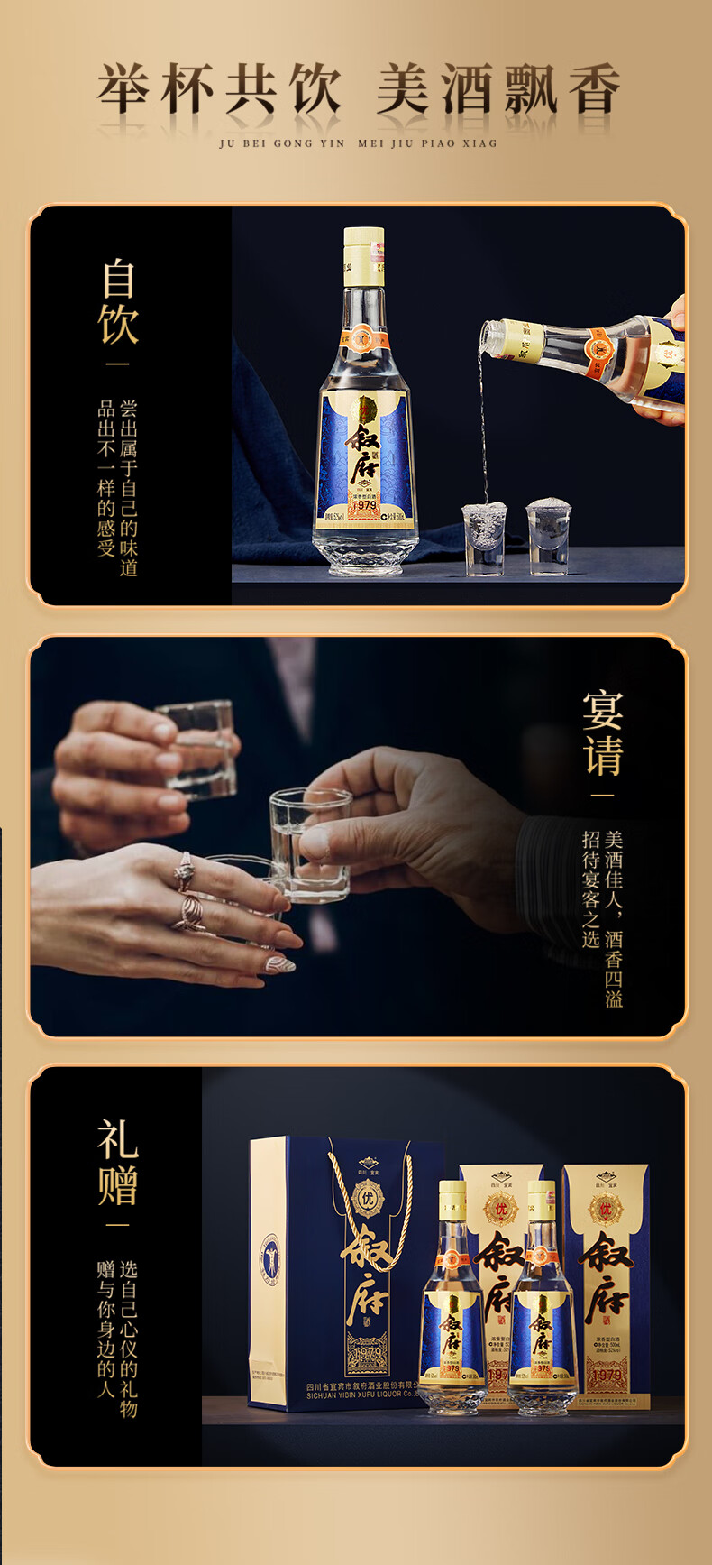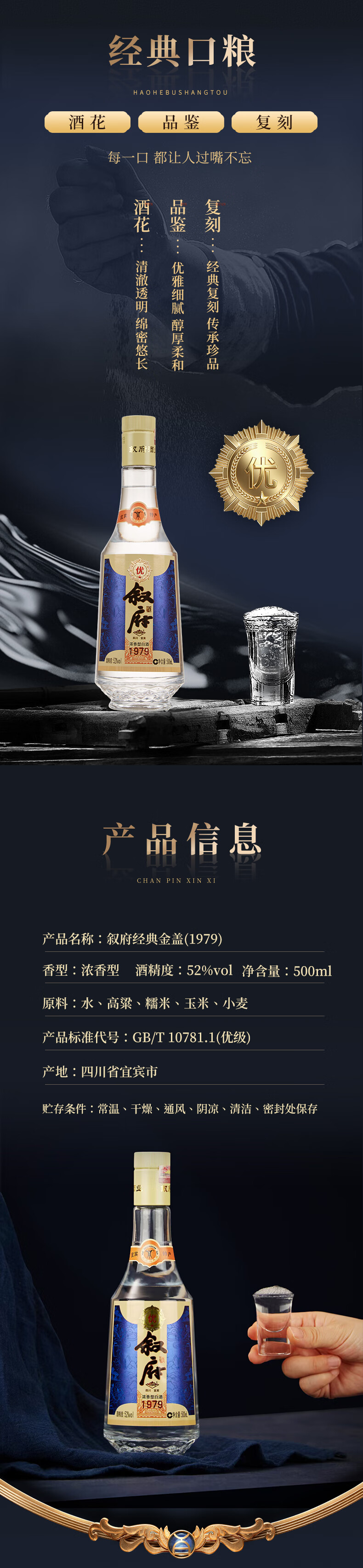 叙府经典金盖1979 52度浓香型白酒纯粮食四川口粮酒送礼 52度 500mL 1瓶