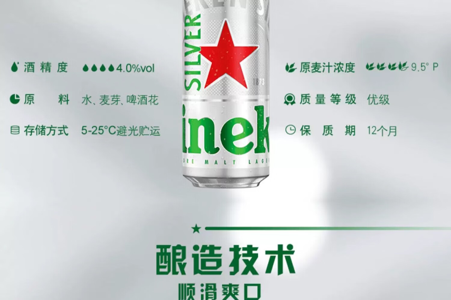 喜力星银silver500mL罐箱装囤货聚会全麦酿造啤酒瓶清爽饮料 中秋送礼 500mL 12罐