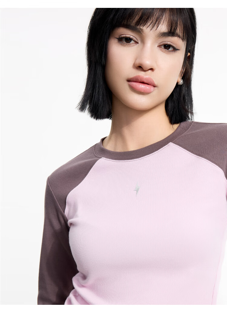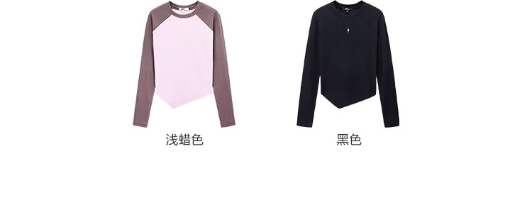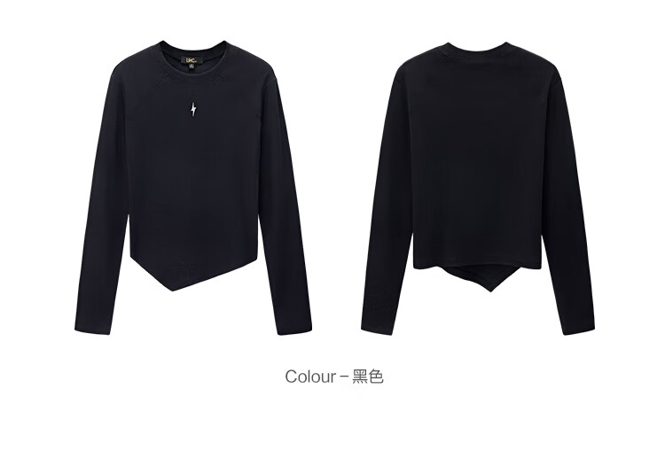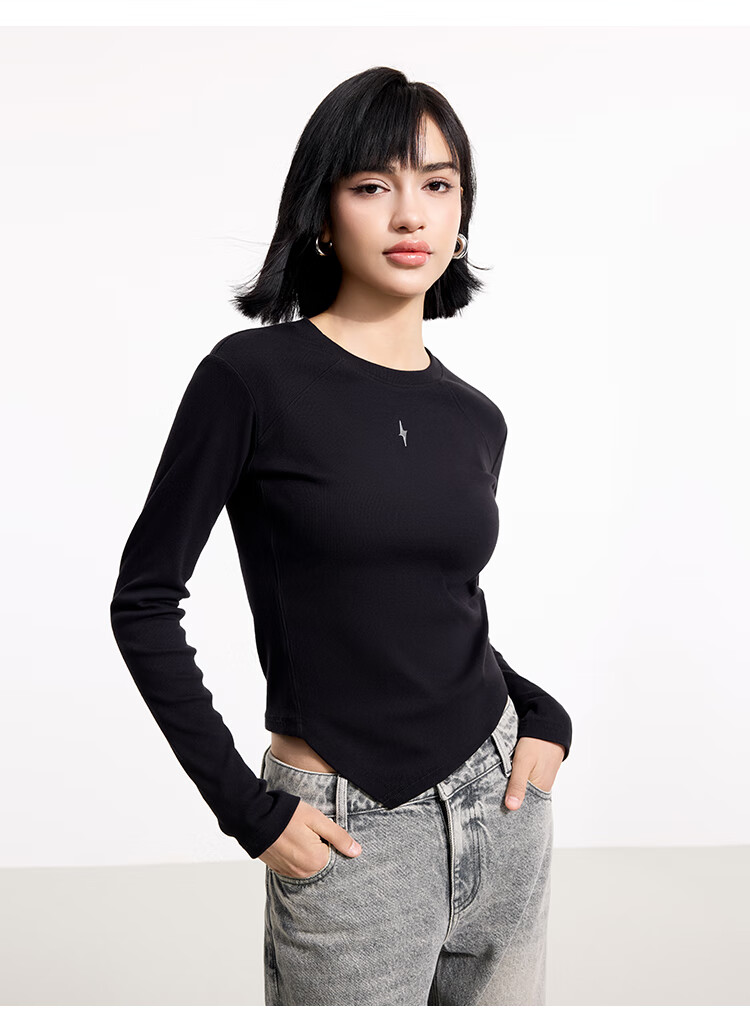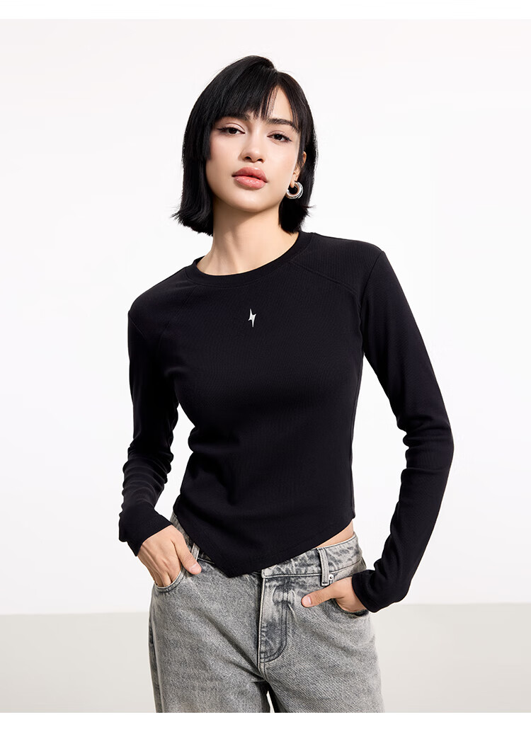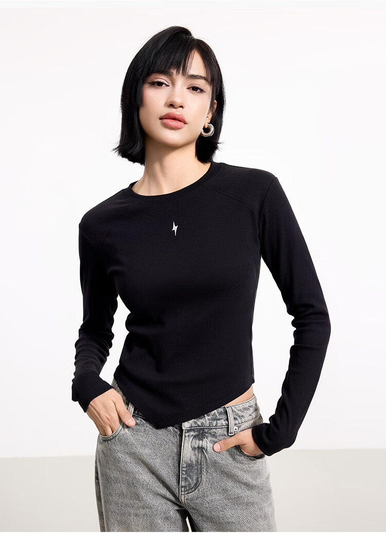 金羽杰2025年春季新品修身圆领长袖T恤女短款轻薄款内搭上衣S251FK019Y 黑色 S 适合95斤以下