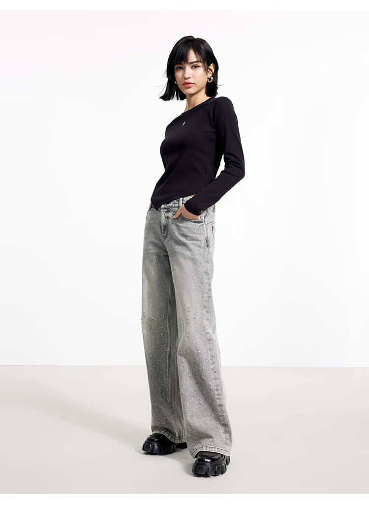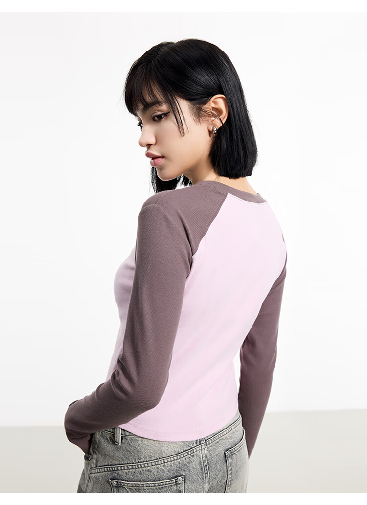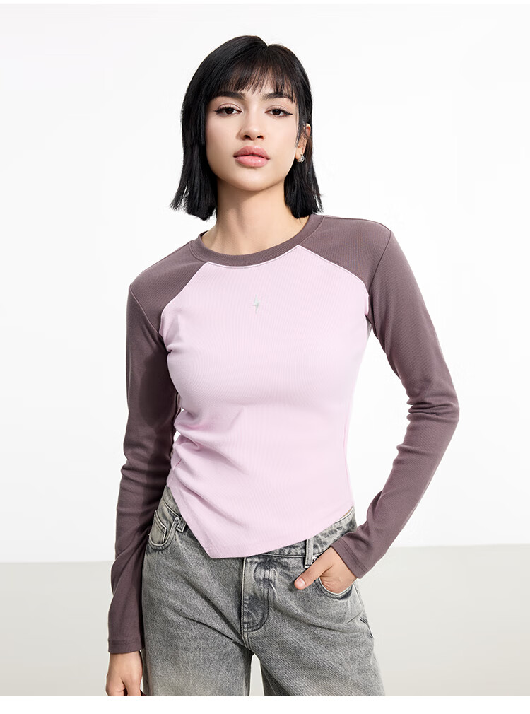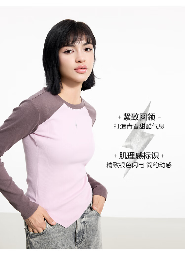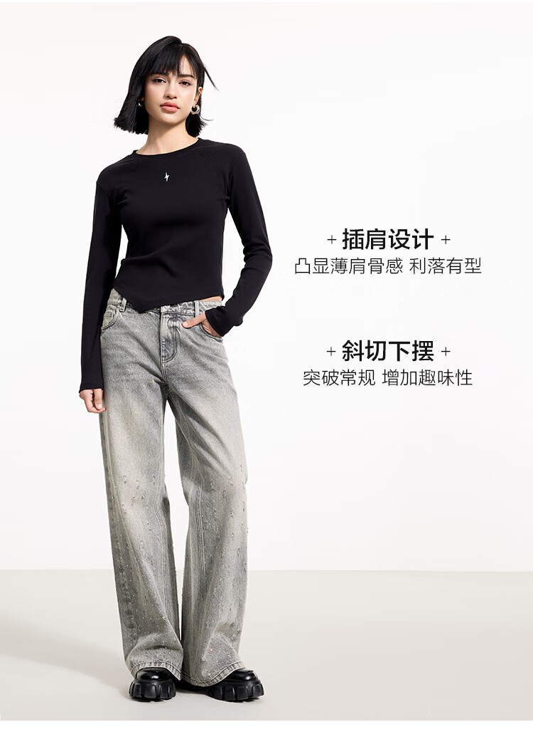 金羽杰2025年春季新品修身圆领长袖T恤女短款轻薄款内搭上衣S251FK019Y 黑色 S 适合95斤以下
