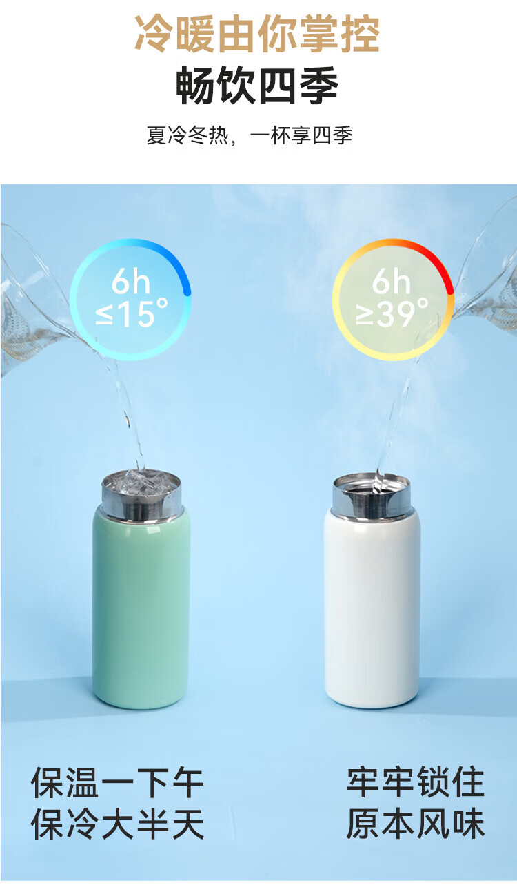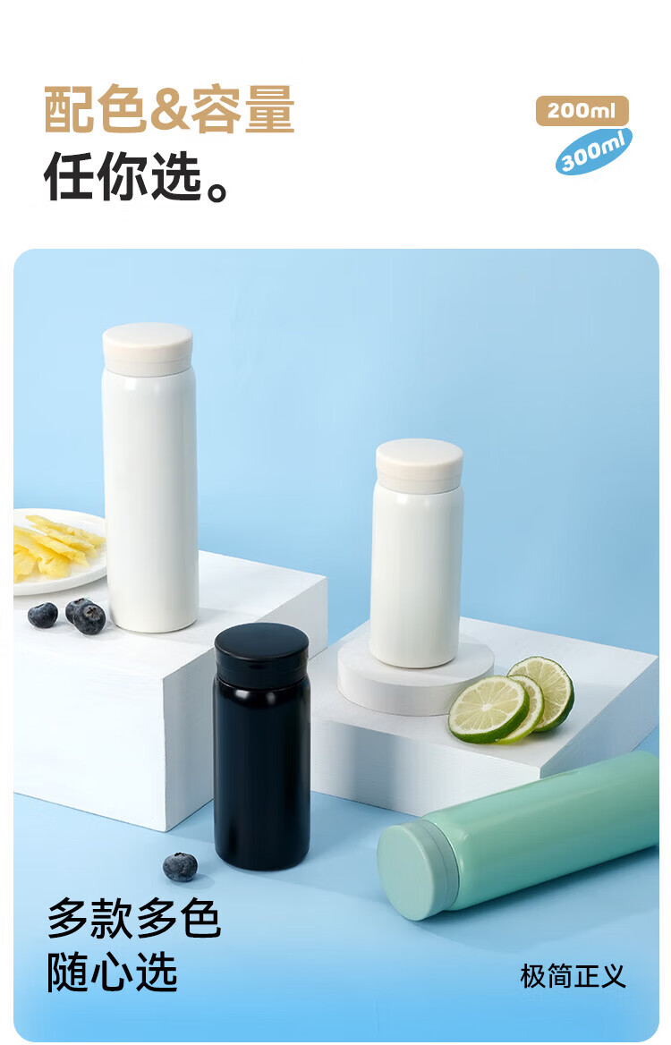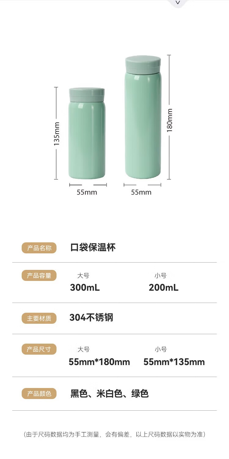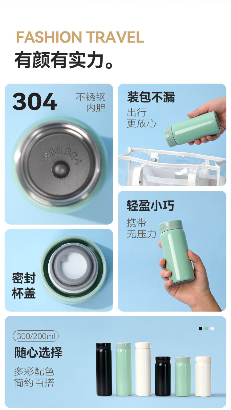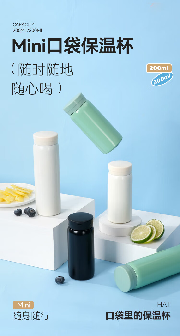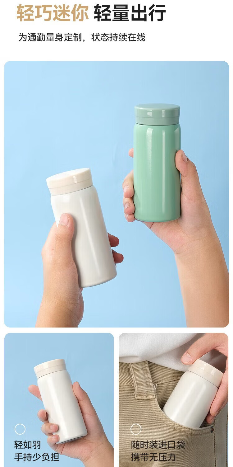 保温杯高颜值迷你便携户外304不锈钢口袋杯学生儿童男女士水杯子 白色-200ML