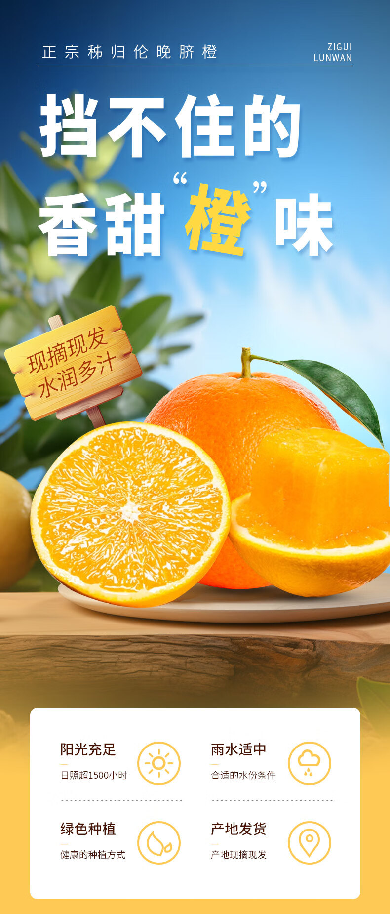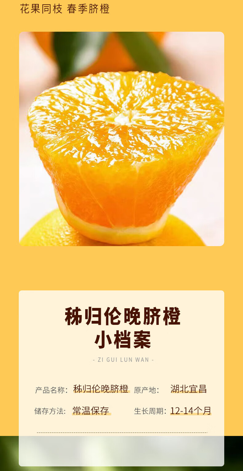 秭归脐橙春橙伦晚 当季时令生鲜水果湖北特产橙子孕妇儿童伦晚甜橙彩箱 【普箱】净重9斤65mm+ 控量推荐