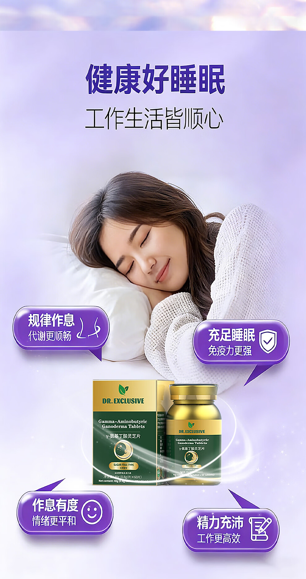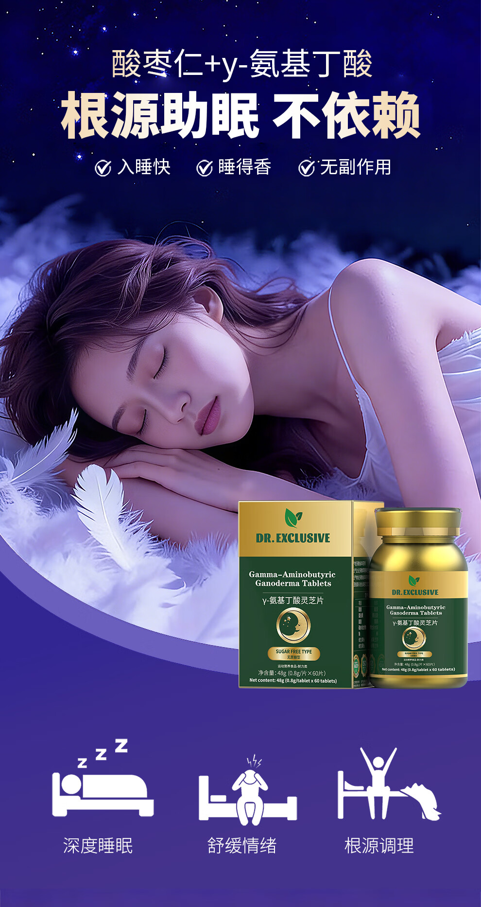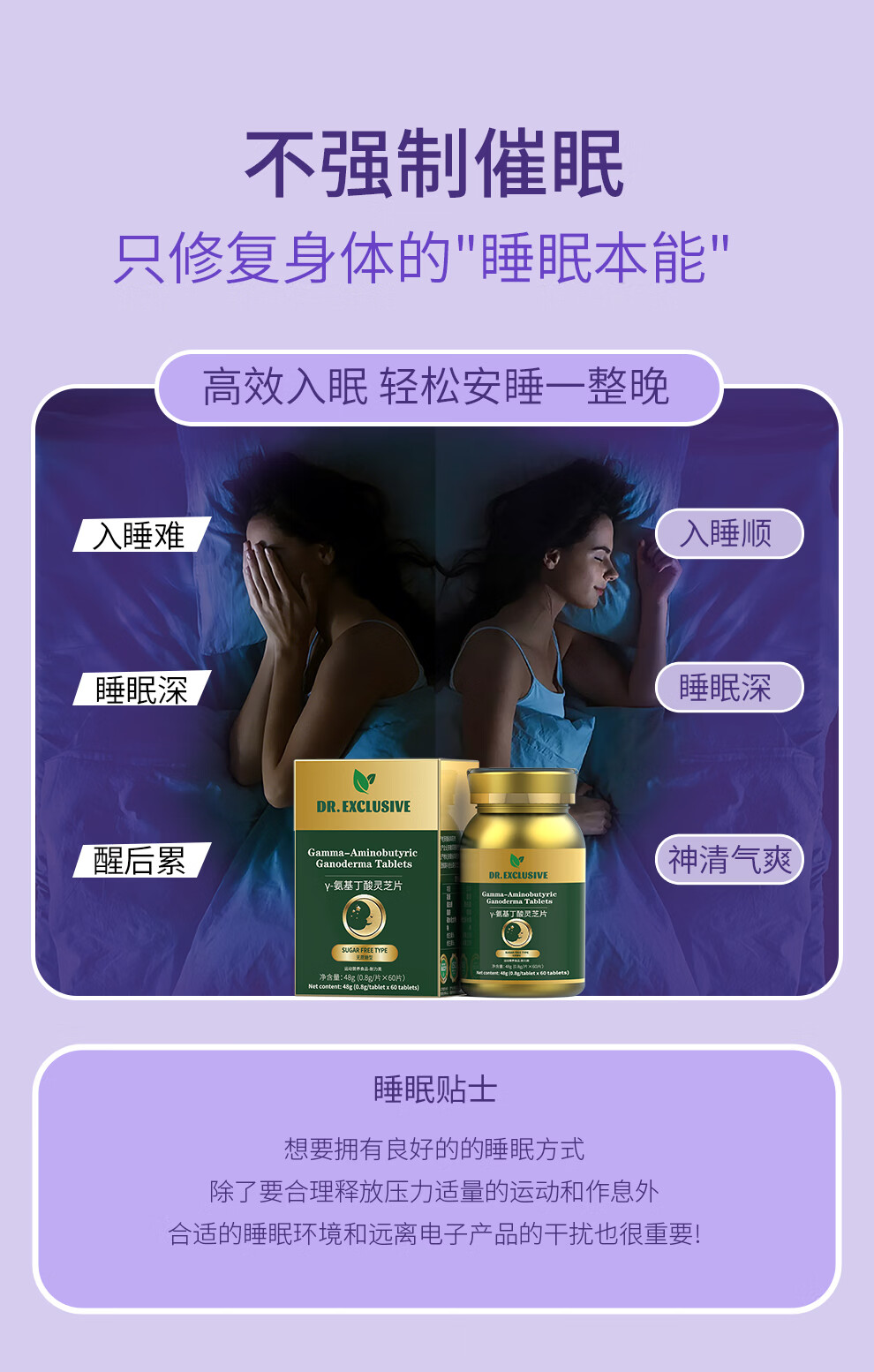 DR.EXCLUSIVE酸枣仁茯苓睡眠伏湿片灵芝维生素b1b2营养品中药植萃提高睡眠质量 中度睡眠调理套装【60天用量】 120片*2瓶