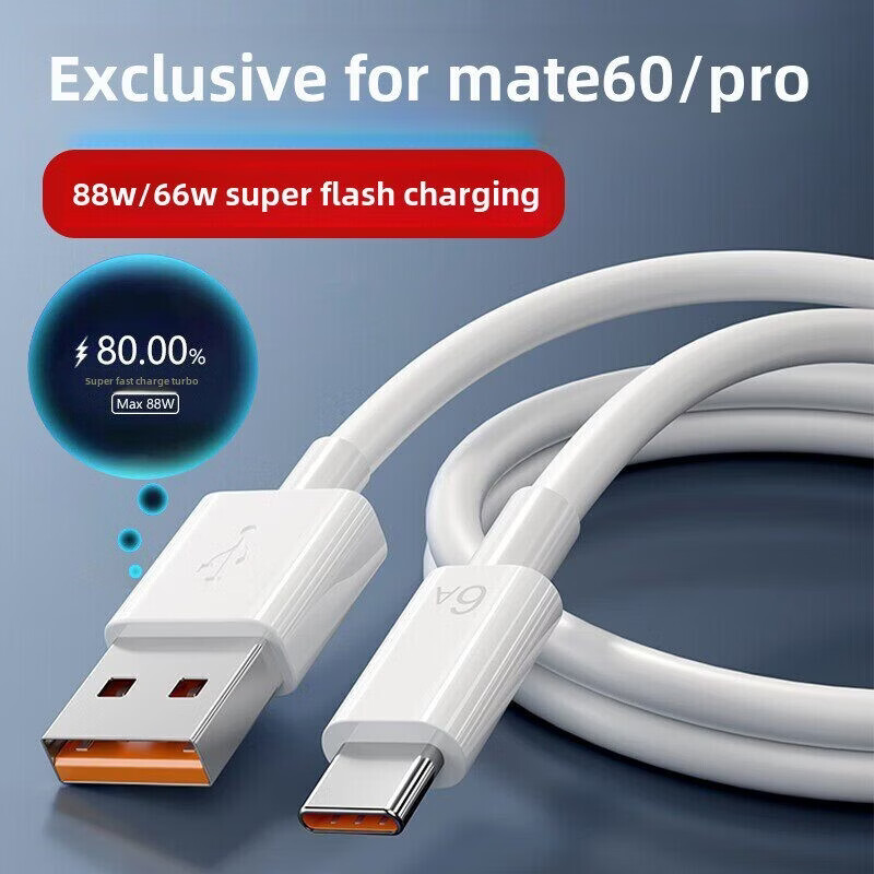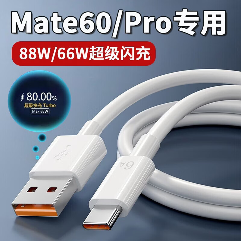 华为适用于华为Mate60Pro数据线88W快充Mate60Pro+ Mate60手机充电线66W w闪充6A快充线 华为88w充电头1个