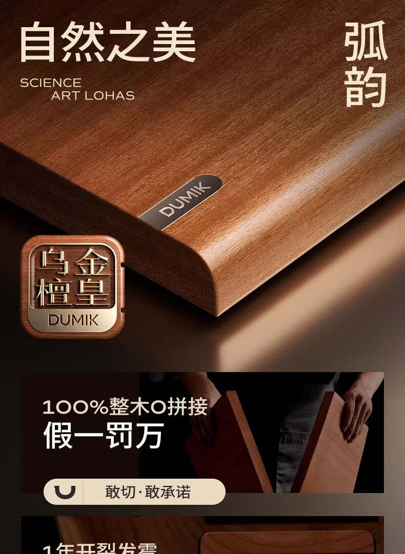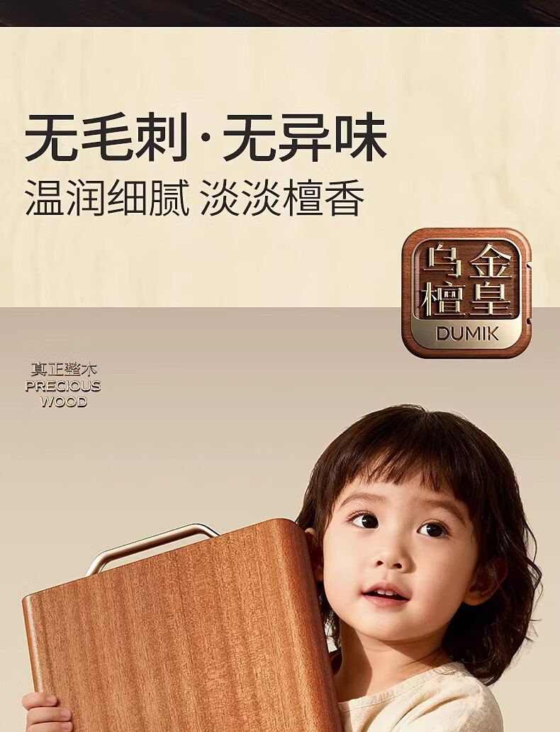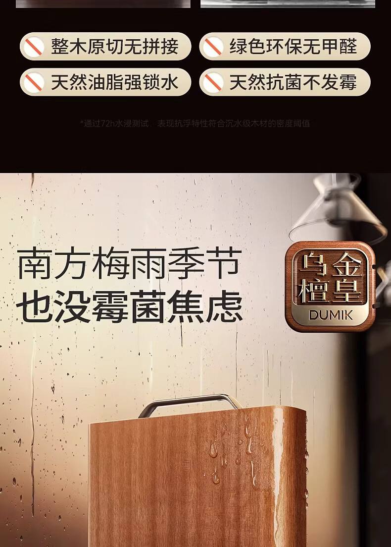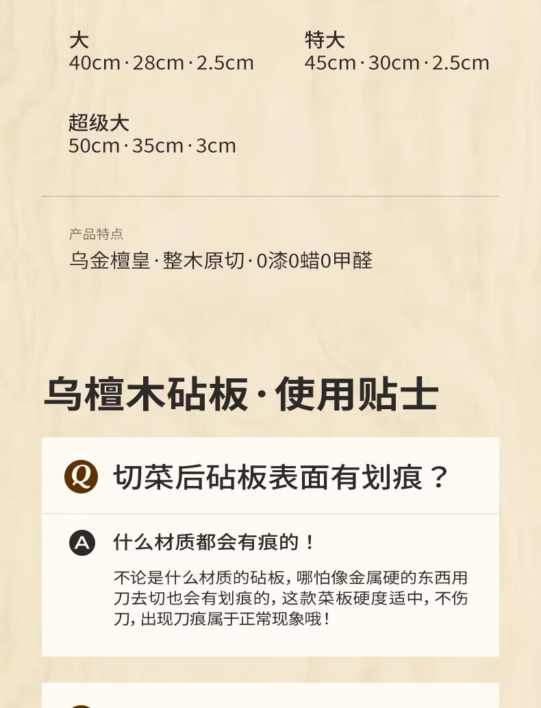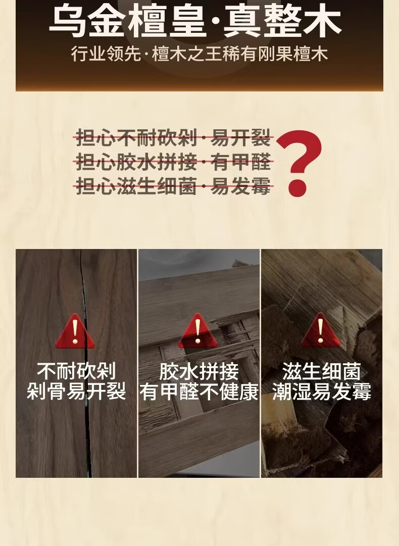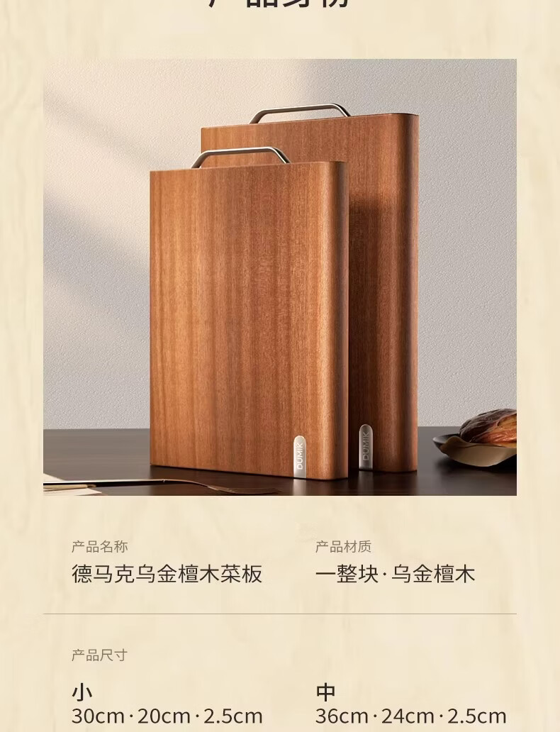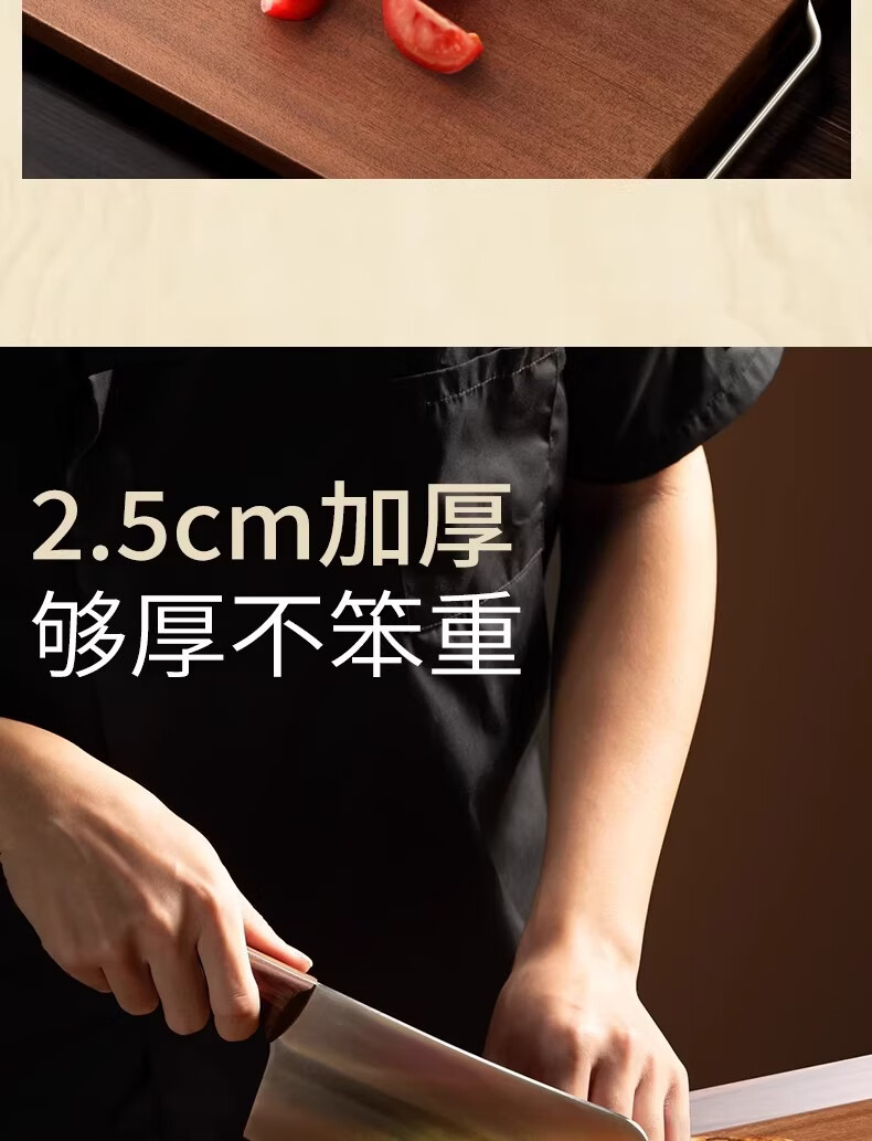 AILUKI日本菜板抗菌防霉家用食品级整木实木乌金檀木切菜板厨房专用砧板 【进口整木乌金檀】耐砍抗菌 双面适用2-4人中号