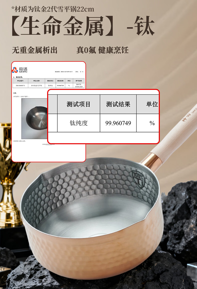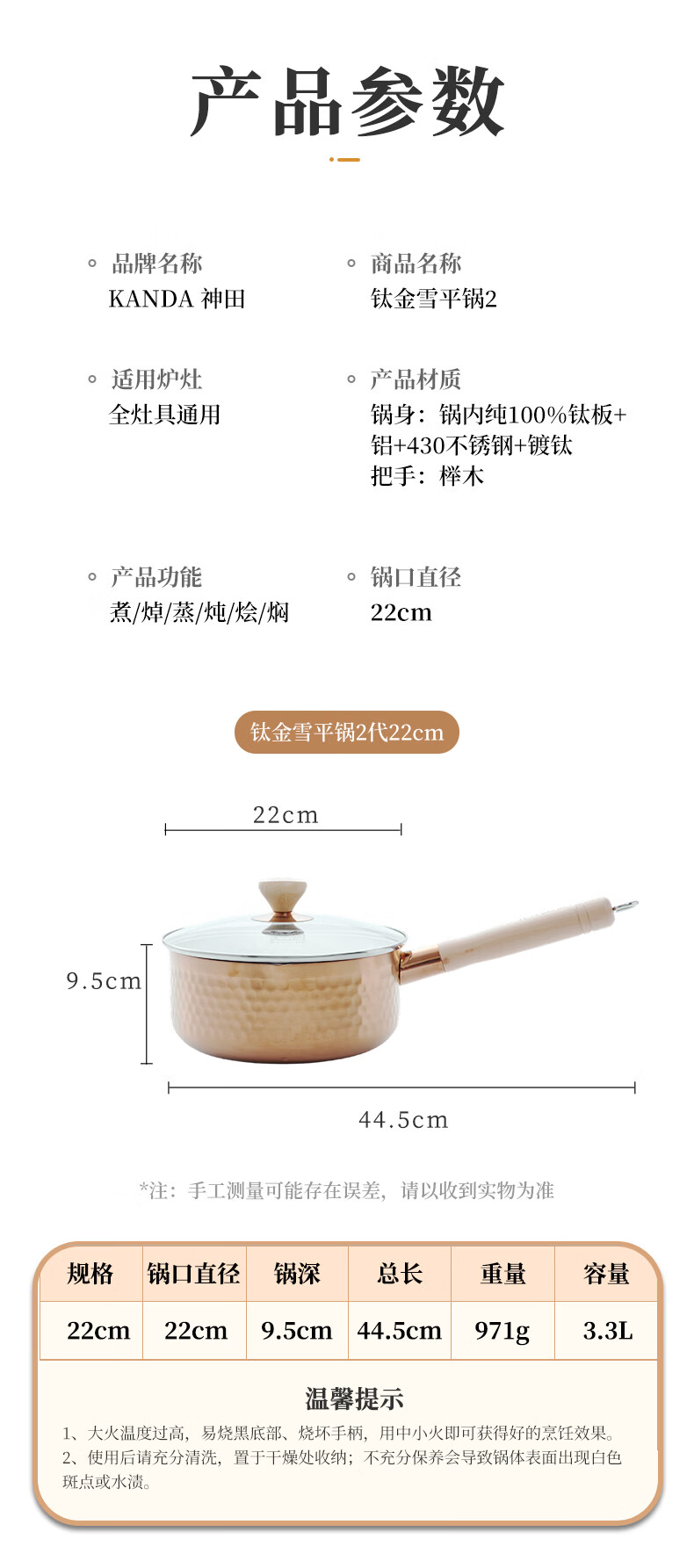 神田钛金雪平锅不锈钢锅小奶锅牛奶锅煮面锅泡面锅宝宝婴儿辅食锅汤锅 钛金雪平锅(含盖+蒸格) 18cm