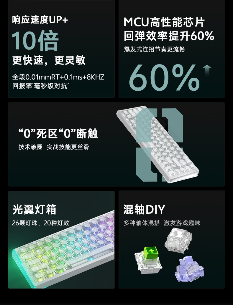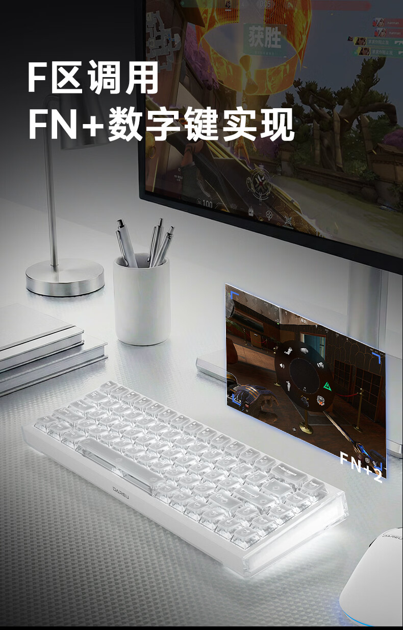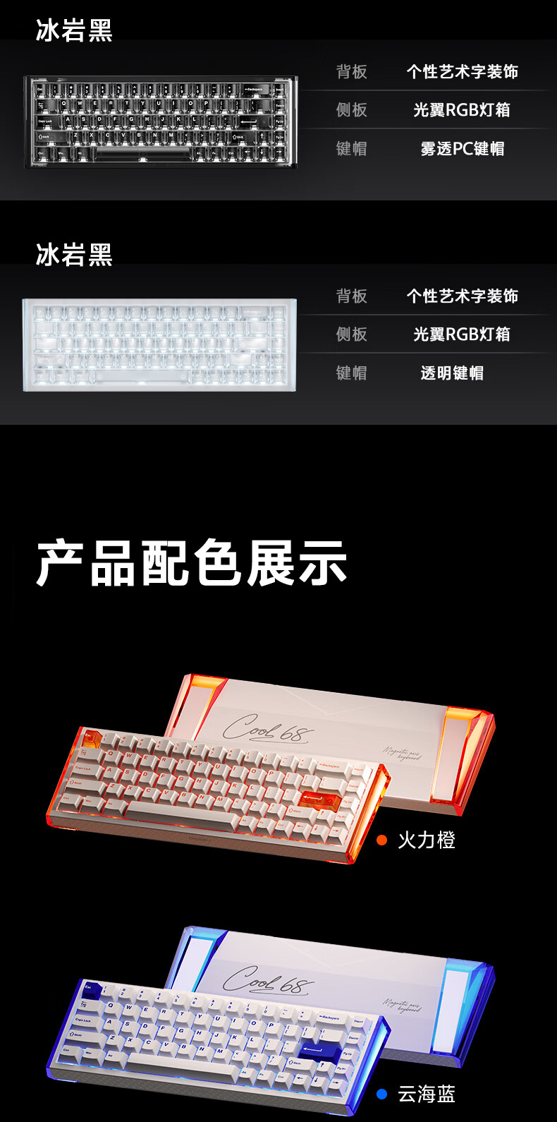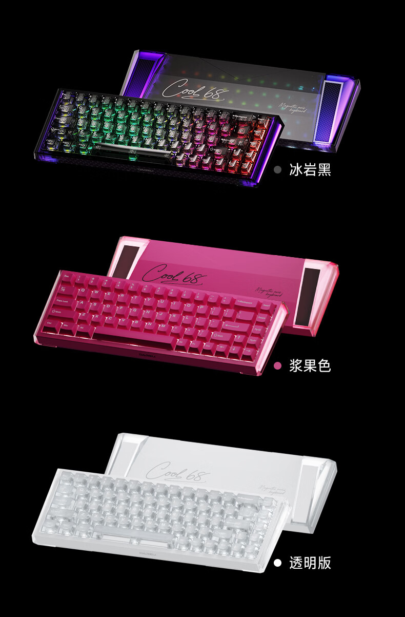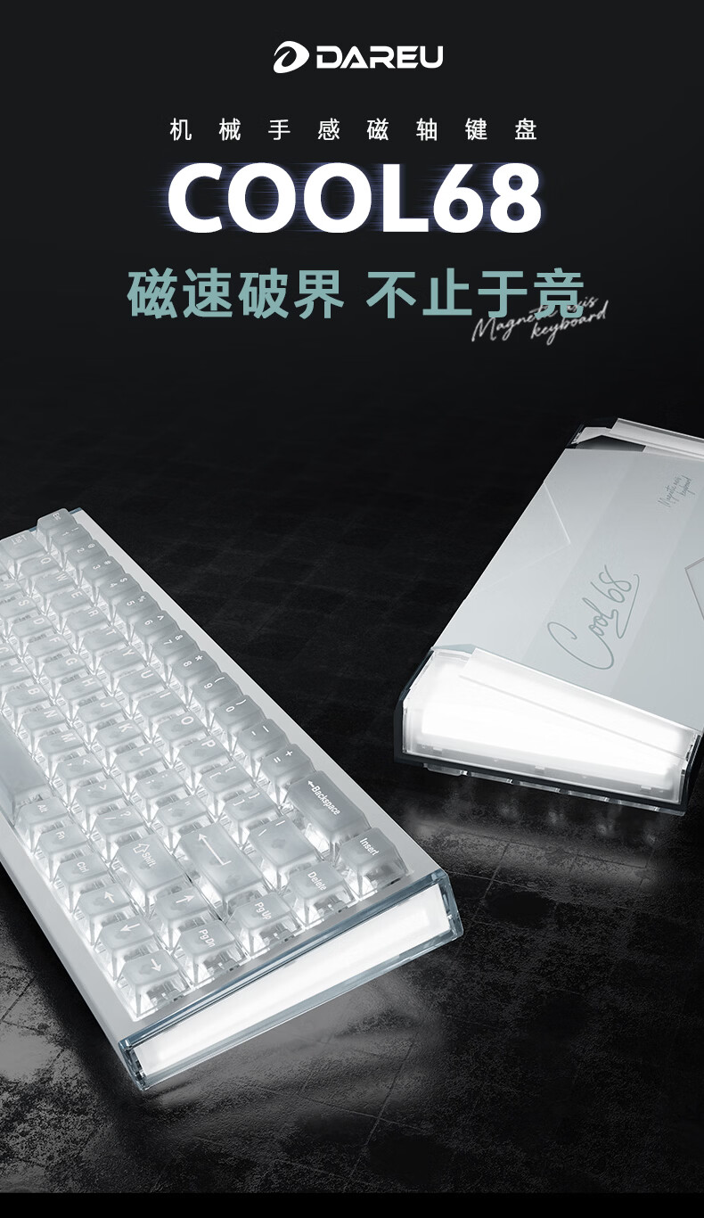 达尔优Cool68 磁轴电竞游戏机械键盘 客制化有线侧翼灯光透明键盘三角洲 无畏契约FPS网页双驱动炫酷灯箱 【挥毫落墨】冰刃轴