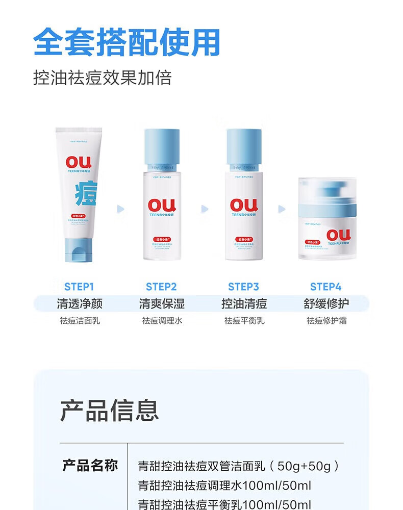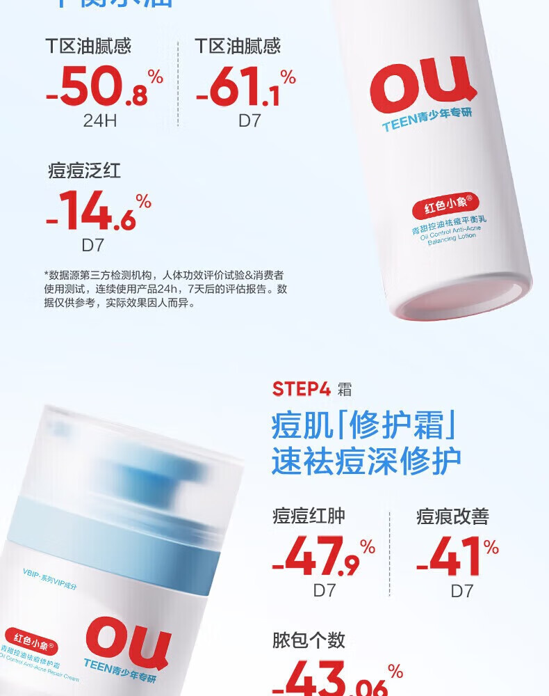 红色小象青少年护肤套装洗面奶面霜水乳男女孩青春期学生清洁控油祛痘洗护 【青少年专研】2件套水50ml+乳50ml