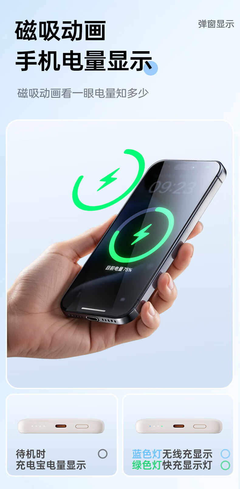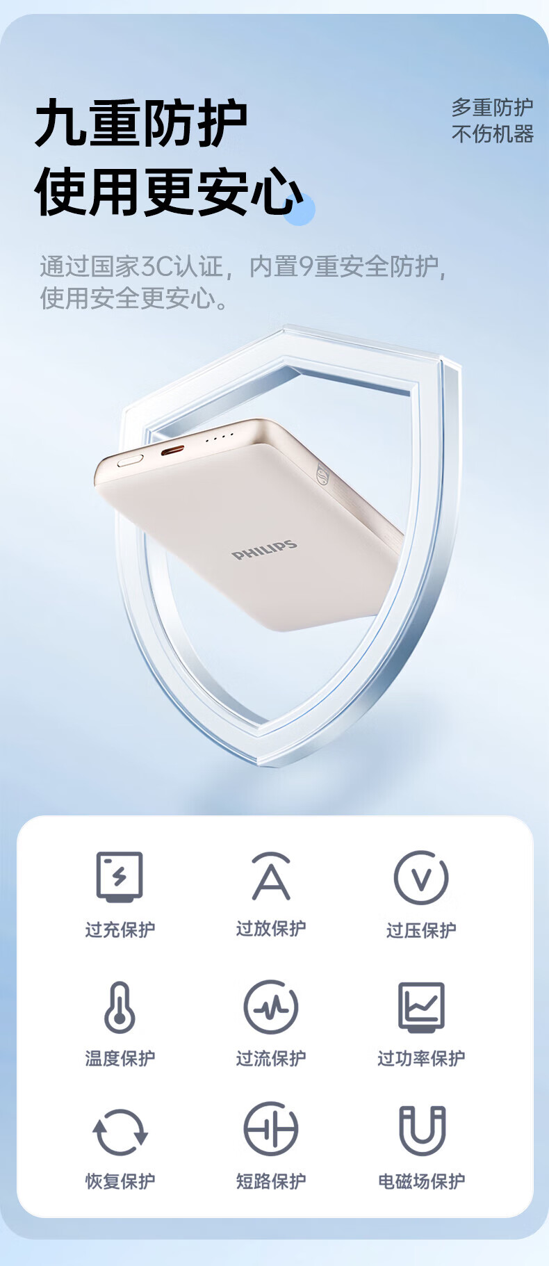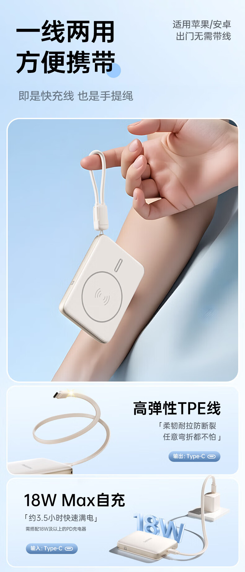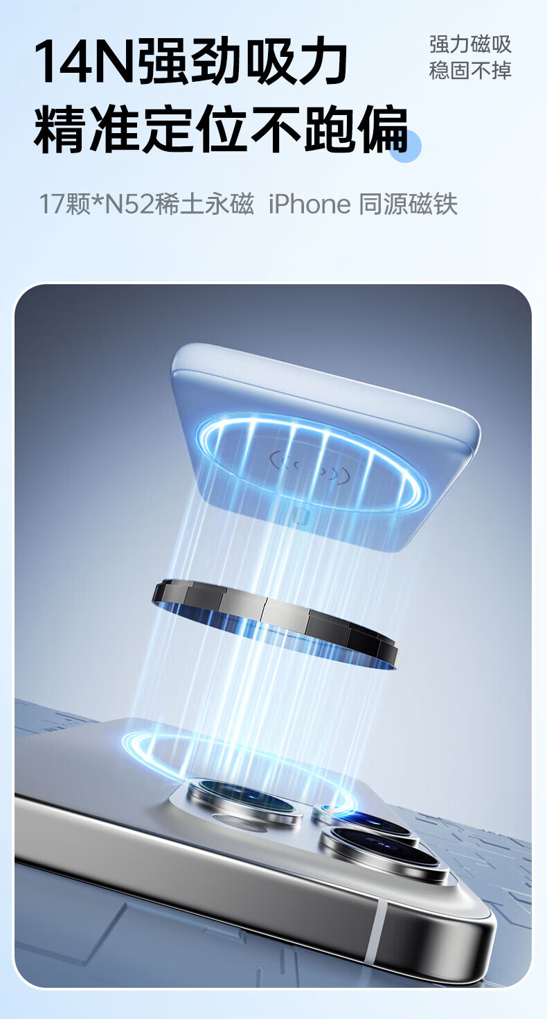 飞利浦(PHILIPS)无线磁吸充电宝一万毫安DLP9220自带线 3c认证手机移动电源快充超薄小巧便携迷你大容量 DLP9221【双线PD手机快充20W】 暗夜黑