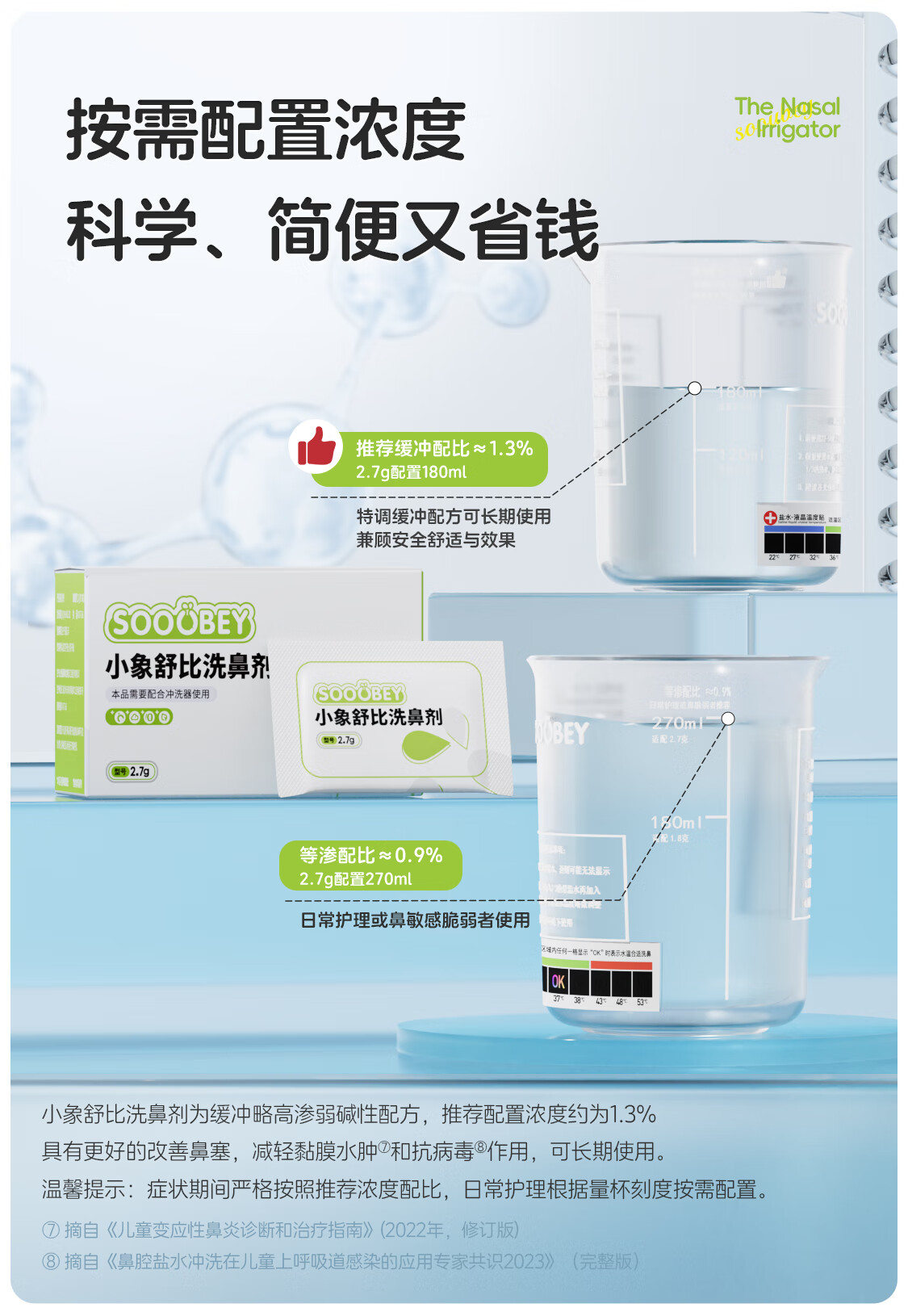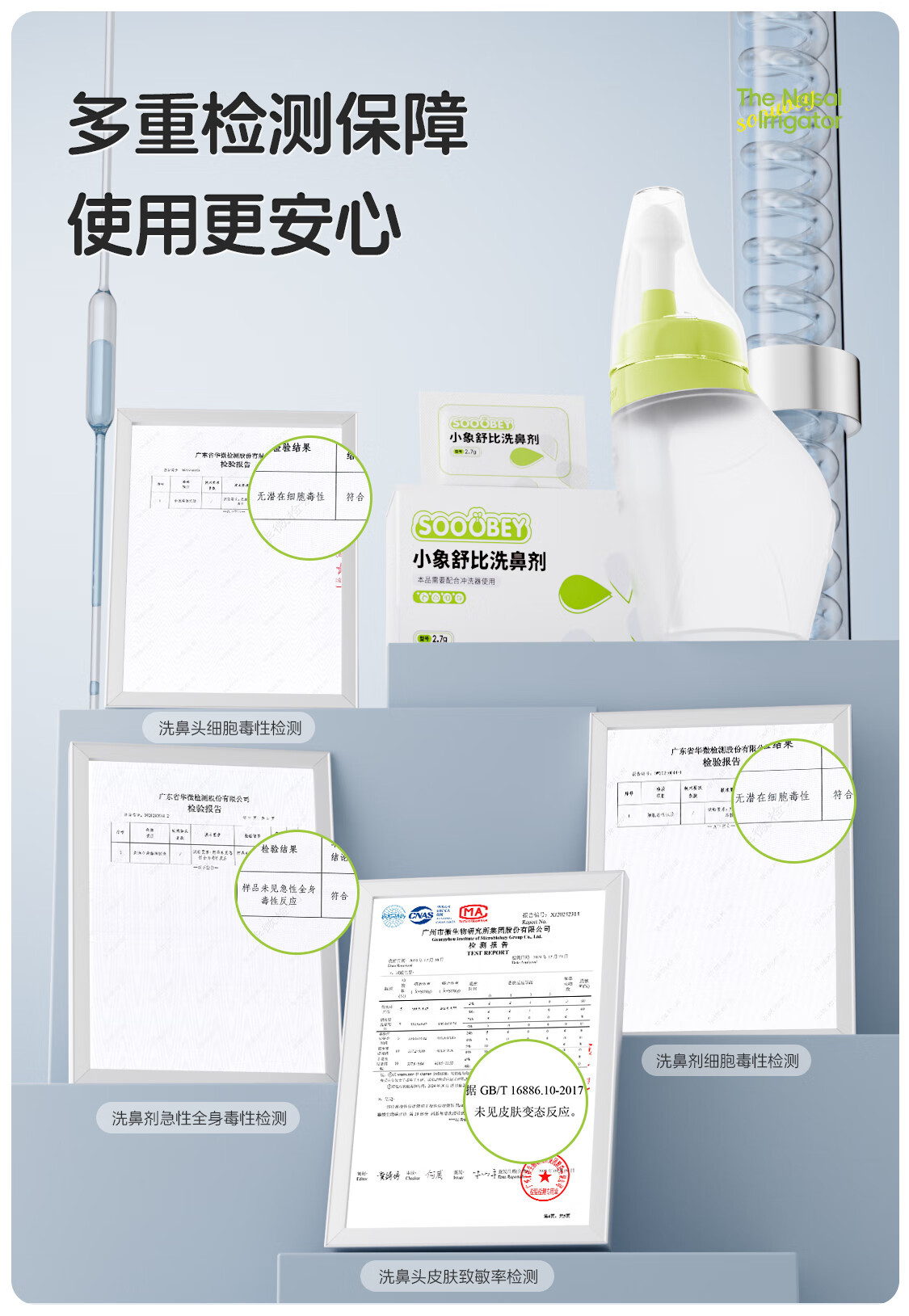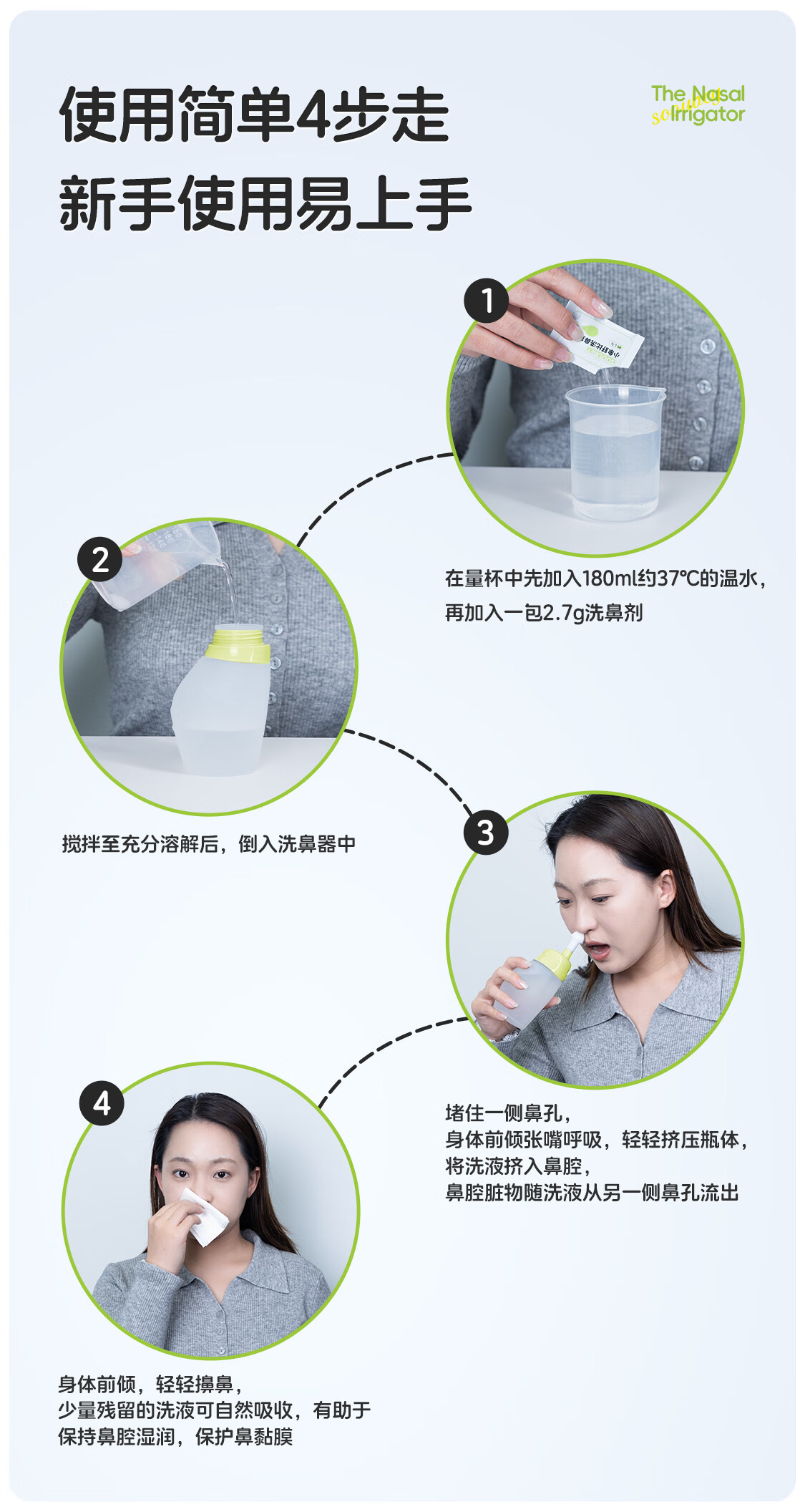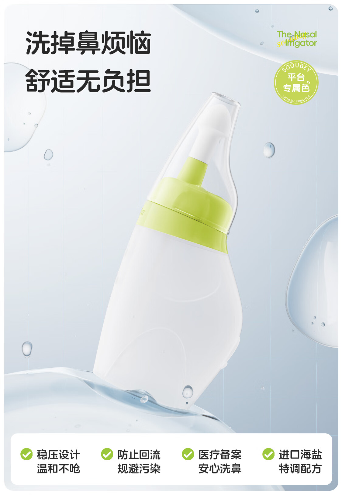 小象舒比洗鼻器儿童鼻炎医用成人鼻腔冲洗器家用手动洗鼻壶洗鼻盐生理盐水 【新品生机绿体验】180ml洗鼻器+10袋洗鼻剂