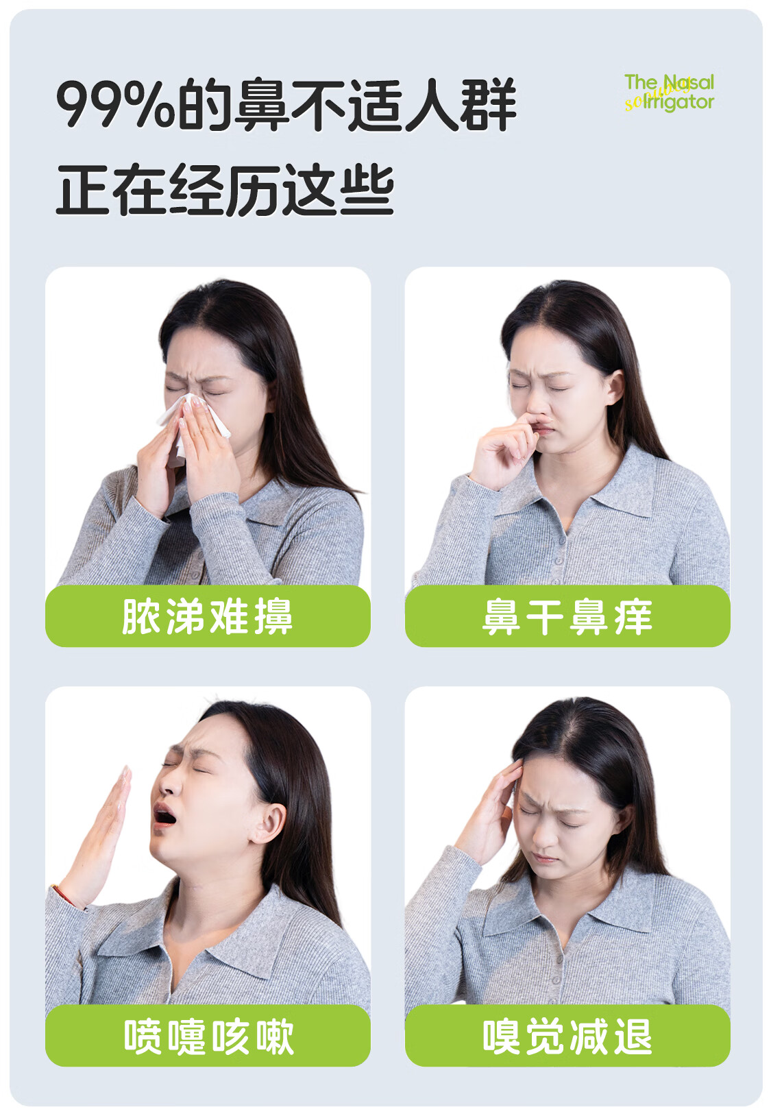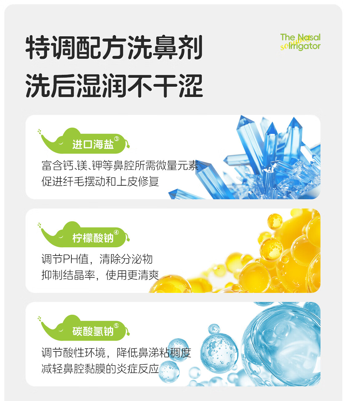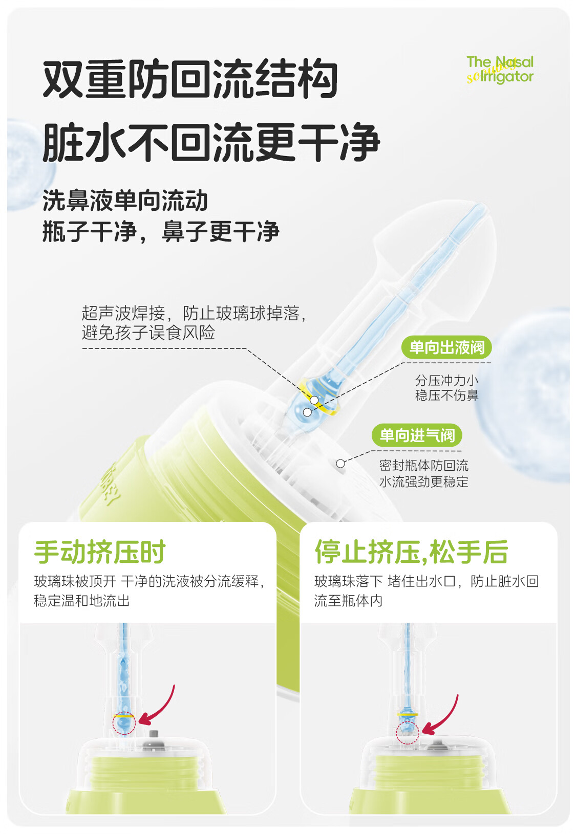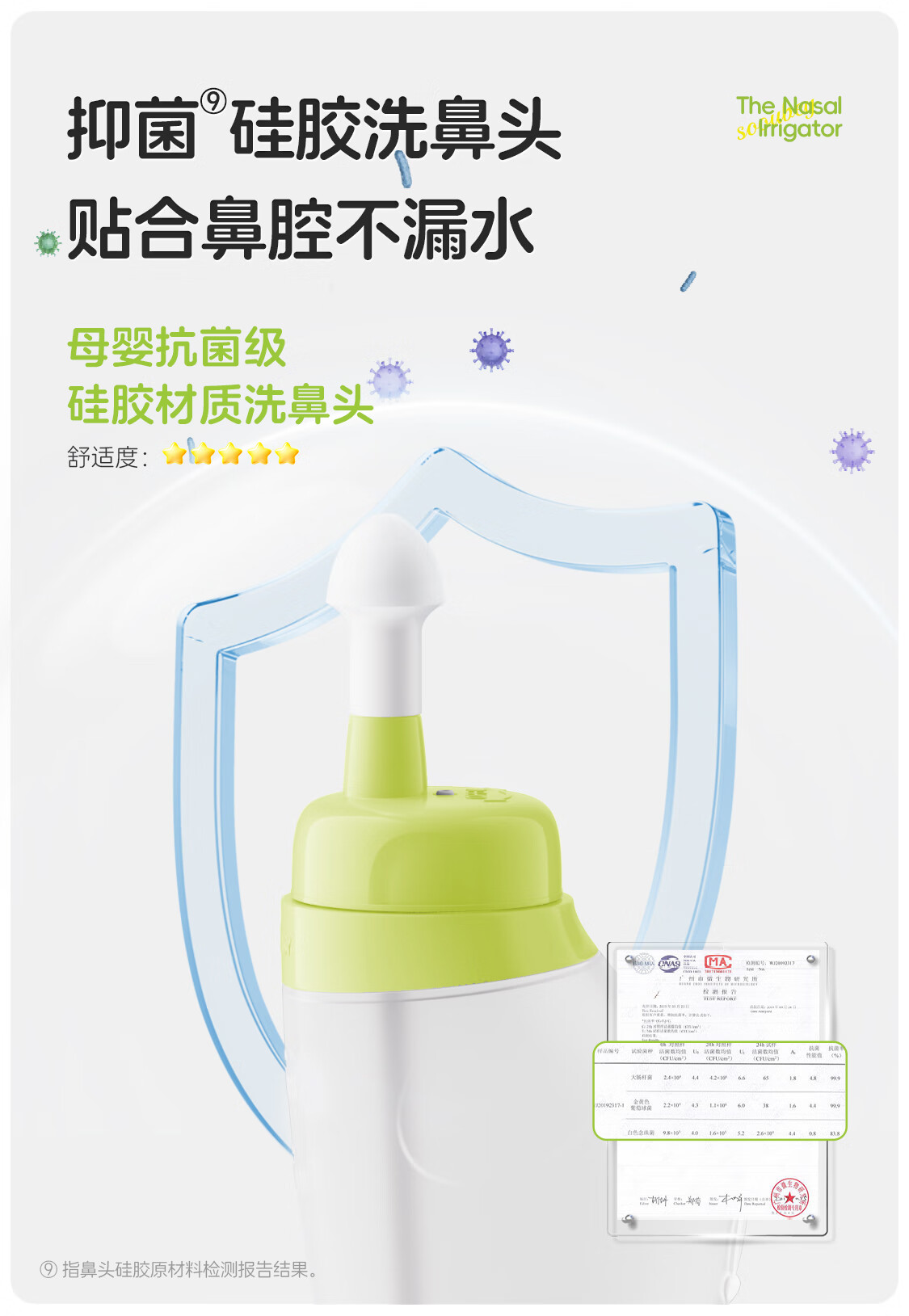 小象舒比洗鼻器儿童鼻炎医用成人鼻腔冲洗器家用手动洗鼻壶洗鼻盐生理盐水 【新品生机绿体验】180ml洗鼻器+10袋洗鼻剂