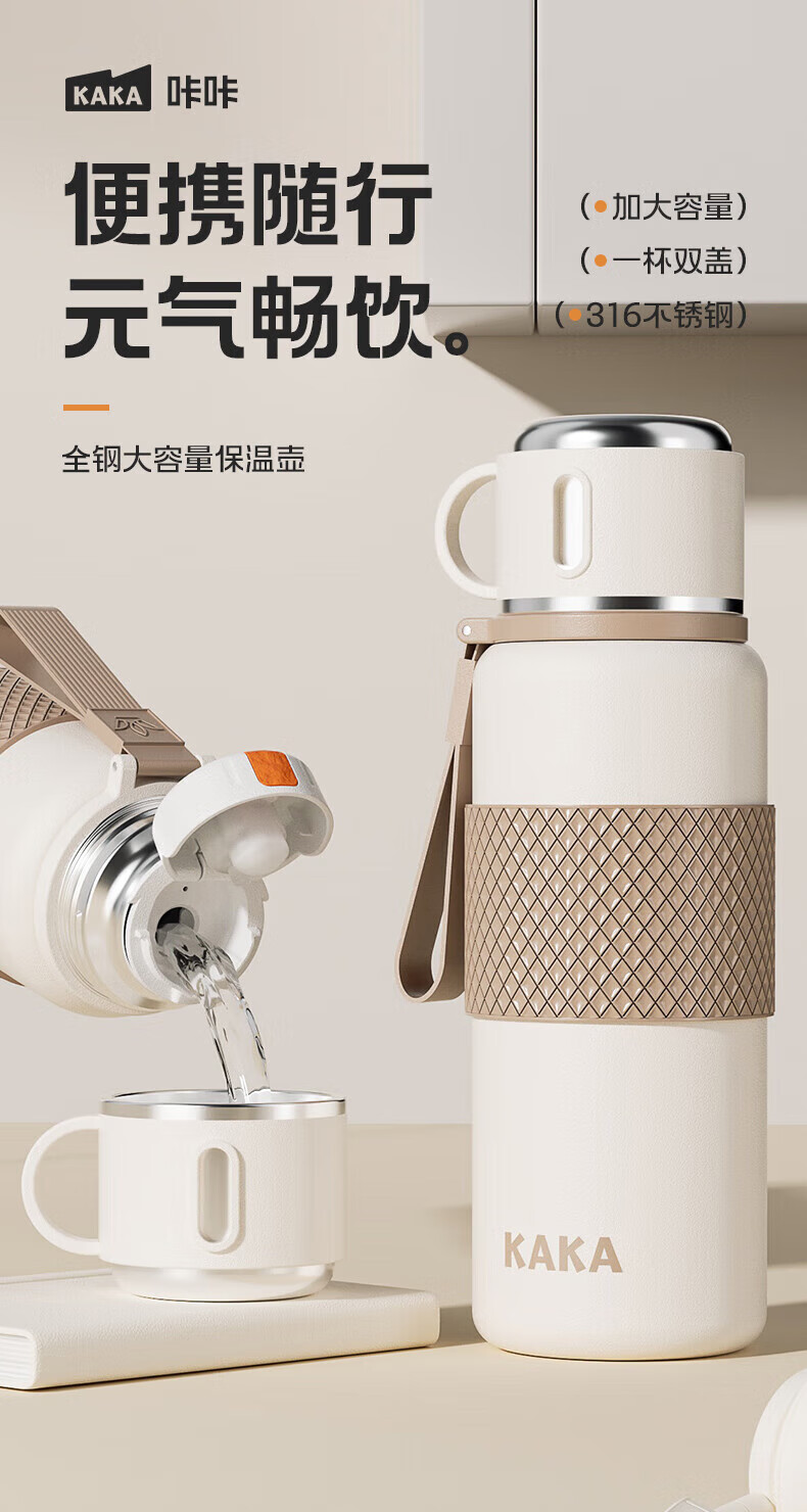 皇家洛克 ROYALLOCKE保温杯316不锈钢大容量水杯壶男女士户外保温双饮杯子 天幕白550ml