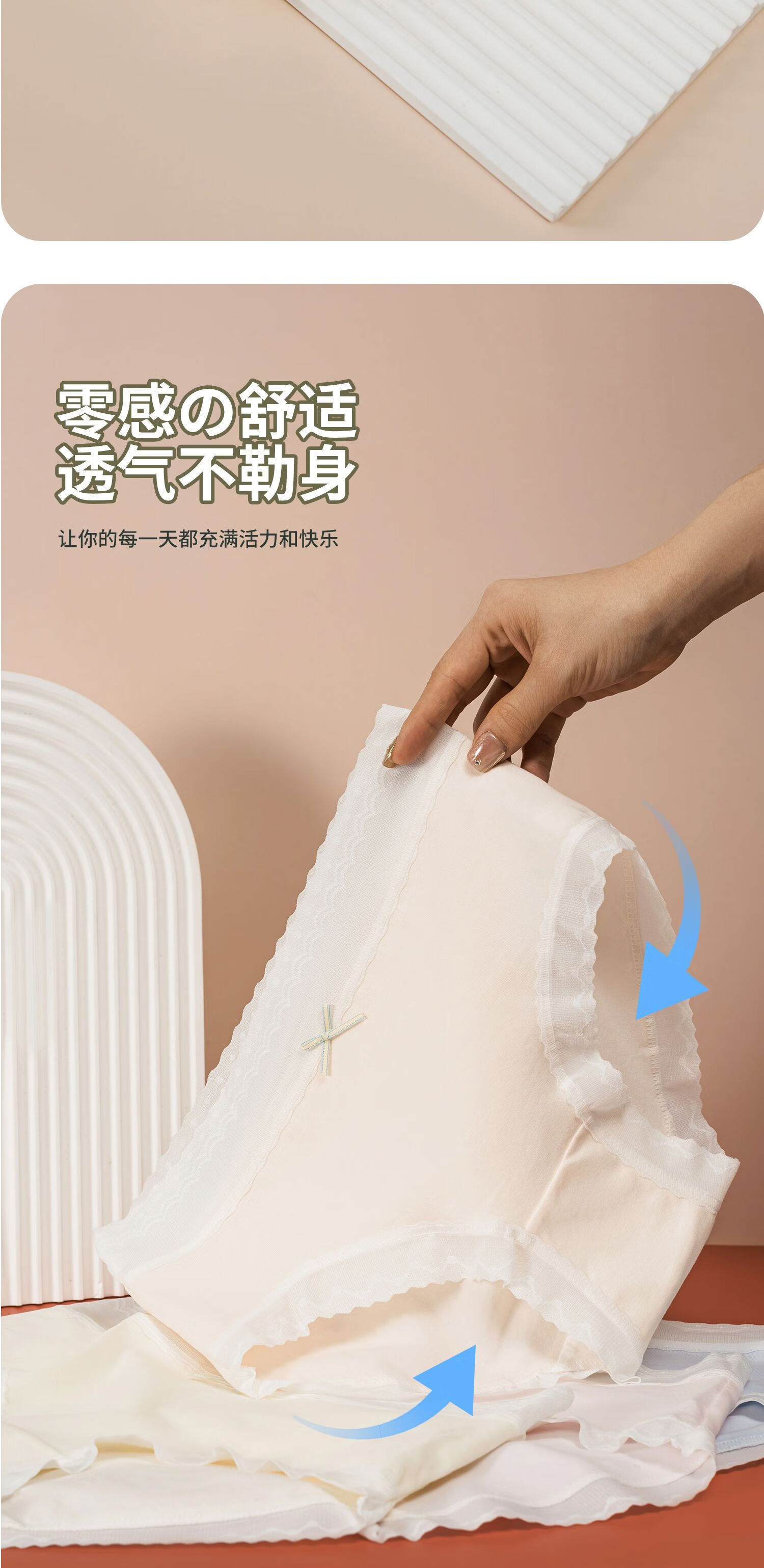 稚蝶女士全棉内裤女纯棉 7A级抗菌内裤女 蕾丝内裤 8件 颜色随机可指定颜色 8条 L 码【建议90-120斤】
