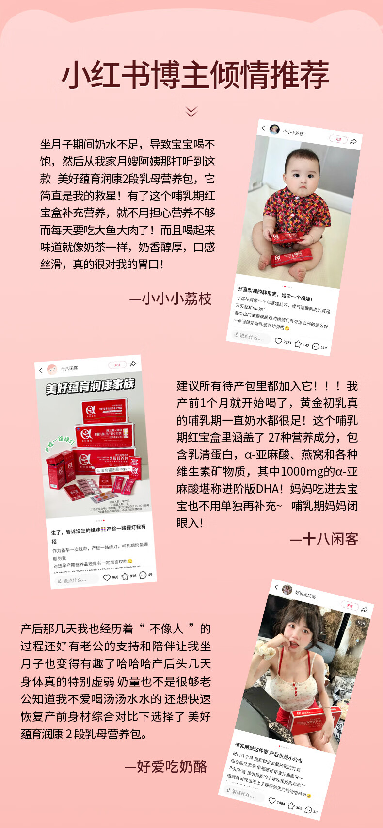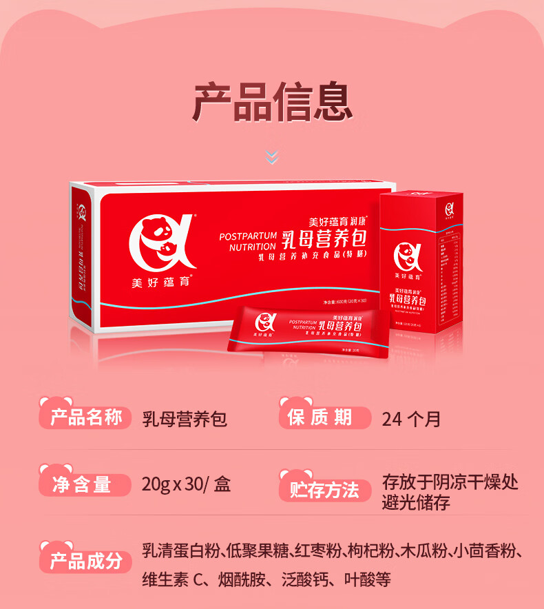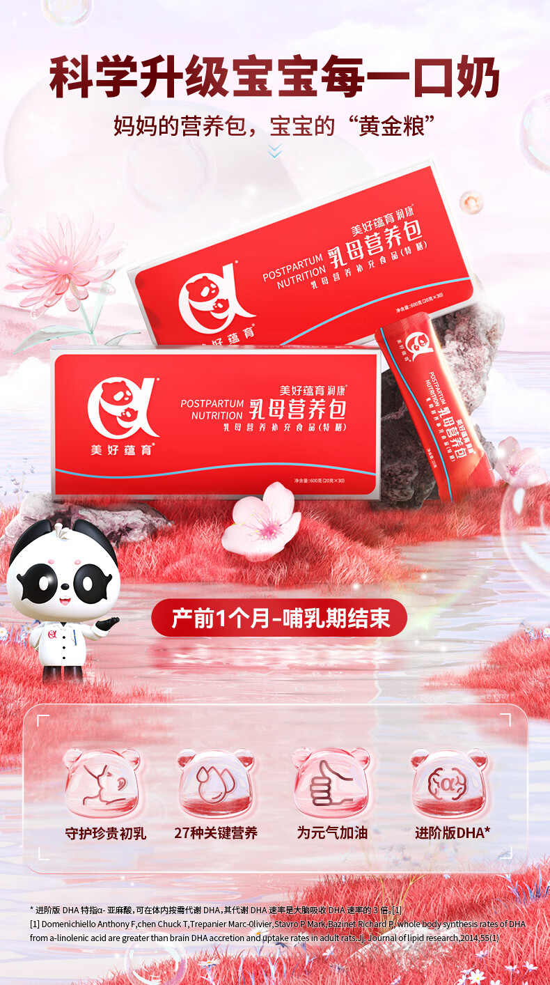美好蕴育乳母营养包润康2段哺乳期钙α亚麻酸dha妈妈母乳维生素产后营养 30天量