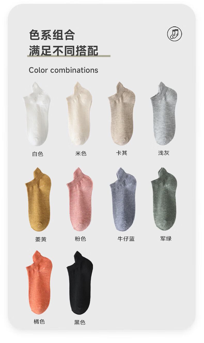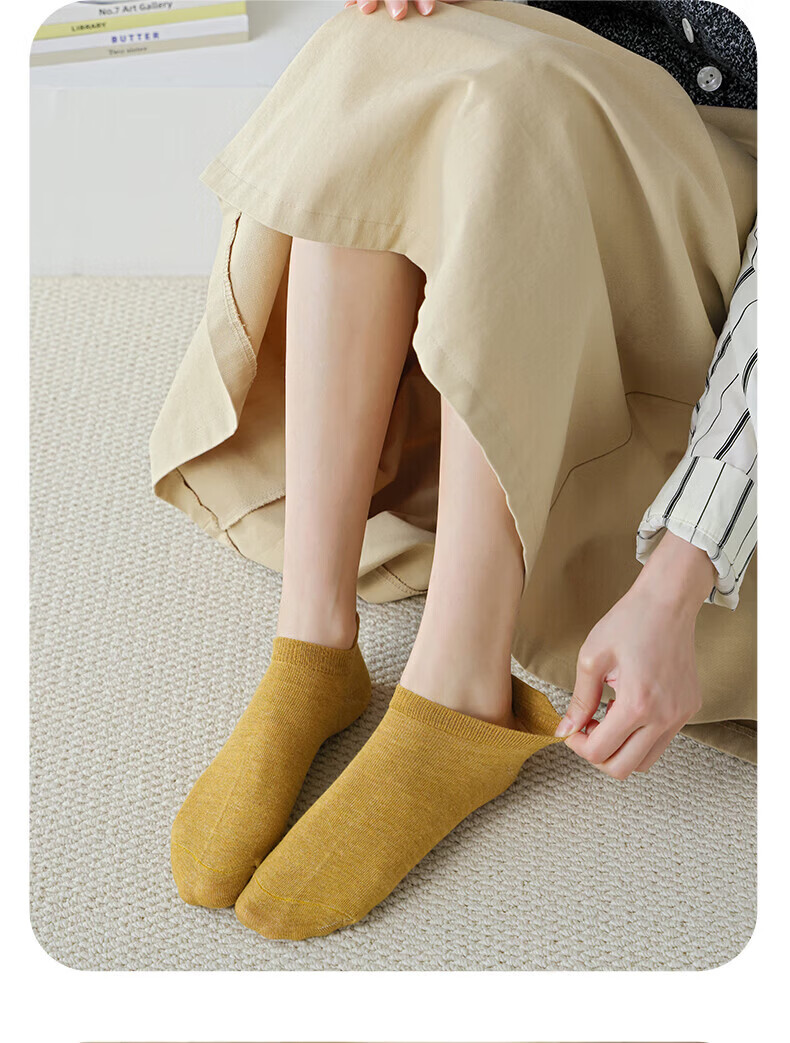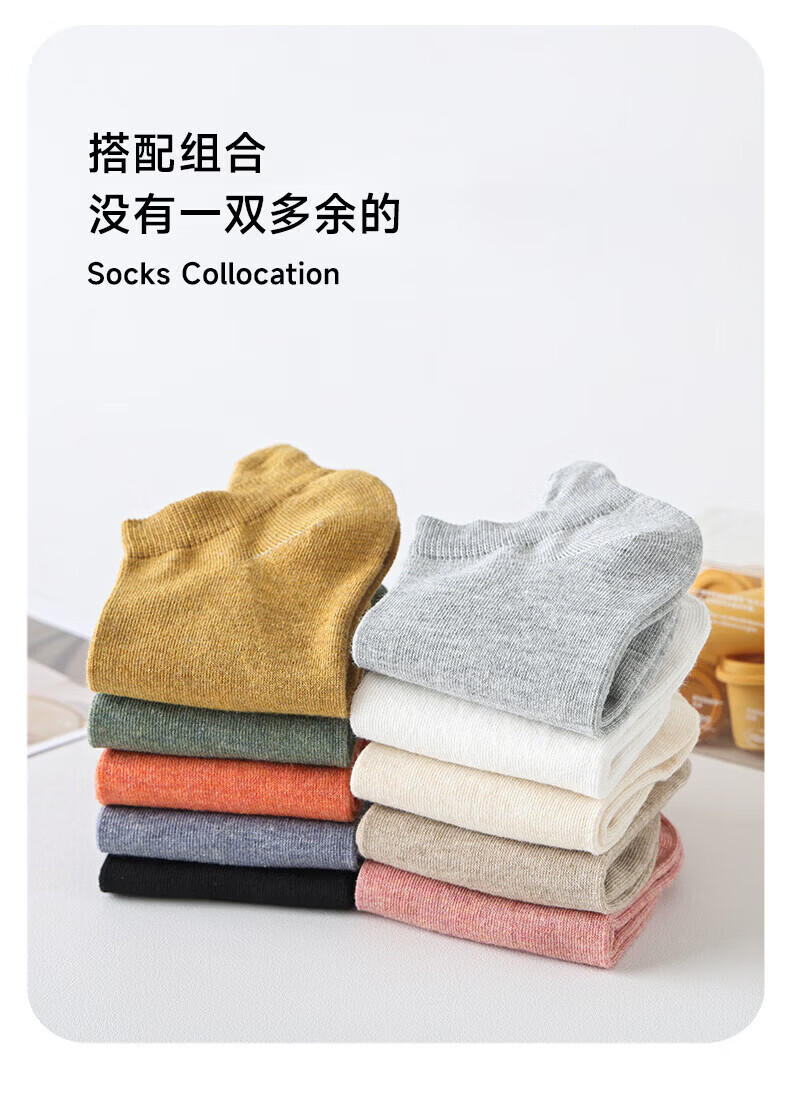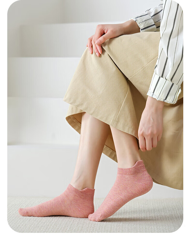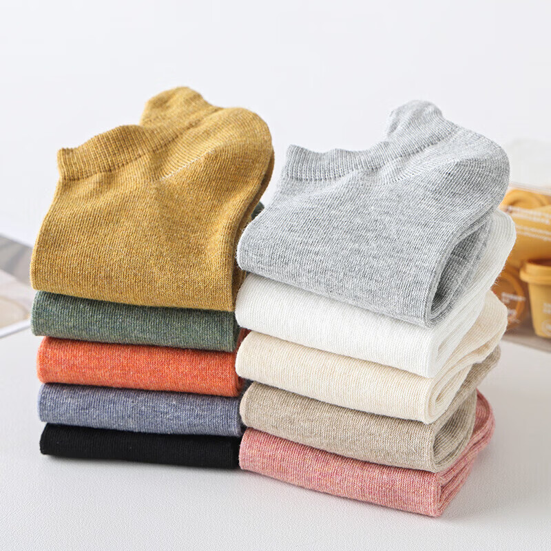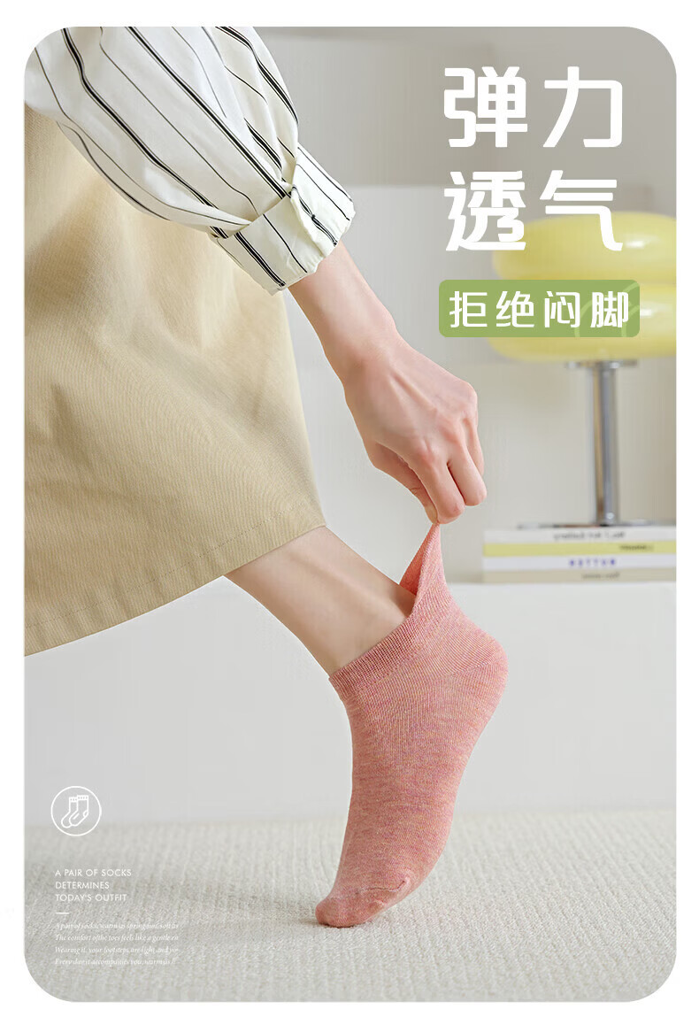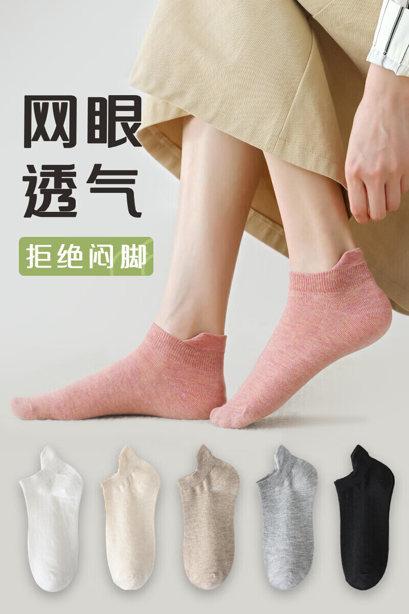 顶瓜瓜春夏季网眼薄款女袜子舒适透气隐形袜时尚百搭抗菌防臭耐磨船袜女 白色2+金黄2+粉色2+米色2+卡其2 10双装 均码