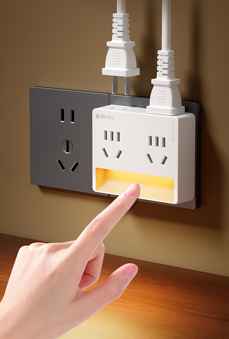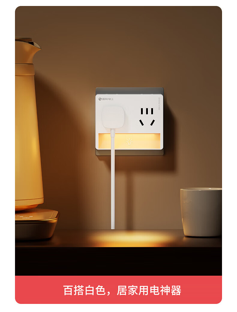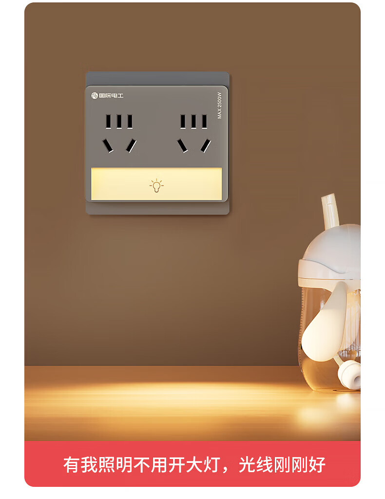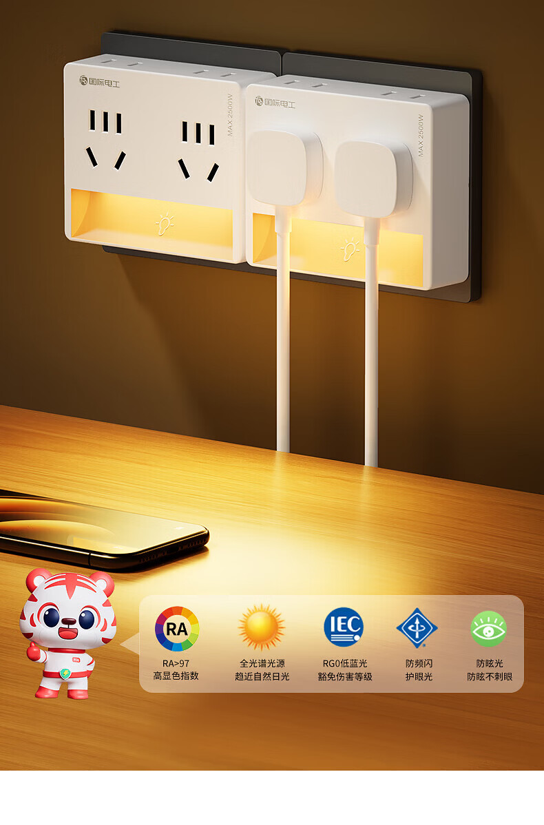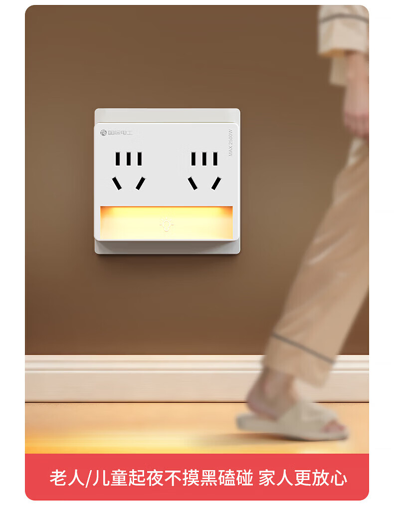 国际电工多功能插座LED小夜灯二合一卧室起夜床头灯婴儿喂奶睡眠灯带插座 白色【触摸款+遥控器】全光谱小夜灯带14孔
