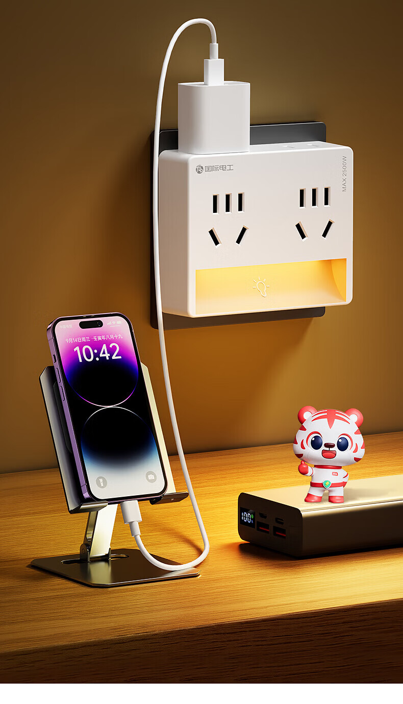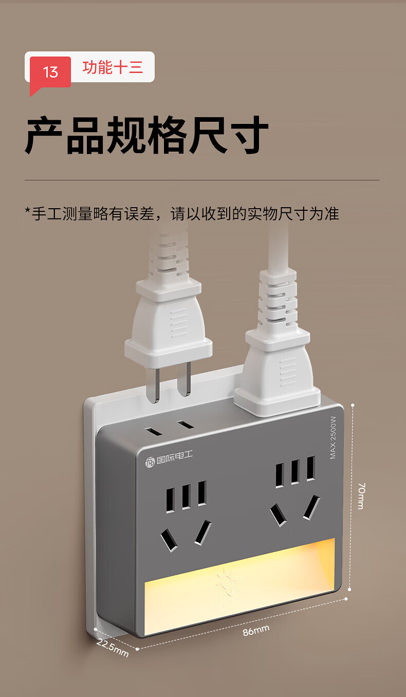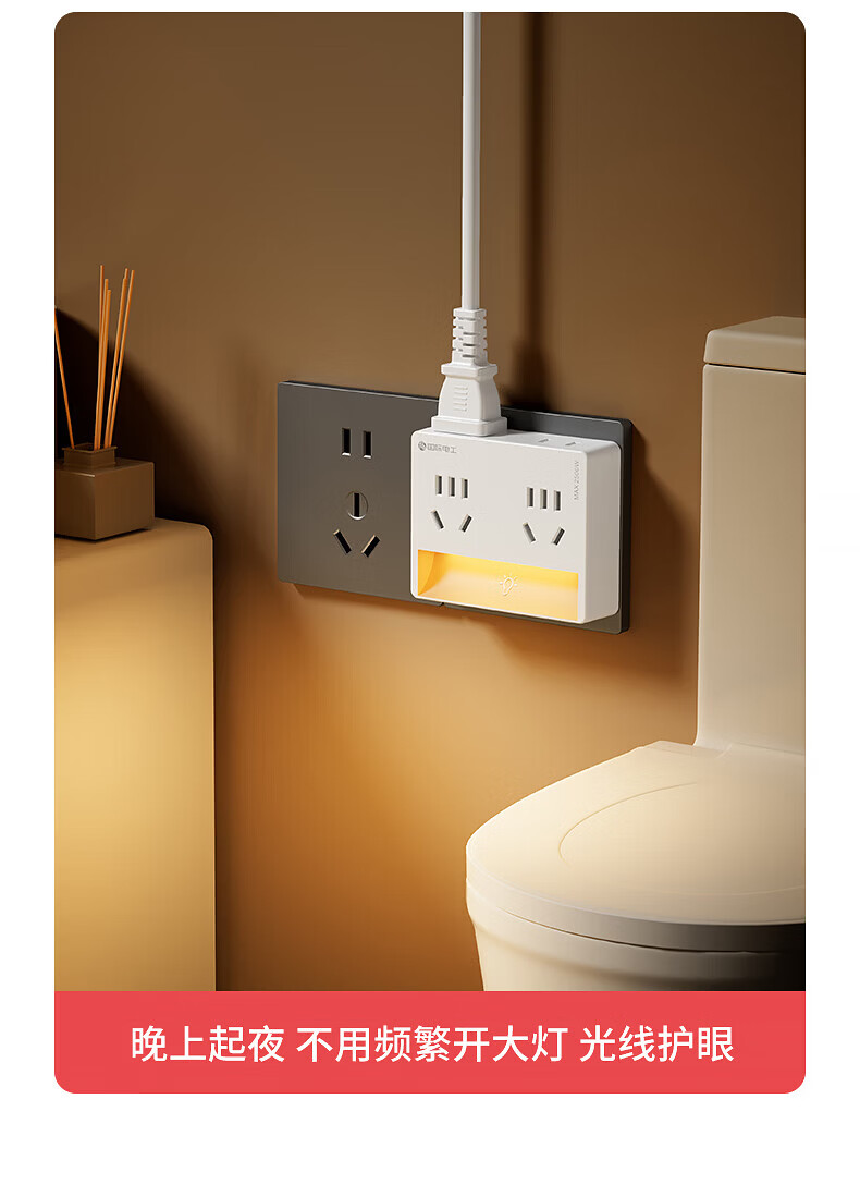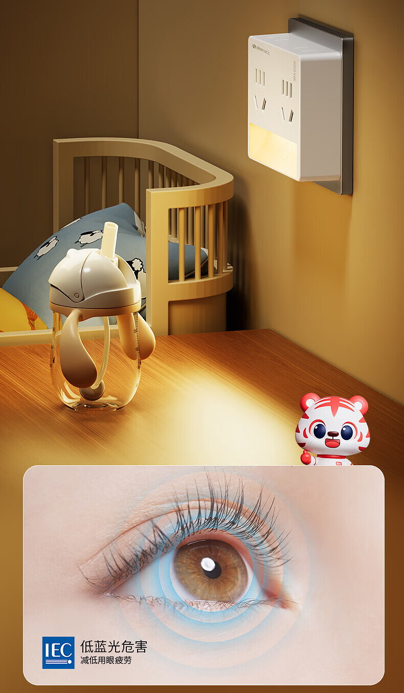 国际电工多功能插座LED小夜灯二合一卧室起夜床头灯婴儿喂奶睡眠灯带插座 白色【触摸款+遥控器】全光谱小夜灯带14孔
