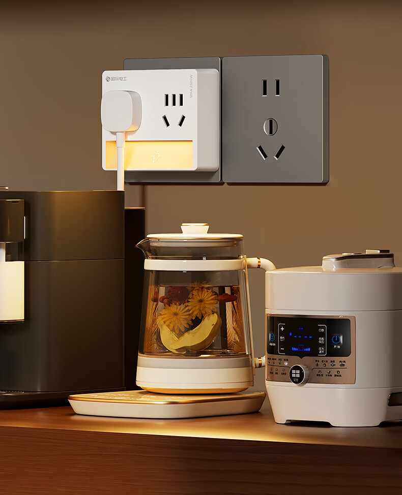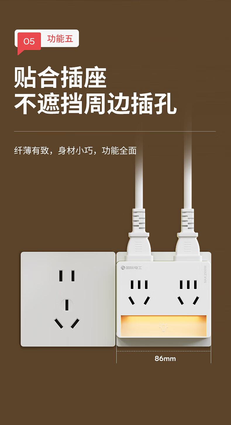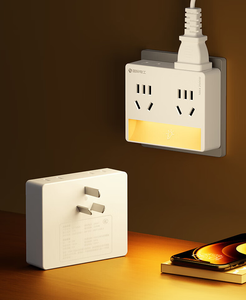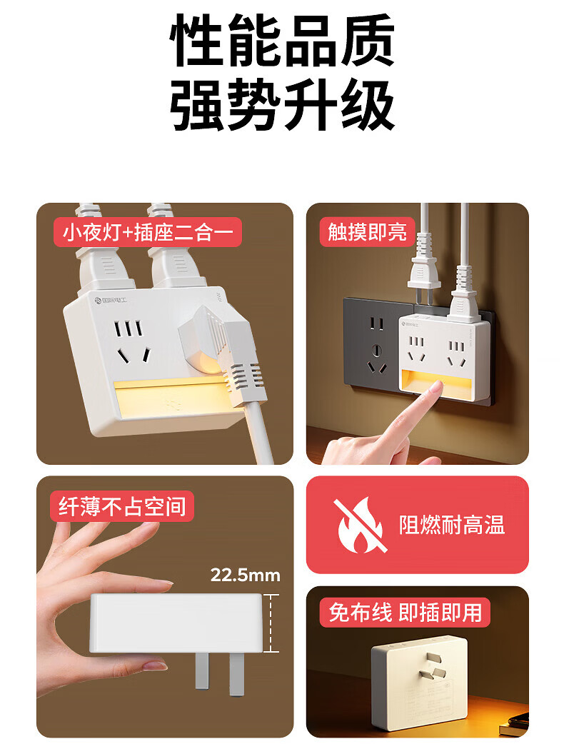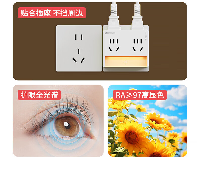 国际电工多功能插座LED小夜灯二合一卧室起夜床头灯婴儿喂奶睡眠灯带插座 白色【触摸款+遥控器】全光谱小夜灯带14孔