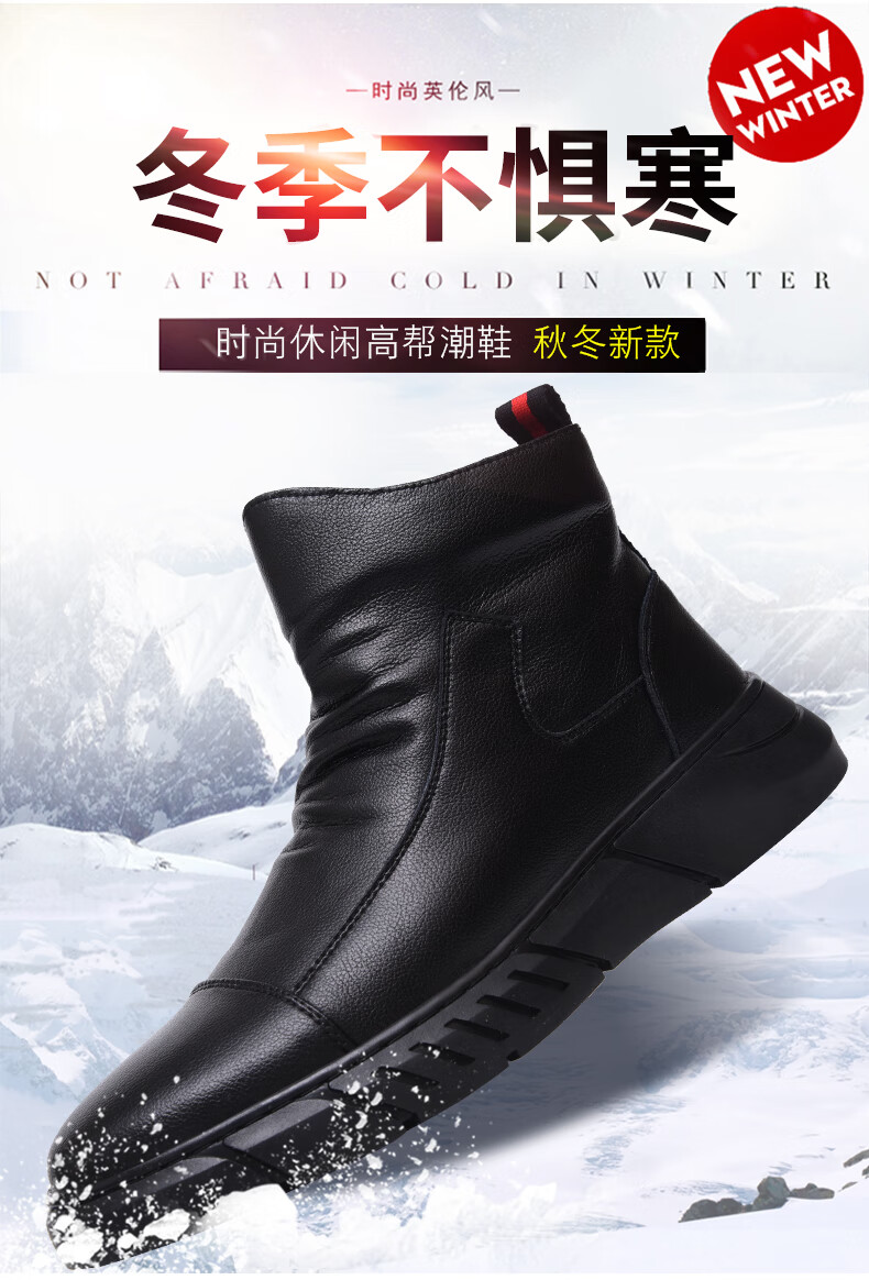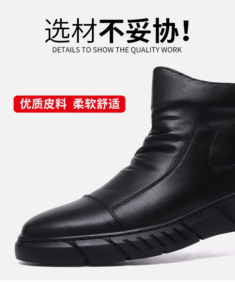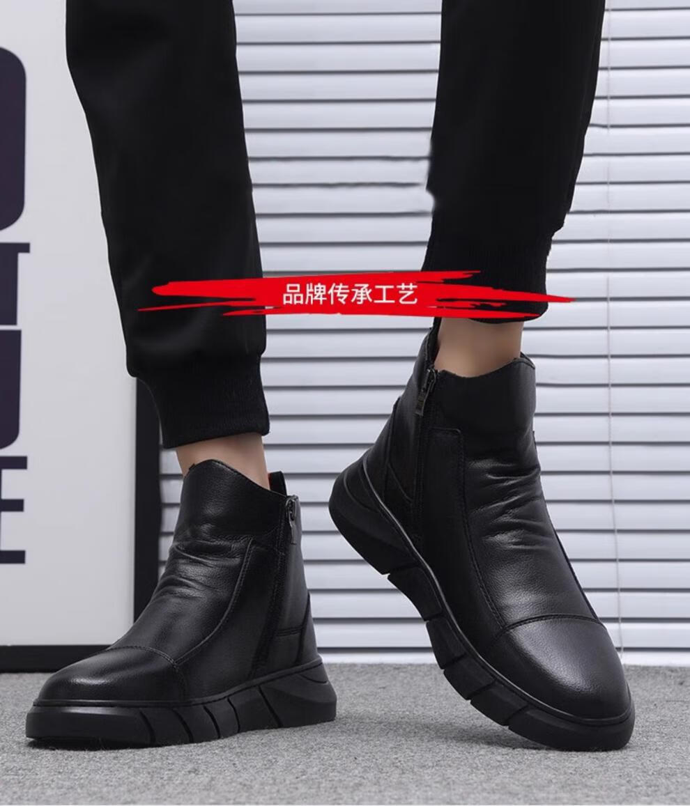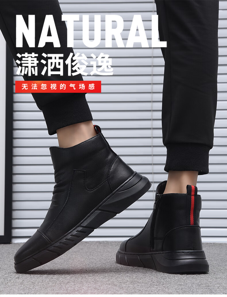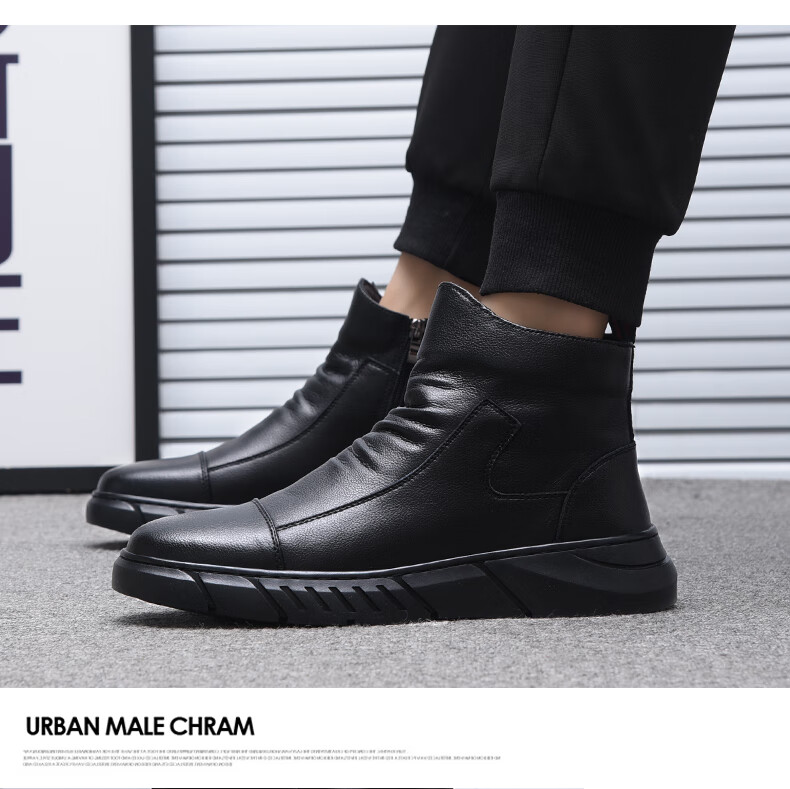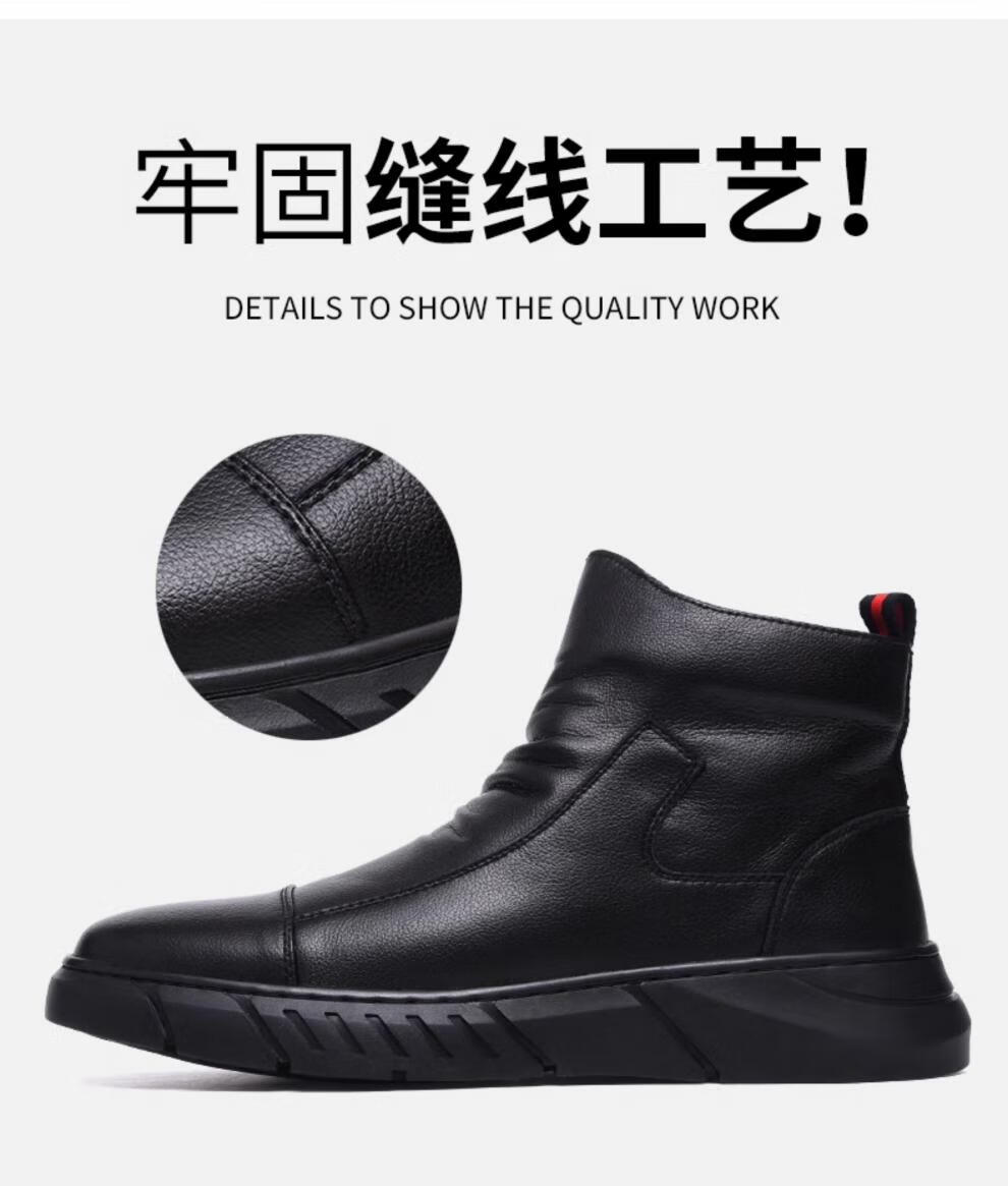 稻草人(MEXICAN)马丁靴真皮高帮男鞋2026新款秋冬季透气软底大码男士中帮休闲皮鞋 黑色 四季 37