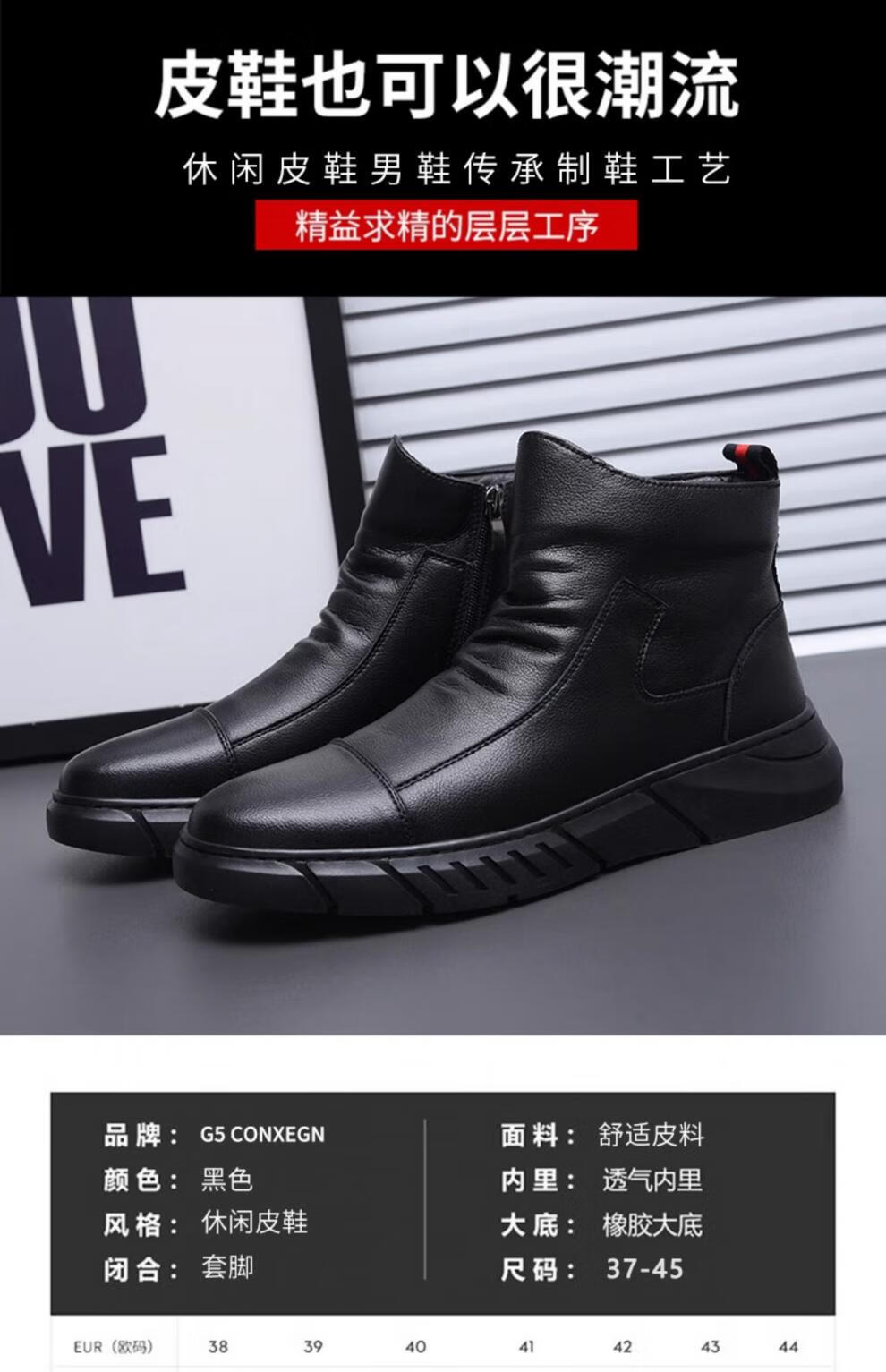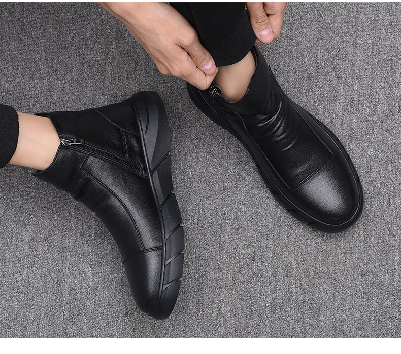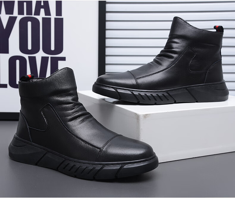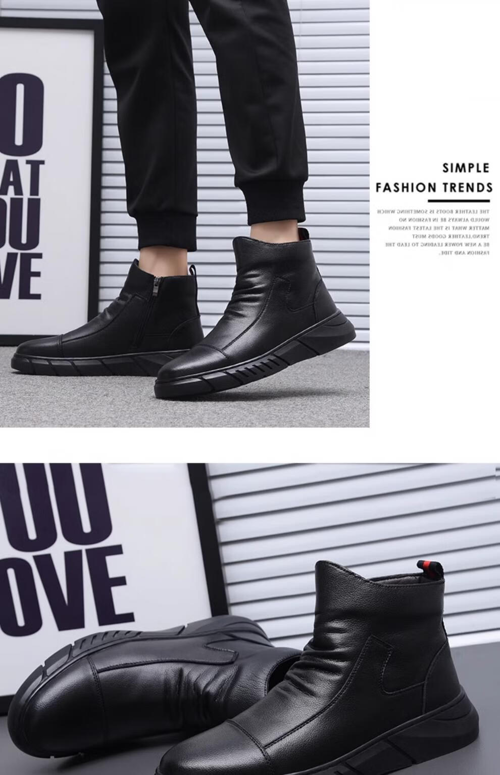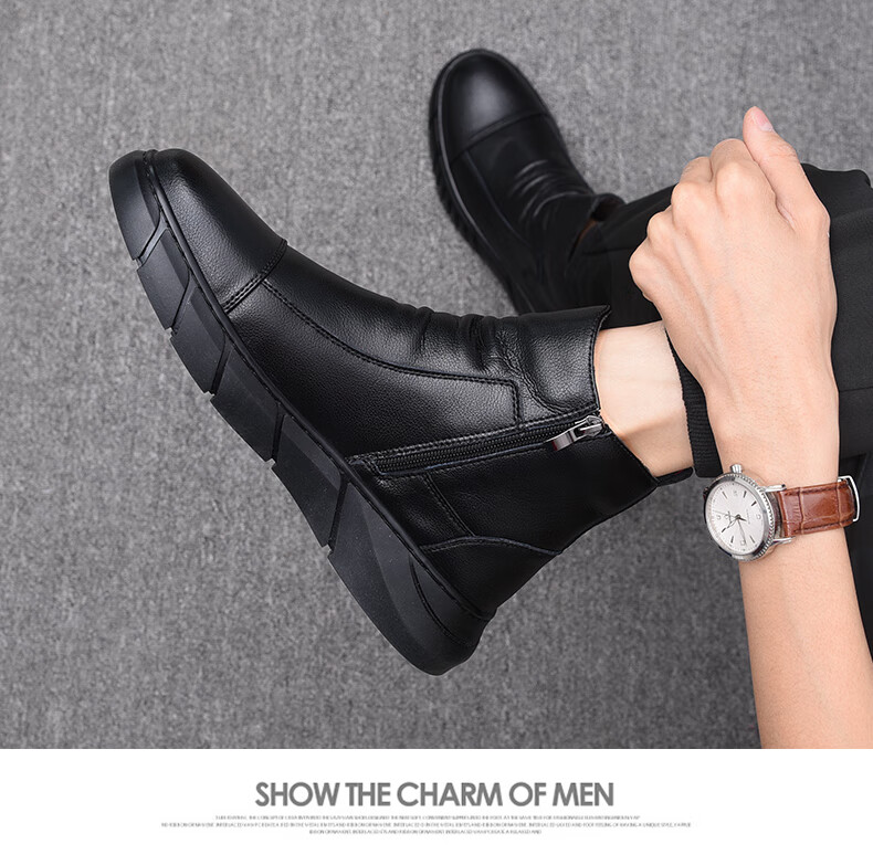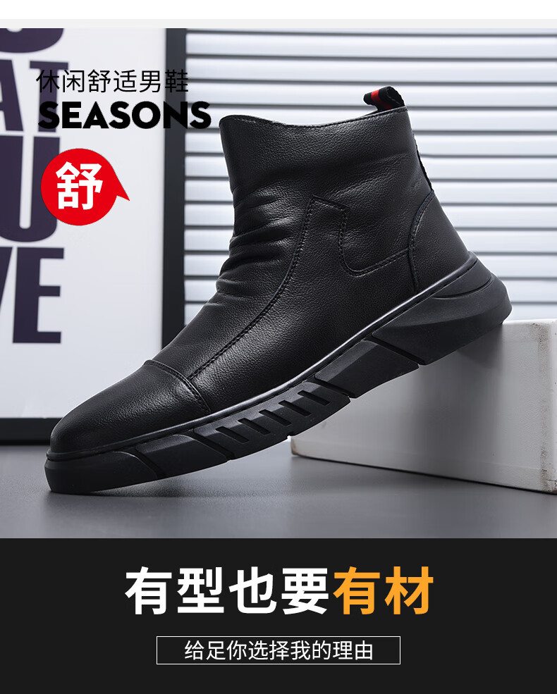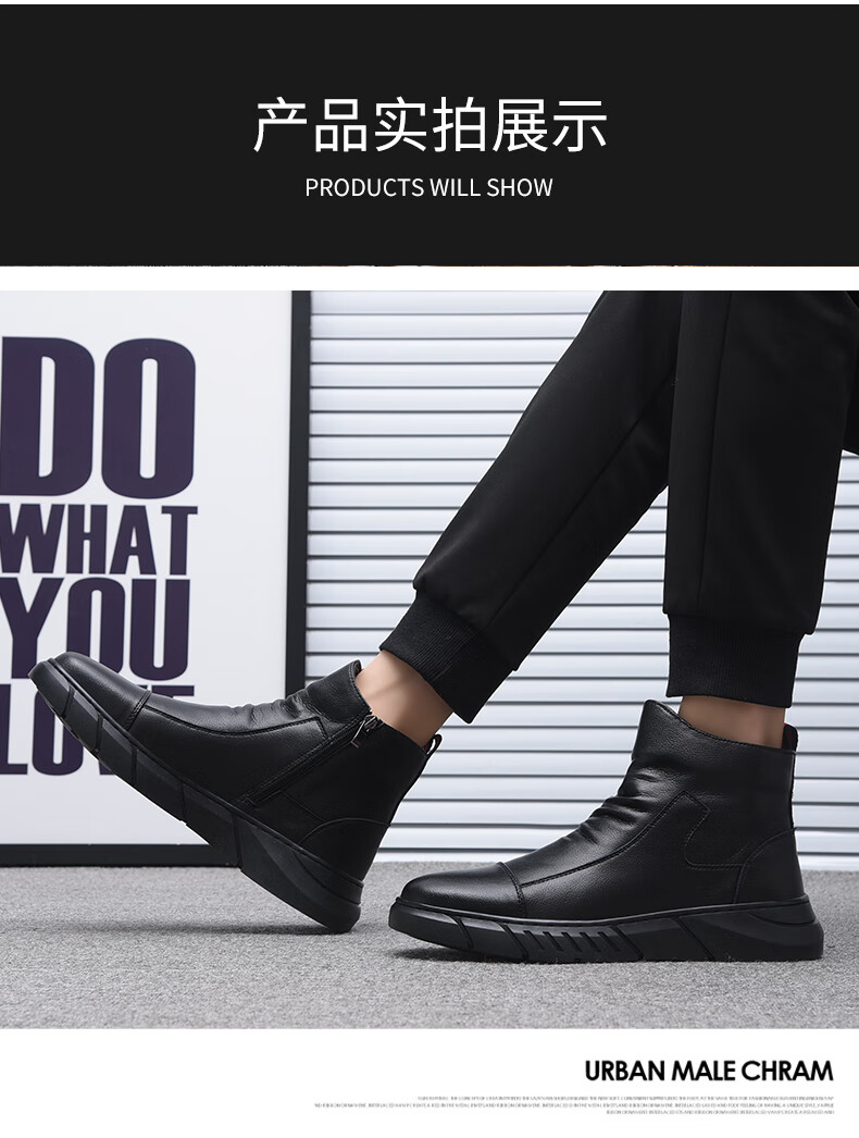 稻草人(MEXICAN)马丁靴真皮高帮男鞋2026新款秋冬季透气软底大码男士中帮休闲皮鞋 黑色 四季 37