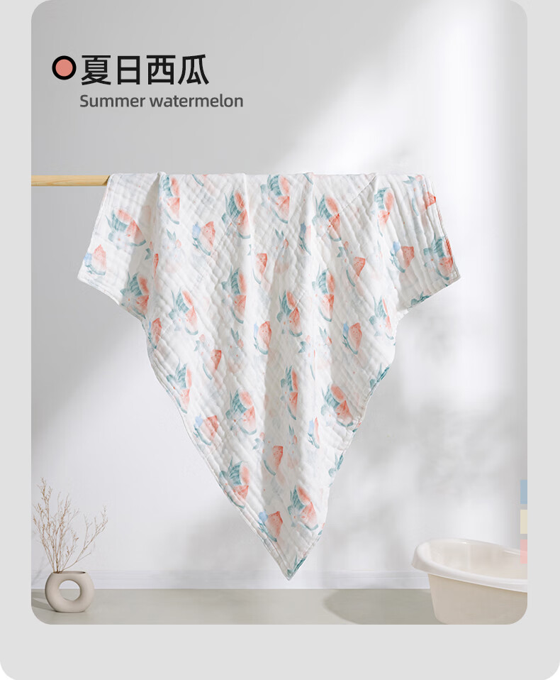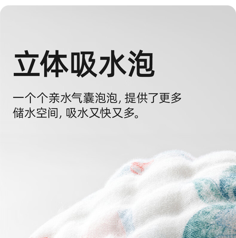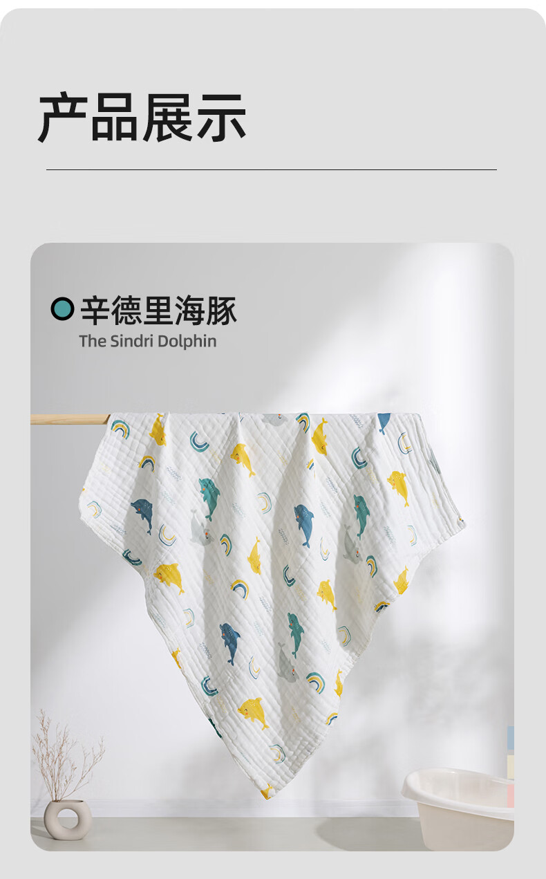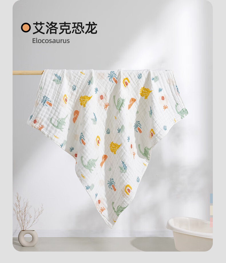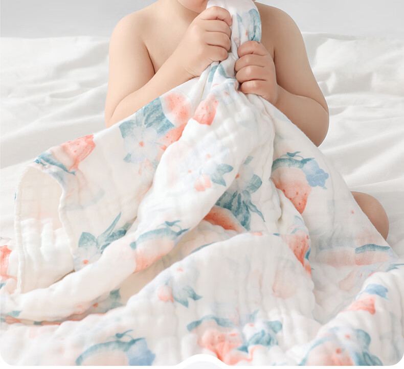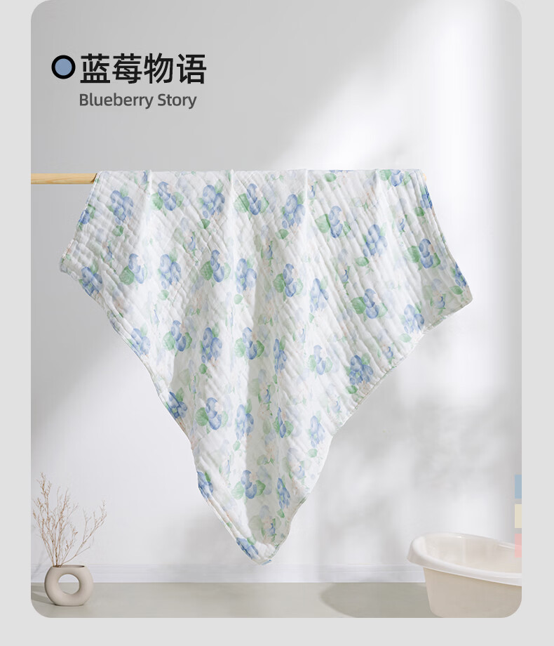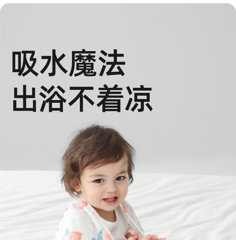 贝肽斯儿童浴巾纱布婴儿a类新生儿洗澡巾纯棉速干不掉毛大尺寸毛巾 6层柔纱【7A抗菌 100%纯棉】威尔斯海洋 95x95cm