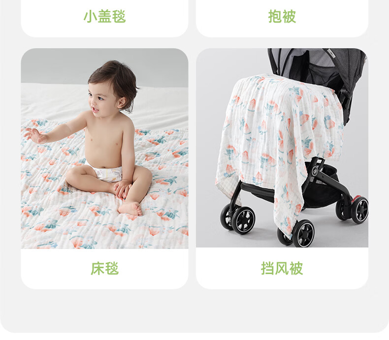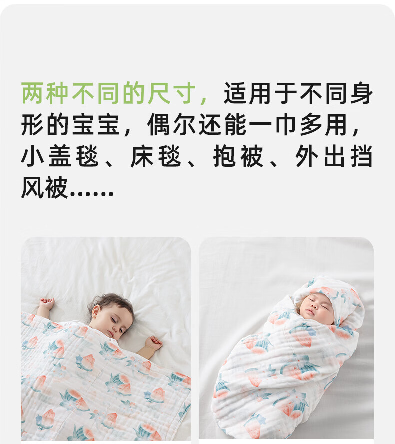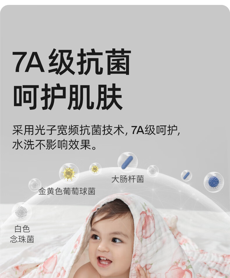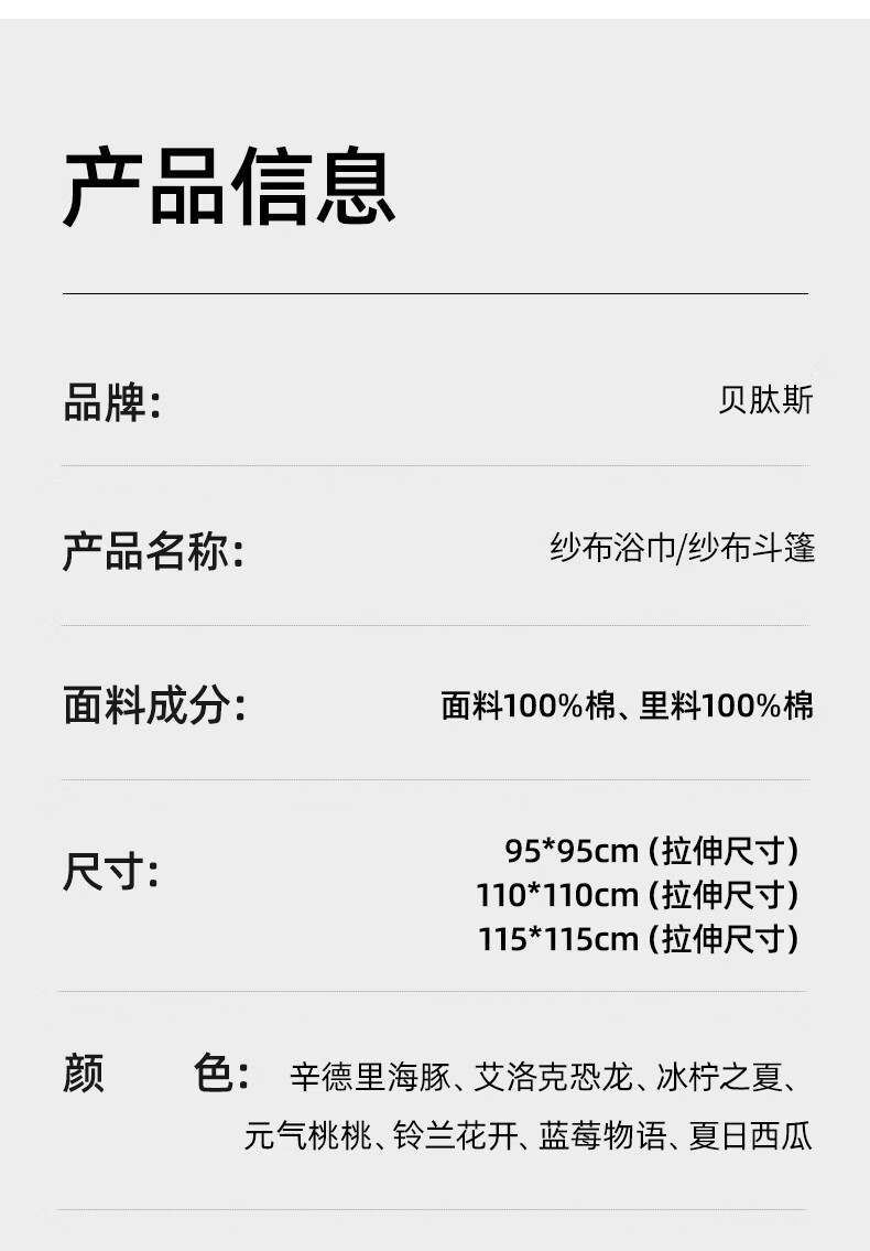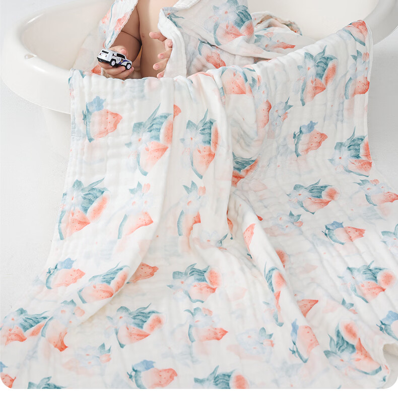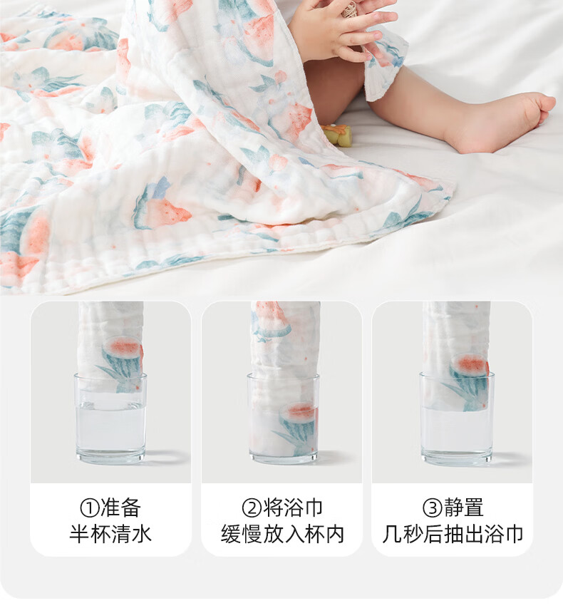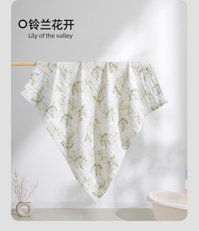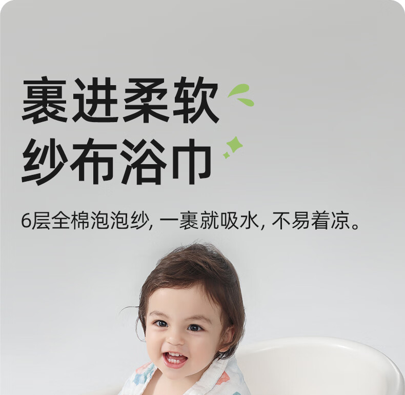 贝肽斯儿童浴巾纱布婴儿a类新生儿洗澡巾纯棉速干不掉毛大尺寸毛巾 6层柔纱【7A抗菌 100%纯棉】威尔斯海洋 95x95cm