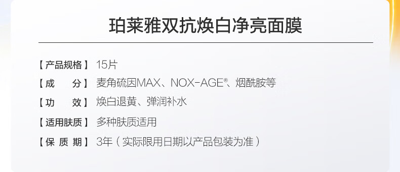 珀莱雅(PROYA)双抗面膜特证版15片保湿补水美白紧致焕亮肌肤新年礼物礼盒送女友